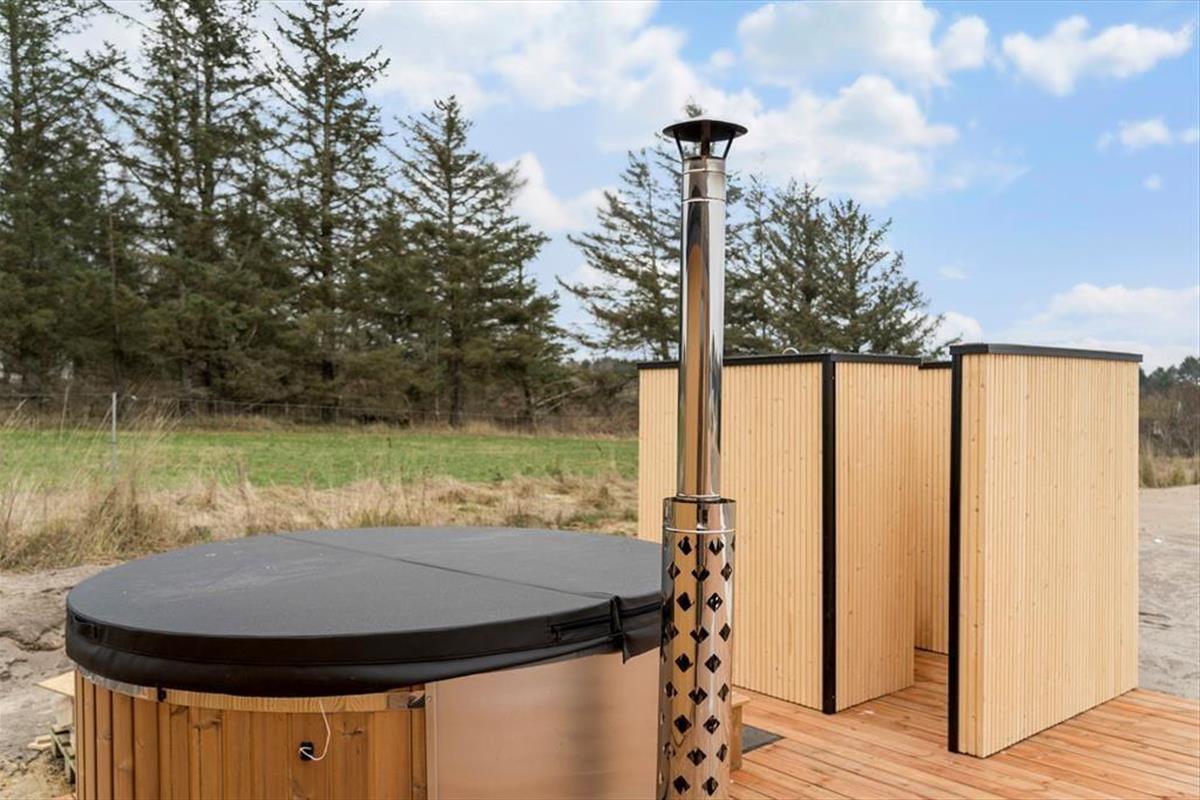 Het huis ligt op een ruim perceel en heeft een gedeeltelijk overdekt terras met meubilair, een hot tub, en een buiten douche met warm water. Het strand bevindt zich op loopafstand van 950 meter, ideaal voor een dagje aan zee. De nabijheid van een supermarkt en restaurants maakt het verblijf extra aangenaam.