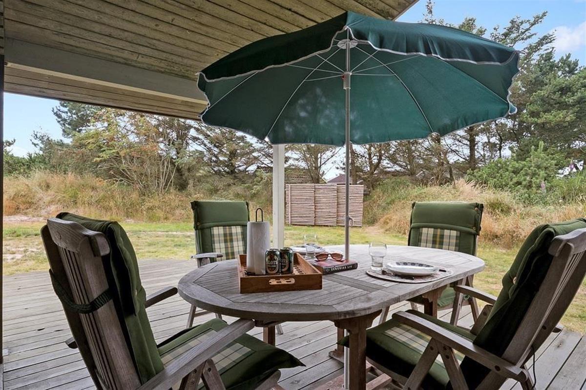 Das Ferienhaus ist von einer großen Terrasse umgeben, auf der ihr den ganzen Tag die Sonne und die frische Meeresluft genießen könnt. Beginnt den Tag mit einer Tasse Kaffee in der Morgensonne, während ihr dem Vogelgesang lauscht und die Ruhe auf euch wirken lasst. Die Terrasse ist perfekt zum Sonnenbaden, für gemütliche Grillabende und entspannte Stunden mit einem guten Buch. Der Blick auf den Strandhafer schafft eine naturschöne Kulisse für euren Aufenthalt, und ihr werdet es lieben, in so einer schönen Umgebung Zeit im Freien zu verbringen. Wenn ihr euch abkühlen möchtet, ist das Meer nur einen kurzen Spaziergang entfernt, wo ihr ein erfrischendes Bad nehmen oder einen Spaziergang am Strand machen und das Rauschen der Wellen genießen könnt.