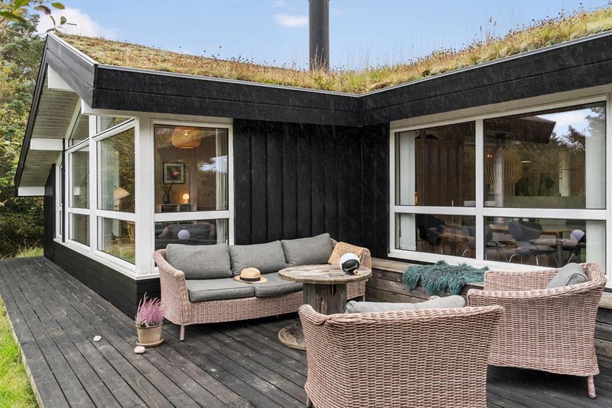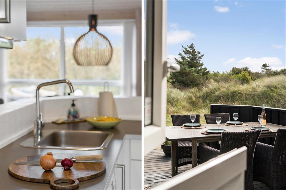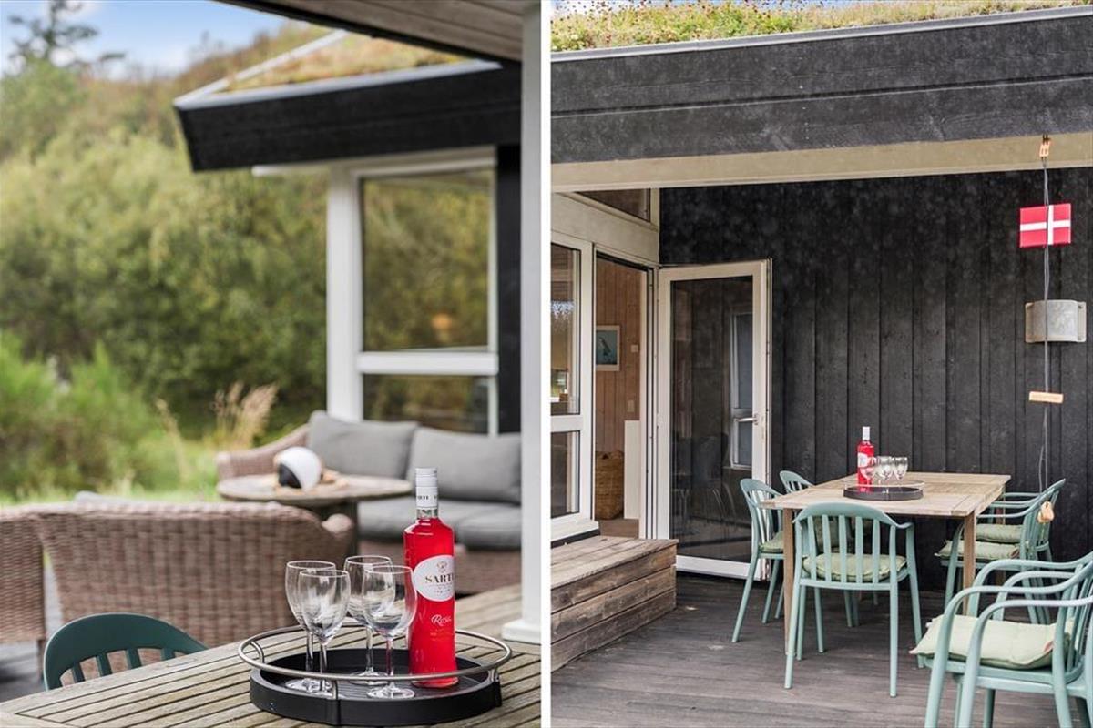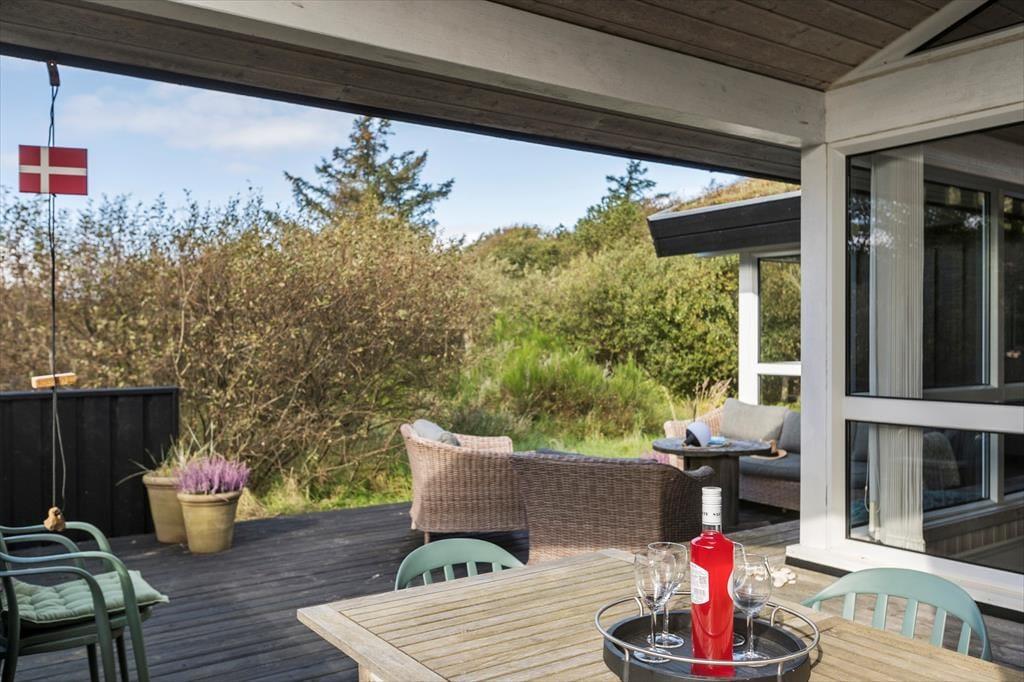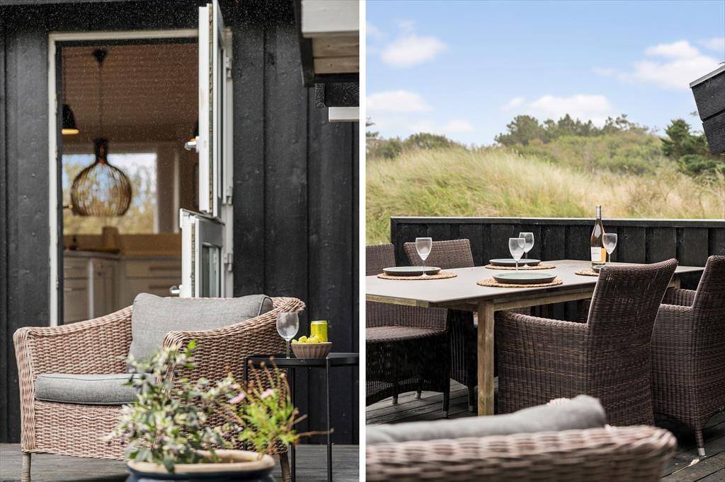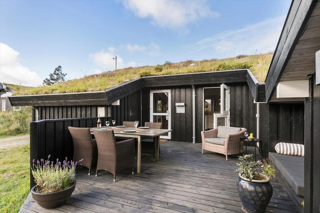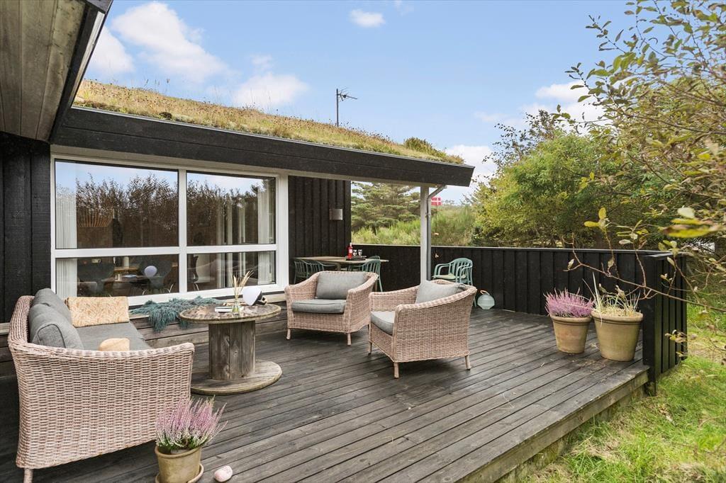 Draußen erwartet dich die schöne Terrasse, die zu sonnigen Tagen voller Entspannung und Gemütlichkeit einlädt. Hier kannst du deinen Morgenkaffee mit Blick auf 'Lille Norge' genießen, das sich fast bis in den Garten erstreckt. Das Terrassenambiente bietet reichlich Gelegenheit, einen sonnigen Platz zu finden, und mit dem kurzen Fußweg zum Strand kannst du ganz einfach zwischen Entspannung am Haus und erfrischenden Badegängen in der Nordsee wechseln. Nach einem langen Tag am Strand kannst du den Grill anzünden und ein leckeres Abendessen unter freiem Himmel genießen, während der Sonnenuntergang den Himmel in warme Farben taucht.