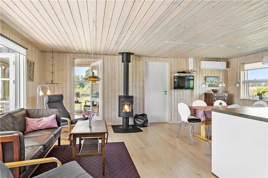 Im Wohnzimmer sorgt ein großer, stilvoller Kaminofen für eine behagliche Atmosphäre. Mit knisterndem Feuer, einem guten Buch und einer heißen Tasse Kaffee kann man es sich hier so richtig gemütlich machen. Das Haus ist mit modernen Annehmlichkeiten ausgestattet, darunter eine Spülmaschine, eine Waschmaschine und ein Wäschetrockner. Gäste, die einen Laptop oder ein Tablet mitbringen, können sich mit dem WLAN verbinden, um ihre Lieblingsserie zu genießen oder die neuesten Nachrichten zu lesen. Sowohl Kinder als auch Erwachsene werden in dieser wunderbaren Umgebung unvergessliche Tage erleben.
