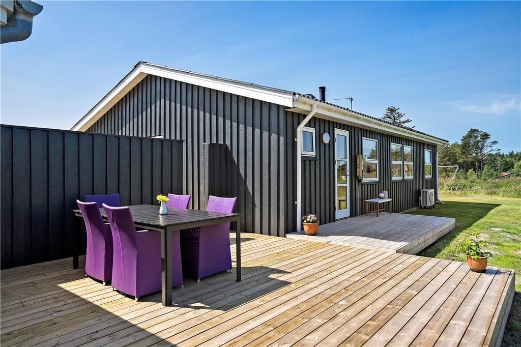 Dieses gut durchdachte Sommerhaus bietet den perfekten Rahmen für einen erholsamen und ruhigen Urlaub in gemütlicher Umgebung. Das Haus ist gepflegt und mit hochwertigen Möbeln und Einrichtungsgegenständen ausgestattet. Es verfügt über eine Küche, ein Wohnzimmer, ein Badezimmer und drei Schlafzimmer mit bequemen Betten.