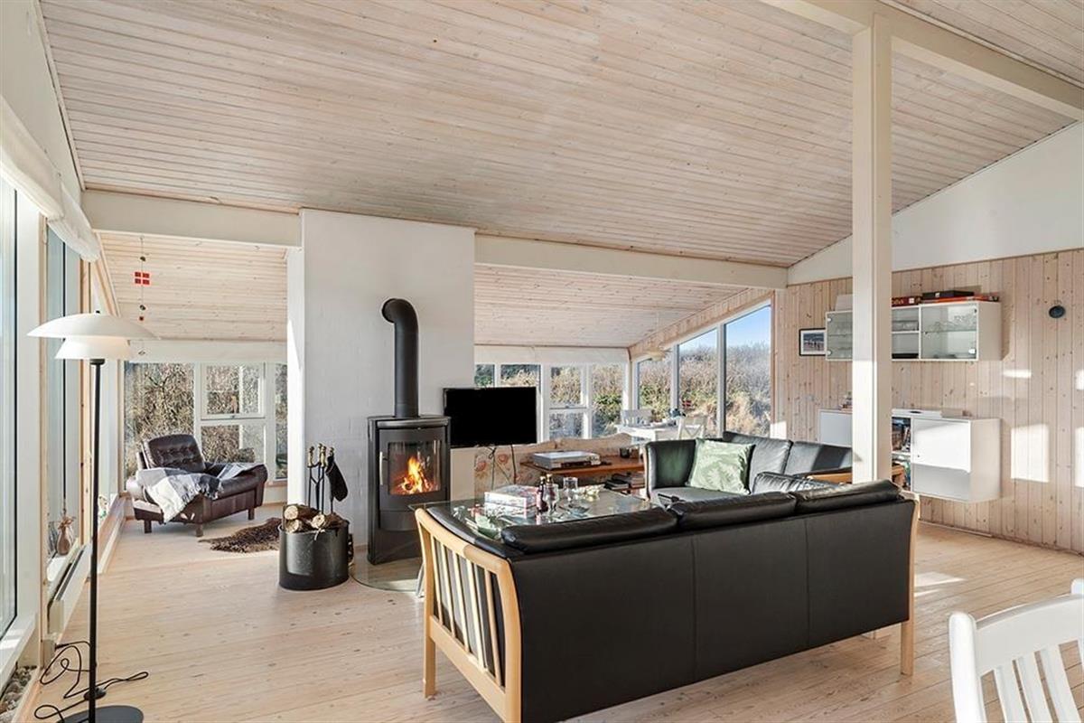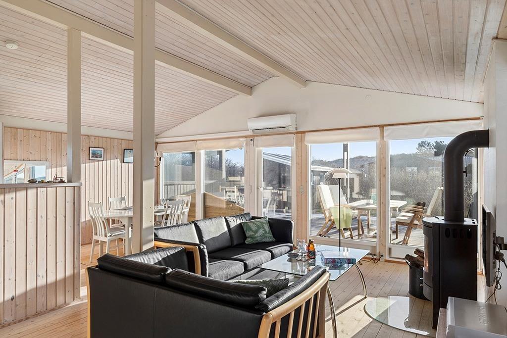 Sobald Sie dieses einladende Ferienhaus betreten, werden Sie sofort die heimelige Atmosphäre spüren, die durch den offenen und hellen Wohnbereich geschaffen wurde. Die großen Fenster bieten einen spektakulären Blick auf die umliegende Landschaft und bringen die Natur direkt ins Wohnzimmer. Hier können Sie sich entspannen und das Leben genießen, während Sie den weiten Naturblick bewundern. Der offene Küchen- und Wohnbereich lädt zu gemeinsamen Momenten ein, sei es beim Mittagessen, bei einem Spiel oder bei entspannenden Stunden vor dem Kamin. Das Licht und die Natur verleihen dem Raum das Gefühl, näher an der Natur zu sein, während Sie gleichzeitig alle modernen Annehmlichkeiten zur Hand haben.