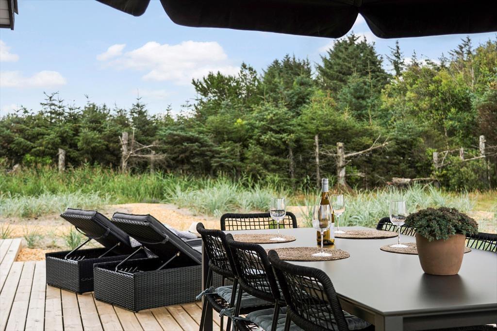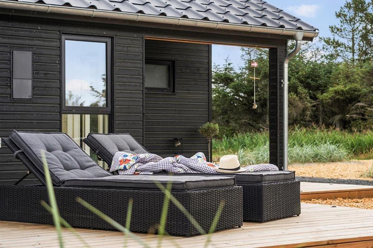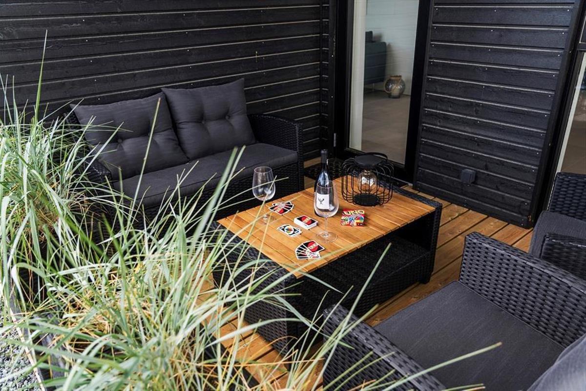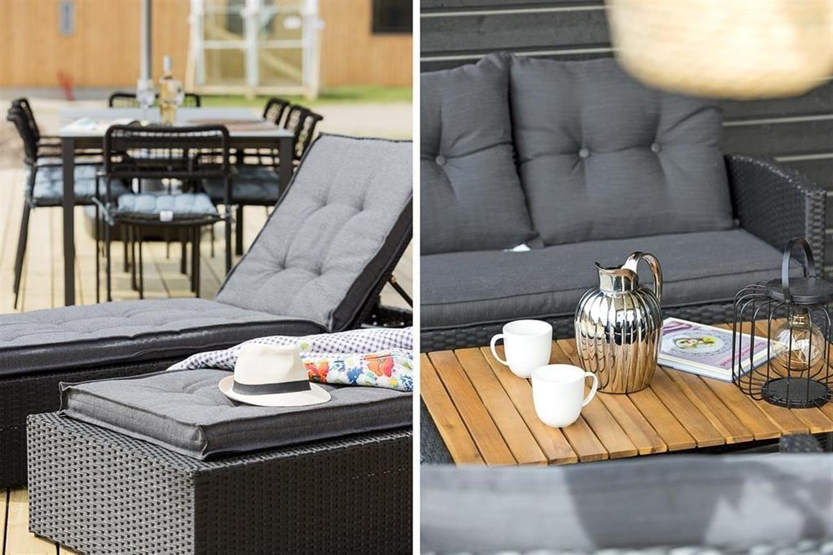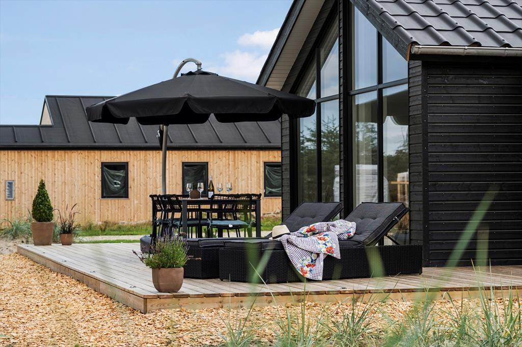 Draußen erwartet dich eine große und schöne Terrasse, die zum Entspannen und gemütlichen Stunden in der Sonne einlädt. Hier kannst du deinen Morgenkaffee in bequemen Gartenmöbeln genießen, ein Nickerchen auf der Sonnenliege machen oder mit der Familie ein leckeres Grillabendessen unter freiem Himmel veranstalten. Die Terrasse ist mit Fokus auf Komfort und Ästhetik gestaltet, und die umliegenden Grünflächen schaffen eine friedliche und private Oase, in der du dich erholen und deinen Urlaub in vollen Zügen genießen kannst.