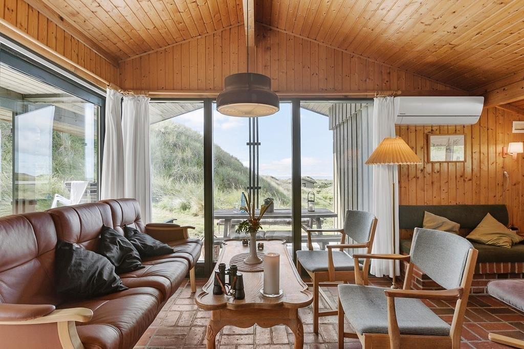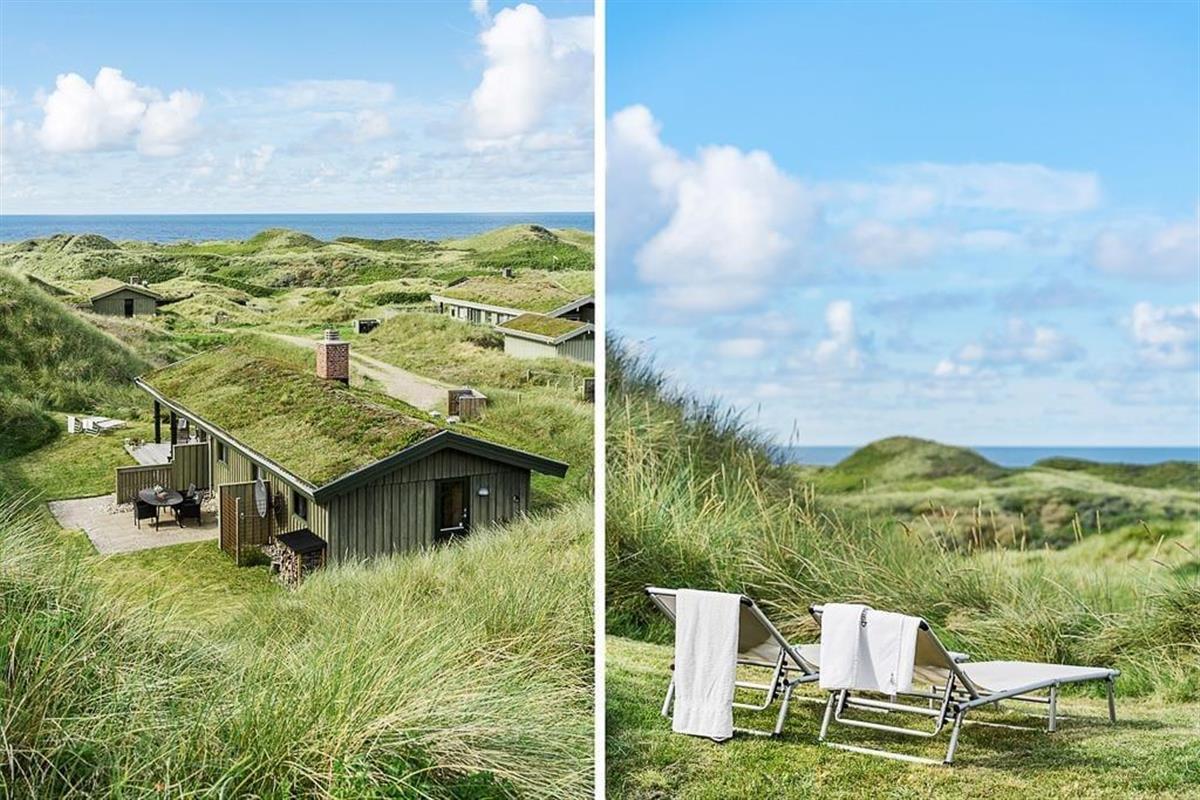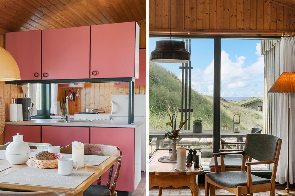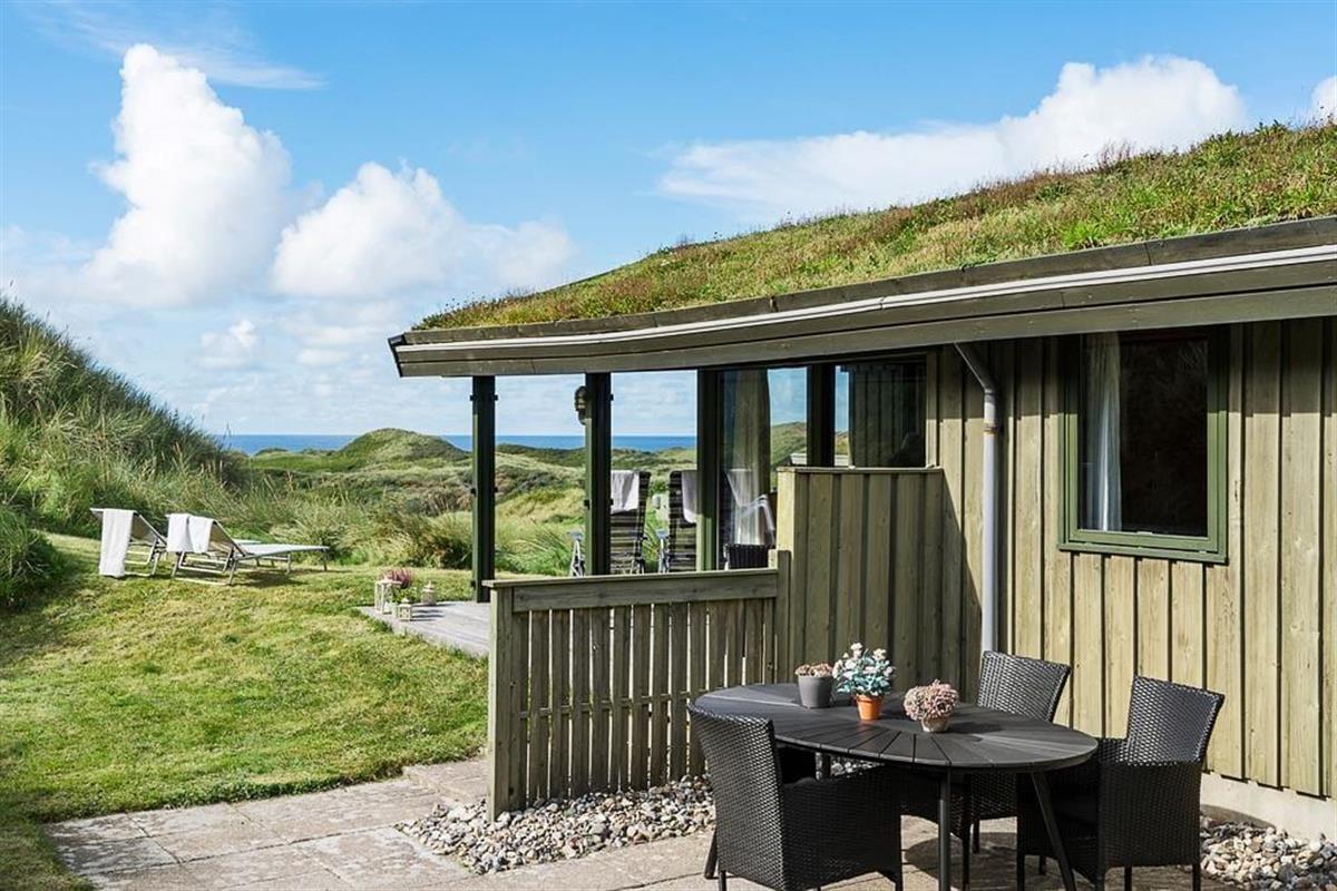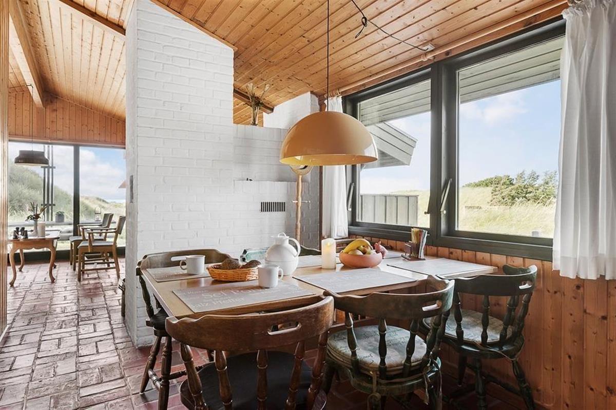 Bei diesem, aus dem Jahr 1975 stammenden Ferienhaus, wurde der für damalige Zeit typische Stil in netter Art und Weise bewahrt. Die Holzwände, der rote Ziegelsteinboden, das auf Mauersteinen befindliche Sofa, die klassischen Fliesen im Bad und die teilweise noch original aus den Siebziger Jahren stammenden Möbel, dürften passionierten Dänemarkurlaubern noch bekannt vorkommen. Alles im Haus ist gepflegt und voll funktionstüchtig. Durch die sechs Schlafplätze eignet sich dieses Haus auch für eine größere Familie. Dieses Ferienhaus verfügt über drei Schlafräume, ein Badezimmer mit Dusche, eine Küche und einen Wohnraum mit einer ganz fantastischen Aussicht über die Dünen und die nur 300 Meter entfernte Nordsee. An kühleren Tagen können Sie den Kaminofen anheizen und den Tag ganz gemütlich mit einem guten Buch, einem Kartenspiel und einem warmen Kakao genießen. Für alle Ferienhäuser in diesem Gebiet gibt es strikte Auflagen. So müssen die Häuser beispielsweise mit einem Grasdach versehen sein, damit sie sich nahtlos in die traumhaft schöne Natur einfügen. Sollten Sie im Urlaub Wert auf Luxus und eine moderne Ausstattung legen, so ist dieses Ferienhaus nicht für Sie geeignet. Wenn allerdings Ruhe, Erholung, traumhafte Natur und die typische gemütliche Urlaubsstimmung für Sie die Hauptkriterien sind, so ist dieses Objekt die perfekte Wahl.