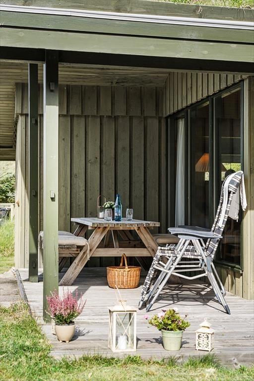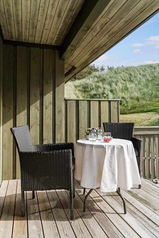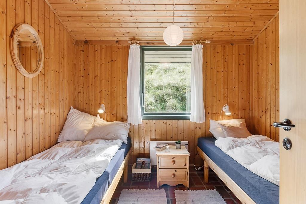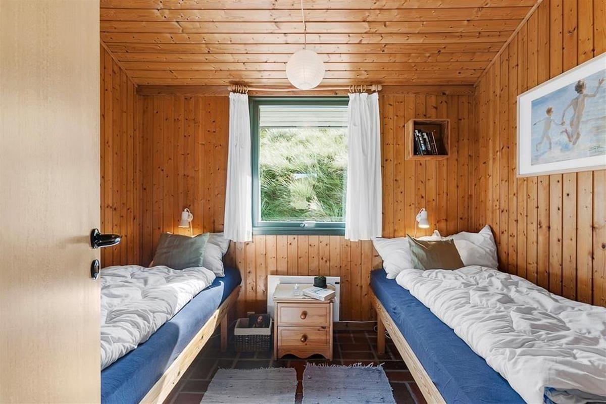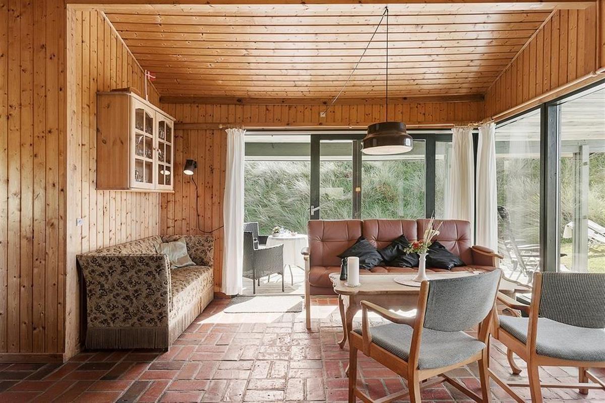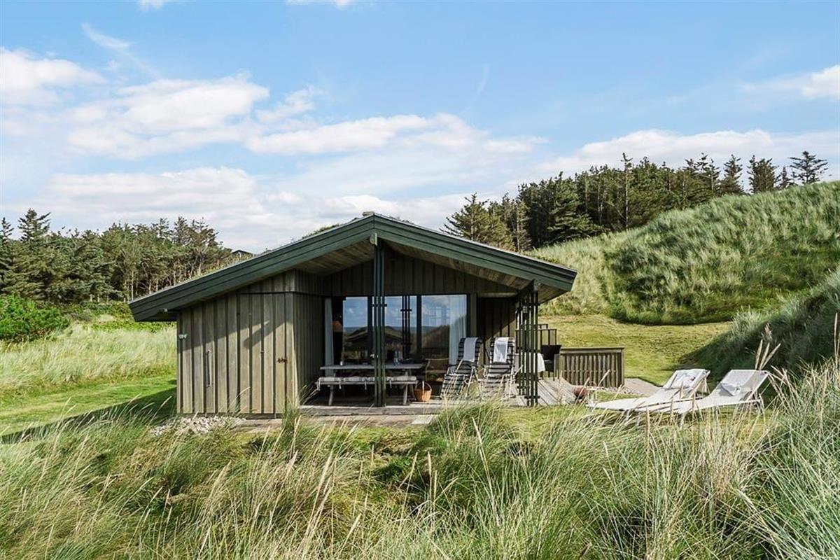 Bei diesem, aus dem Jahr 1975 stammenden Ferienhaus, wurde der für damalige Zeit typische Stil in netter Art und Weise bewahrt. Die Holzwände, der rote Ziegelsteinboden, das auf Mauersteinen befindliche Sofa, die klassischen Fliesen im Bad und die teilweise noch original aus den Siebziger Jahren stammenden Möbel, dürften passionierten Dänemarkurlaubern noch bekannt vorkommen. Alles im Haus ist gepflegt und voll funktionstüchtig. Durch die sechs Schlafplätze eignet sich dieses Haus auch für eine größere Familie. Dieses Ferienhaus verfügt über drei Schlafräume, ein Badezimmer mit Dusche, eine Küche und einen Wohnraum mit einer ganz fantastischen Aussicht über die Dünen und die nur 300 Meter entfernte Nordsee. An kühleren Tagen können Sie den Kaminofen anheizen und den Tag ganz gemütlich mit einem guten Buch, einem Kartenspiel und einem warmen Kakao genießen. Für alle Ferienhäuser in diesem Gebiet gibt es strikte Auflagen. So müssen die Häuser beispielsweise mit einem Grasdach versehen sein, damit sie sich nahtlos in die traumhaft schöne Natur einfügen. Sollten Sie im Urlaub Wert auf Luxus und eine moderne Ausstattung legen, so ist dieses Ferienhaus nicht für Sie geeignet. Wenn allerdings Ruhe, Erholung, traumhafte Natur und die typische gemütliche Urlaubsstimmung für Sie die Hauptkriterien sind, so ist dieses Objekt die perfekte Wahl.
