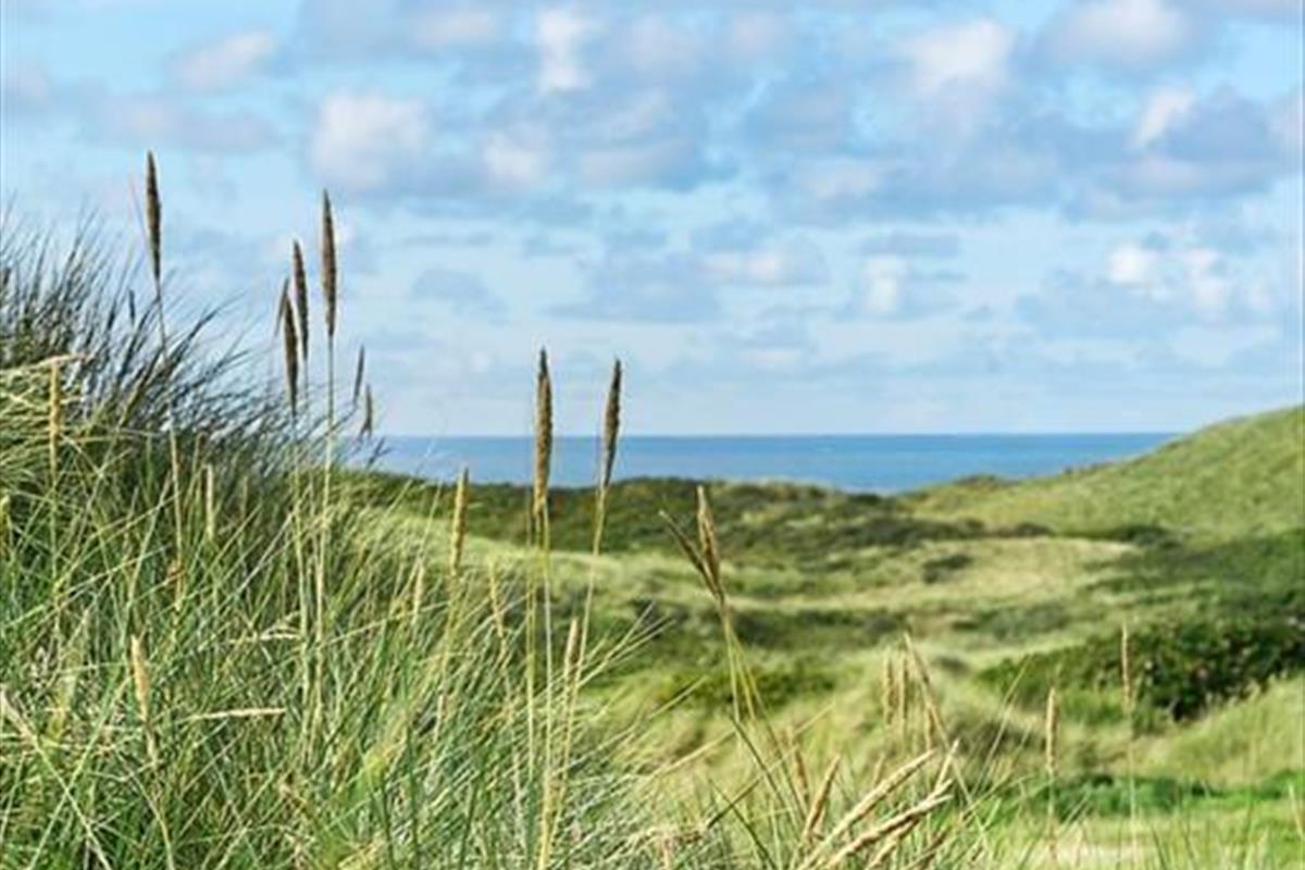 Das gemütliche Ferienhaus liegt auf einem großen Naturgrundstück mit Dünen, Strandhafer und viel Platz um sich zu Tummeln. Der Höhenunterschied auf dem Grundstück beträgt an höchster Stelle ganze fünfzehn Meter. Versäumen Sie es nicht, die höchste Düne zu erklimmen. Der Lohn ist eine traumhafte Aussicht über die Dächer der Ferienhäuser, die unberührte Natur und das schier endlose Meer. Auf den Ferienhausgrundstücken sind unter anderem keine Außenbeleuchtung, keine Bepflanzung und keine Hecken zulässig. Von Ihrer schönen Terrasse aus, können Sie also einen völlig unverfälschten Blick über die Umgebung und die legendären Sonnenuntergänge genießen.