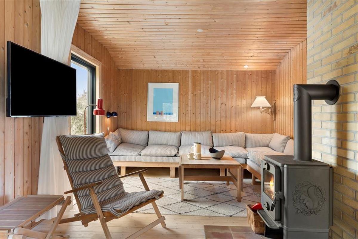 Wenn ihr das Ferienhaus betretet, werdet ihr euch sofort wie zu Hause fühlen. Die hellen und offenen Räume sind mit Fokus auf Gemütlichkeit und Komfort eingerichtet, sodass ihr nach einem langen Tag in der Natur entspannen könnt. Das Wohnzimmer ist ein fantastischer Ort, um die Familie zu versammeln, wo ihr die Wärme des Kaminofens genießen könnt, während ihr Spiele spielt, Filme schaut oder einfach über die Erlebnisse des Tages sprecht. Die neu renovierten Einrichtungen, einschließlich einer modernen Küche, bieten euch die Möglichkeit, köstliche Mahlzeiten zuzubereiten, die ihr in guter Gesellschaft genießen könnt. Das Haus hat eine wunderbare Einrichtung, die sowohl gemeinschaftliche als auch private Momente einlädt, sodass ihr euren Urlaub auf eure ganz eigene Weise genießen könnt.