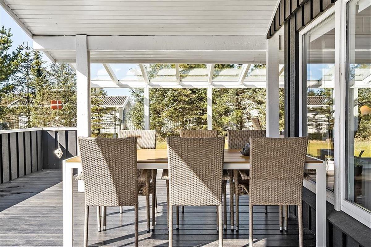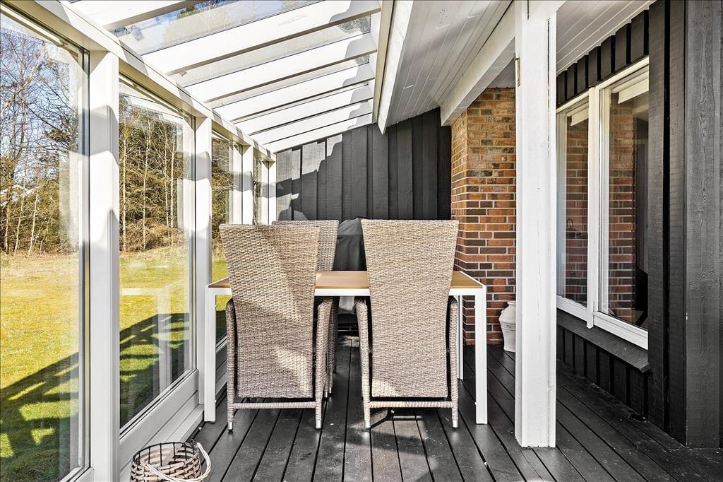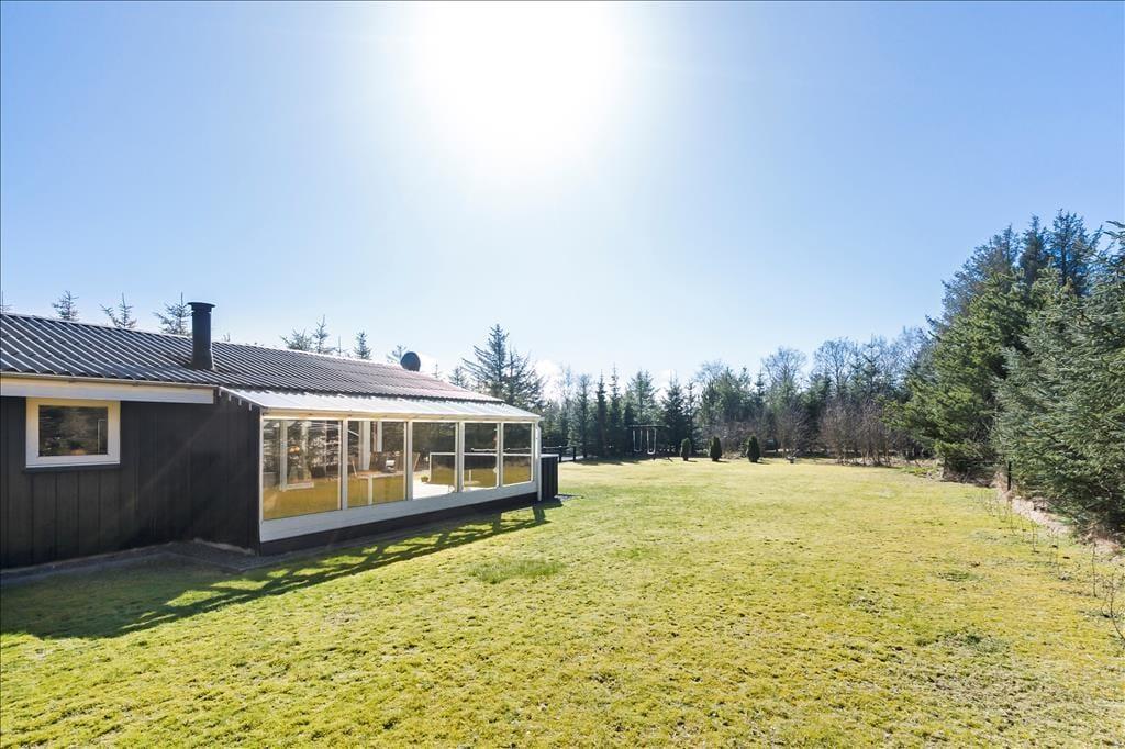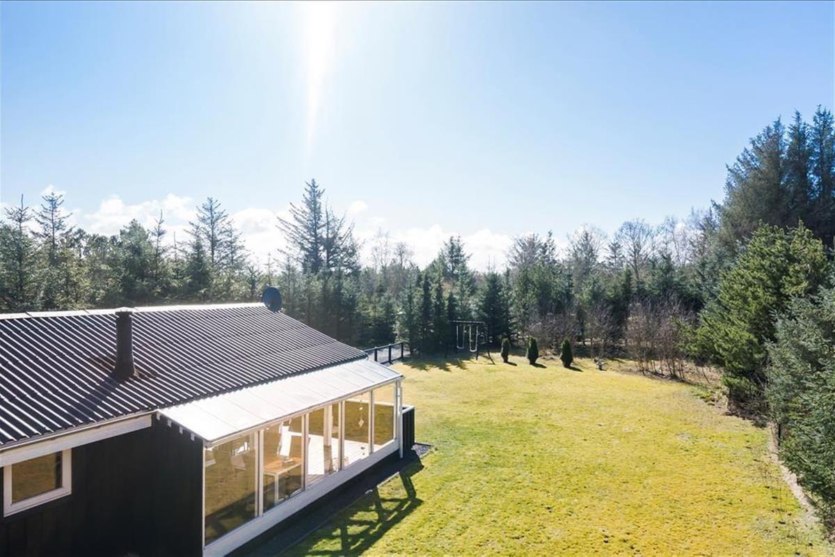 Dieses Ferienhaus liegt auf einem großen Naturgrundstück. Aufgrund des Bewuchses mit hohen, dichten Bäumen an den Grundstücksrändern, ist es wunderbar geschützt. Die große Grasfläche lädt zum Spielen ein - mit oder ohne Ball. Von der Küche aus gelangen Sie auf eine gemütliche Terrasse, die in der Morgensonne liegt und somit optimal für ein Frühstück im Freien geeignet ist. Vom Wohnzimmer aus haben Sie Zugang zur großen, überdachten Terrasse, die Ihnen viel Platz zum Grillen, Essen und zum gemütlichen Beisammensein am Abend bietet. Auf dem geschlossenen Grundstück können Sie beruhigt Ihre Kinder alleine nach draußen lassen, ohne Gefahr zu laufen, dass diese auf der Suche nach Abenteuern weglaufen könnten.