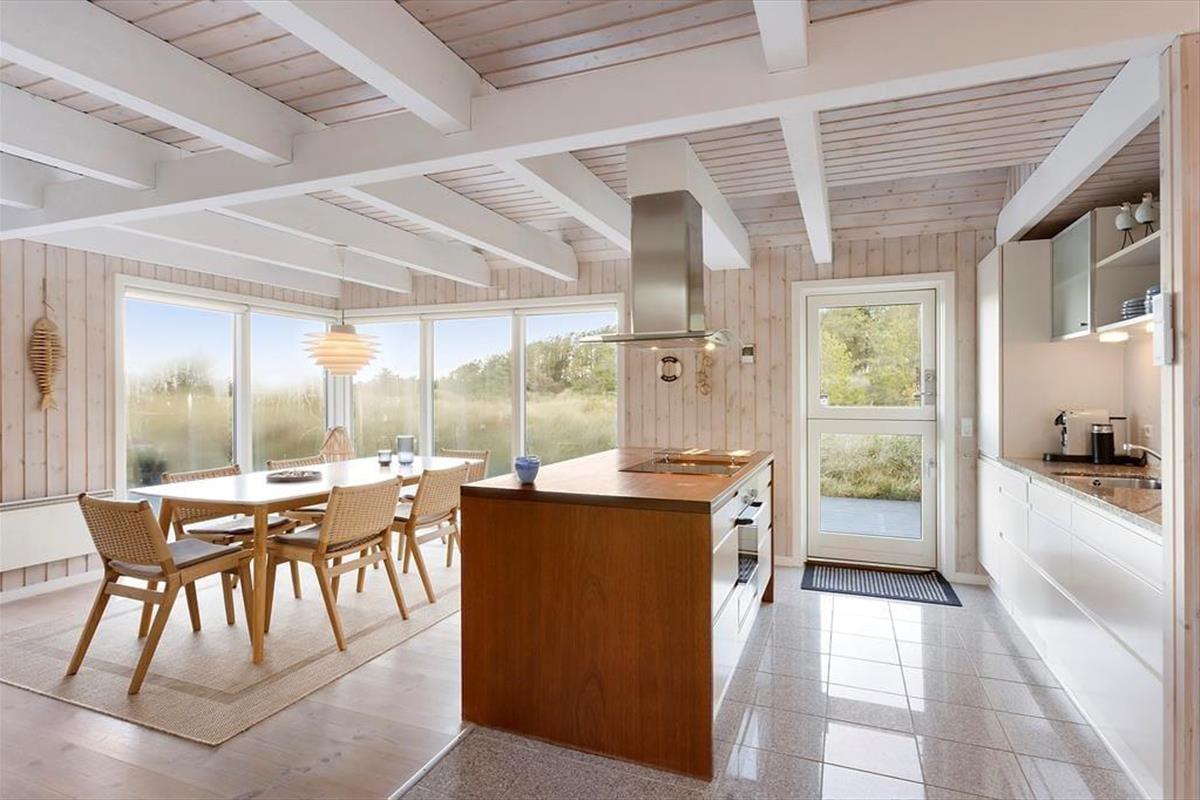 Bei diesem Ferienhaus wurde die Messlatte in Bezug auf Qualität und Komfort sehr hoch gelegt. Es übertrifft sämtliche Erwartungen in puncto hoher Qualität, schöner Einrichtung und einzigartiger Lage. Der Stil des Hauses könnte mit “Moderne Gemütlichkeit” umschrieben werden. Hier werden entweder eine Familie oder auch befreundete Paare sicherlich unvergessliche Urlaubstage verbringen. Im Erdgeschoss befindet sich der große Aufenthaltsbereich mit offener Küche und Kochinsel, sowie einer gemütlichen Sofaecke vor dem Kamin. Von hier aus haben Sie auch Zugang zur Terrasse. In dieser Etage sind des weiteren zwei Schlafräume und zwei Badezimmer untergebracht. In einem der Bäder erwarten Sie eine Sauna und ein Whirlpool, die zu einigen entspannten Stunden in diesem schönen Raum einladen. Im oberen Stockwerk befinden sich zwei weitere Schlafräume sowie ein schöner Wohnraum. Von hier aus können Sie die herrliche Aussicht über die Dünenlandschaft genießen oder sich in ein gutes Buch oder eine Zeitung vertiefen. Sollten Sie auch im Urlaub ein wenig arbeiten müssen, so steht Ihnen ein schöner Arbeitsbereich mit Schreibtisch zur Verfügung. Sämtliche modernen Hilfsmittel von Geschirrspüler bis Waschmaschine befinden sich im Haus und erleichtern Ihnen so Ihre alltäglichen Aufgaben. Vergessen Sie nicht, Ihr Laptop oder Tablet mitzubringen. Die drahtlose Internetverbindung im Haus kann von Ihnen kostenfrei benutzt werden. Zu guter Letzt möchten wir darauf hinweisen, dass dieses traumhafte Ferienhaus für Allergiker geeignet ist. Die bedeutet im Gegenzug, dass das Mitbringen von Haustieren oder Rauchen nicht gestattet ist.