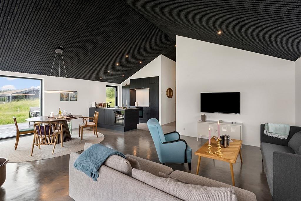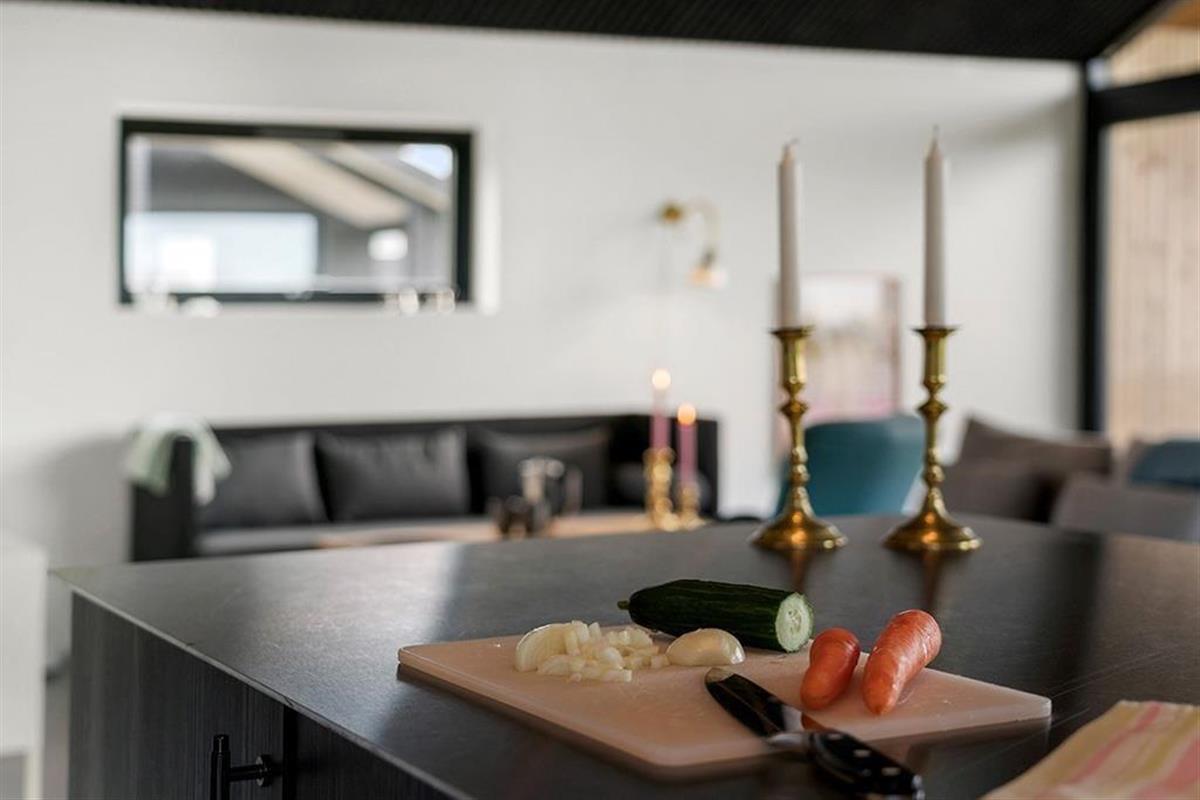 Wenn Sie dieses Ferienhaus betreten, werden Sie von einem geräumigen und hellen Küchen-Wohnbereich empfangen, der das Herz des Hauses bildet. Das Licht strömt durch große Fensterfronten und schafft eine helle und einladende Atmosphäre, die zu gemeinsamen Kochabenden und gemütlichen Stunden einlädt. Die Küche ist stilvoll eingerichtet und mit modernen Geräten ausgestattet, die die Zubereitung leckerer Ferienmahlzeiten einfach und bequem machen. Abends können Sie und Ihre Lieben sich um den Esstisch versammeln, um ein köstliches Abendessen zu genießen oder sich in den bequemen Möbeln des Wohnzimmers zu entspannen. Das Ferienhaus ist außerdem mit schnellem Internet ausgestattet, sodass Sie Ihre Lieblingsserien streamen oder den Kontakt zu Freunden und Familie zu Hause halten können.