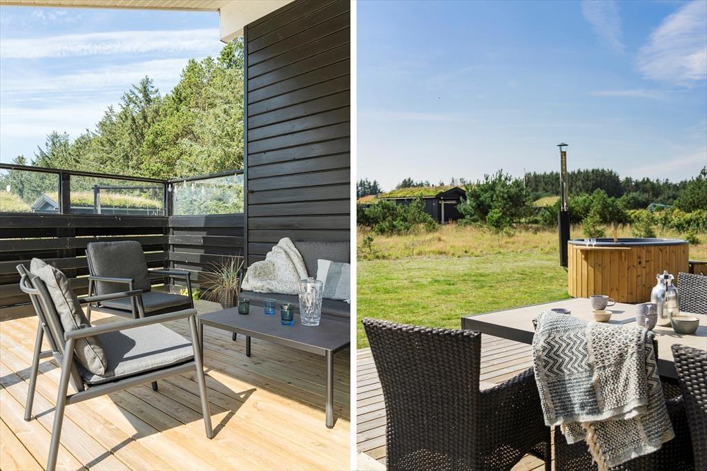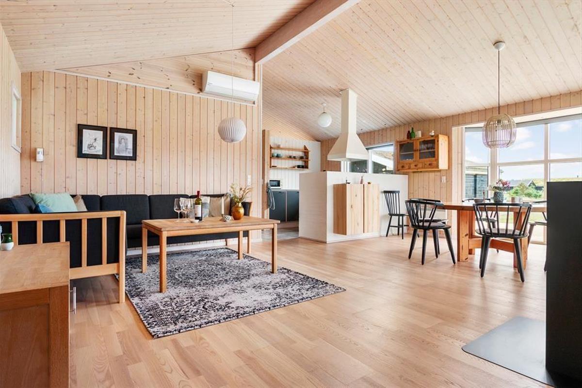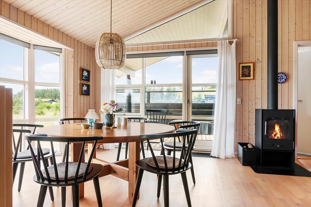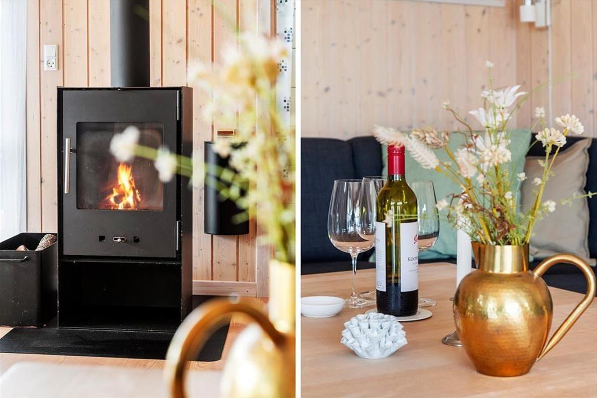 Wenn du das Ferienhaus betrittst, wirst du von einer hellen und geräumigen Atmosphäre empfangen. Die Einrichtung des Hauses ist modern und stilvoll mit großen Fensterpartien, die viel Licht hereinlassen. Das Wohnzimmer lädt zu gemütlichen Stunden vor dem Kamin ein, wo du ein gutes Buch genießen oder dich mit der Familie zu Brettspielen versammeln kannst. Die offene Küche ist gut ausgestattet und perfekt, um leckere Mahlzeiten zuzubereiten, die ihr am Esstisch genießen oder auf die Terrasse mitnehmen könnt. Im Nebengebäude findest du einen separaten Teenager-Bereich mit zwei Schlafplätzen, wo die Jugendlichen ihr eigenes kleines Refugium haben.