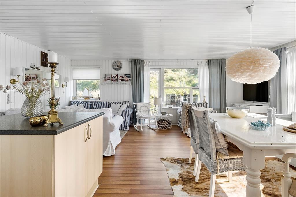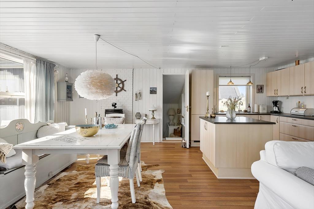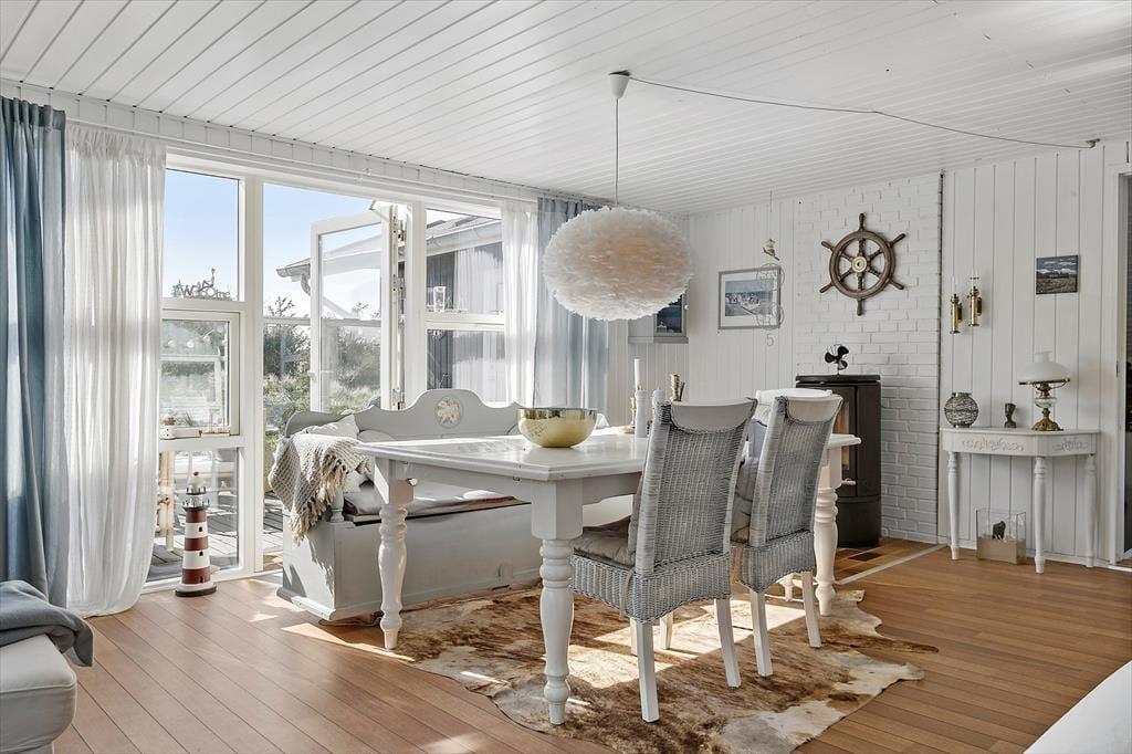 Dieses aus dem Jahre 1968 stammende Ferienhaus kann bereits auf einige geschichtsträchtige Jahre zurückblicken. Dennoch wurde es stets gut gepflegt und in 2012 einer umfassenden Renovierung unterzogen. Heute empfängt es Sie mit einer neueren Küche und einem herrlichen Badezimmer mit Dusche und Whirlpool und verfügt über sämtliche Annehmlichkeiten, die Sie von einem modernen Ferienhaus erwarten. Das Haus beinhaltet einen offenen Küchen- und Wohnbereich, drei bezaubernde Schlafräume mit viel Platz und ein tolles Bad, in dem Sie zusätzlich Ihre Wäsche waschen und trocknen können. Die Inneneinrichtung strahlt viel Wärme und Behaglichkeit aus. Ansprechende Möbel und viele stimmungsvolle Details sorgen für ein äußerst angenehmes Wohngefühl. An warmen Sommertage können Sie einfach die Terrassentüren öffnen und die wunderbare Seeluft und das herrliche nordische Licht das Haus durchfluten lassen. Sollte sich das Wetter einmal nicht von seiner besten Seite zeigen, empfiehlt es sich, den Kamin anzufeuern und das drahtlose Internet zu nutzen. Bitte bringen Sie Ihr eigenes Laptop oder Tablet von zuhause mit. Den Zugangscode erhalten Sie bei der Schlüsselabholung.