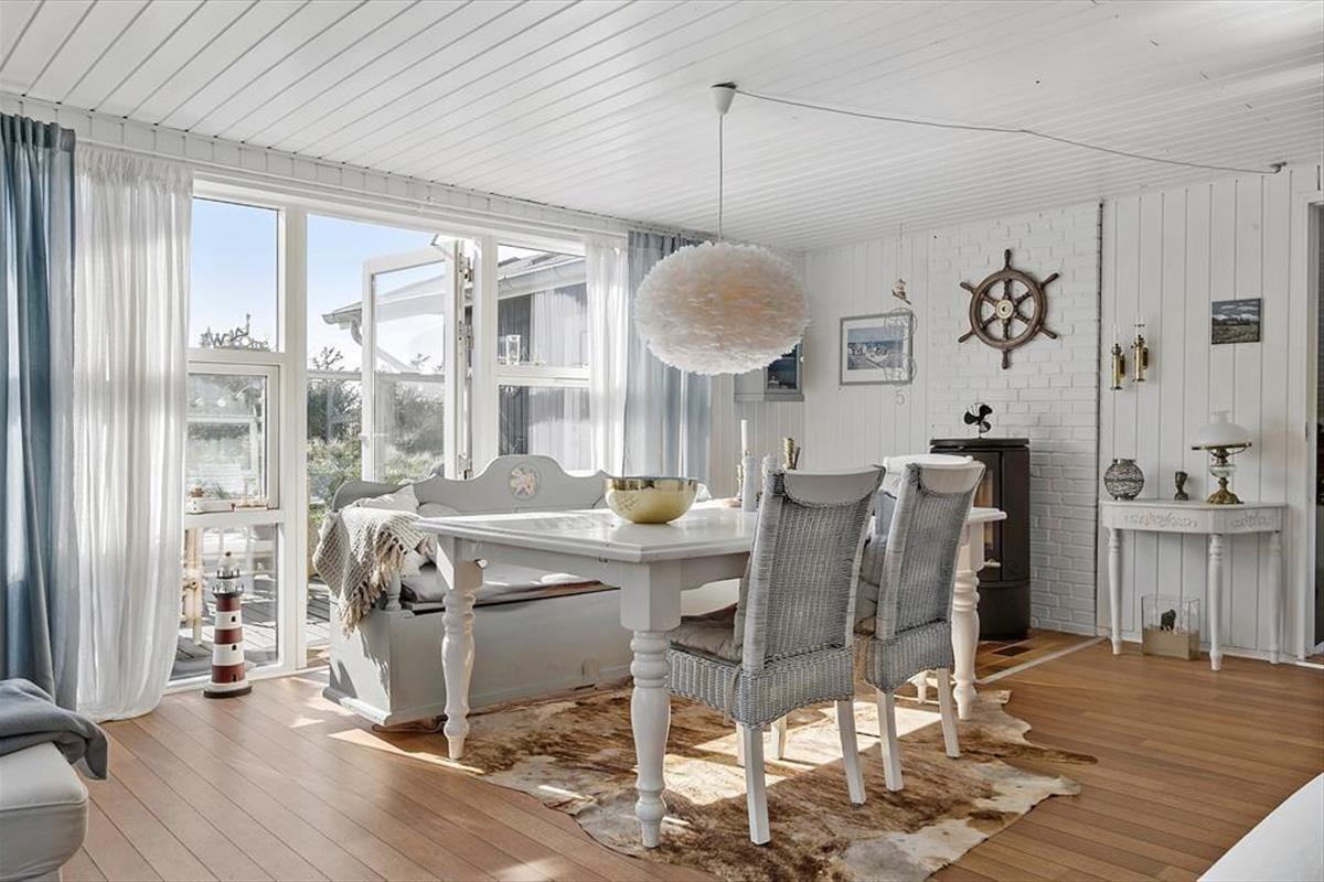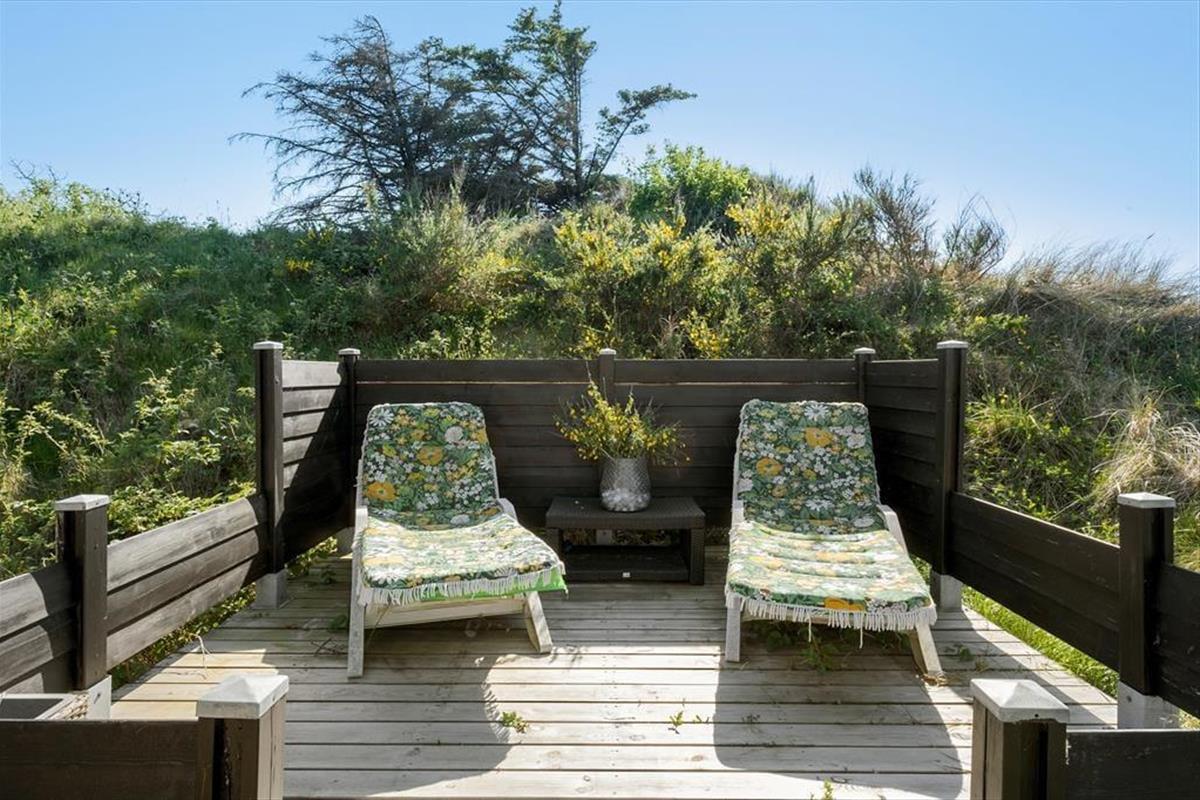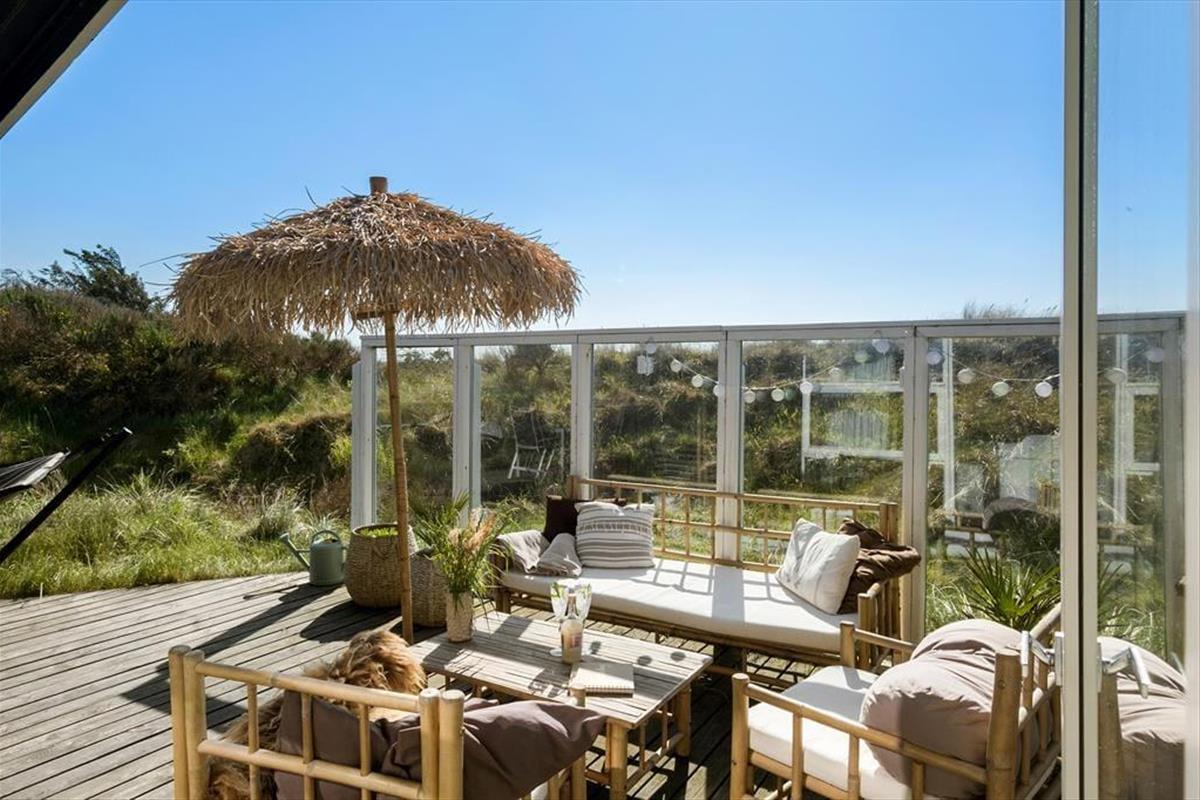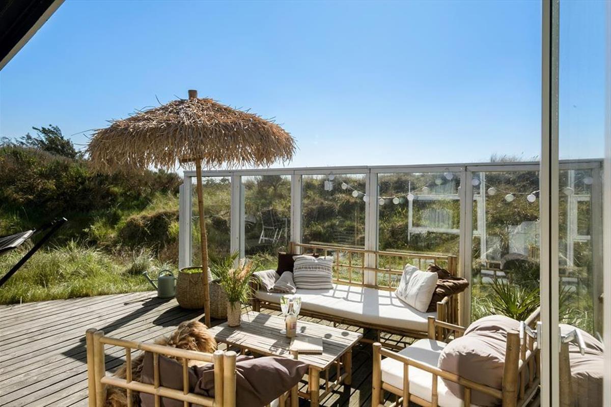 Dieses reizende Ferienhaus liegt auf einem großen Naturgrundstück in den Dünen bei Saltum. Die Dünen und die Windschutzverglasungen schirmen die Terrassen wunderbar gegen den meist vorherrschenden Westwind ab. Auf der Südterrasse können Sie zudem einen wunderbaren Ausblick in die herrliche Natur ringsum genießen. Besonders an den lauen, hellen Sommerabenden ist diese Terrasse ein idealer Ort zum Entspannen und Relaxen.