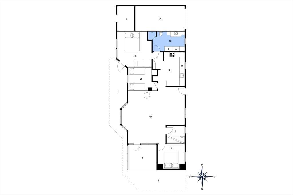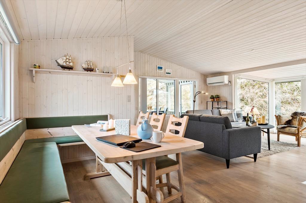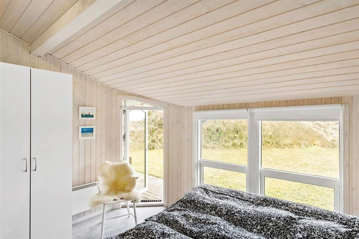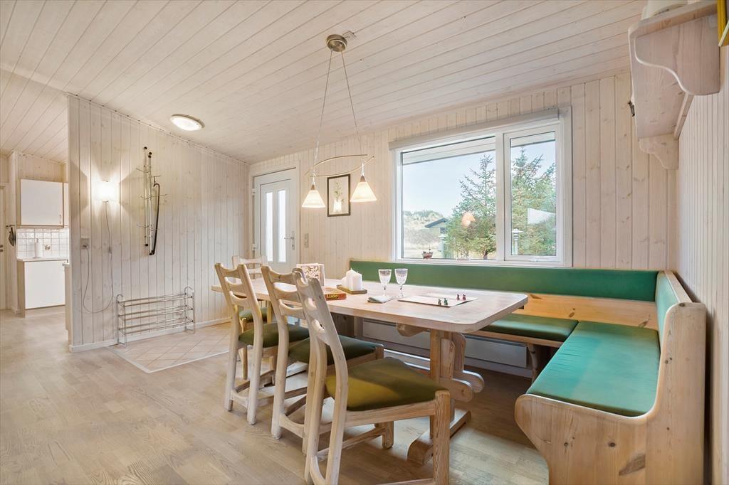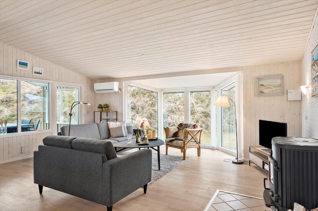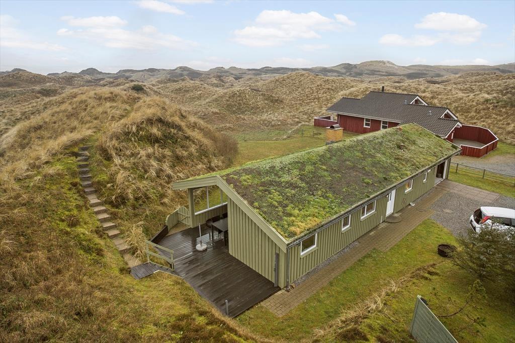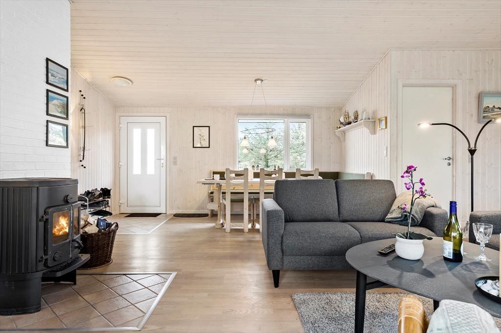 Das 117 m² große Ferienhaus besticht mit seiner attraktiven Lage am Ende des kleinen Wegs Koglevej, in der ersten Reihe vor einem Naturschutzgebiet, das Sie mit atemberaubenden Aussichten verwöhnt. Vom Vorbau des Wohnraums blicken Sie direkt auf die Dünen - ein wunderschöner Rahmen für gemütliche Stunden. Der geräumige Wohnraum beinhaltet komfortable Sitzmöglichkeiten und einen gemütlichen Essplatz. Für Unterhaltung und angenehme Temperaturen sorgen ein Flachbild-TV mit Chromecast, ein Kaminofen und eine Wärmepumpe. Die gut ausgestattete Küche ist offen mit dem Wohnraum verbunden. Der Rest der Wohnfläche ist vier guten Schlafzimmern und einem großen Badezimmer mit einer Dusche, einer Waschmaschine, einem Wäschetrockner und einer Fußbodenheizung überlassen.