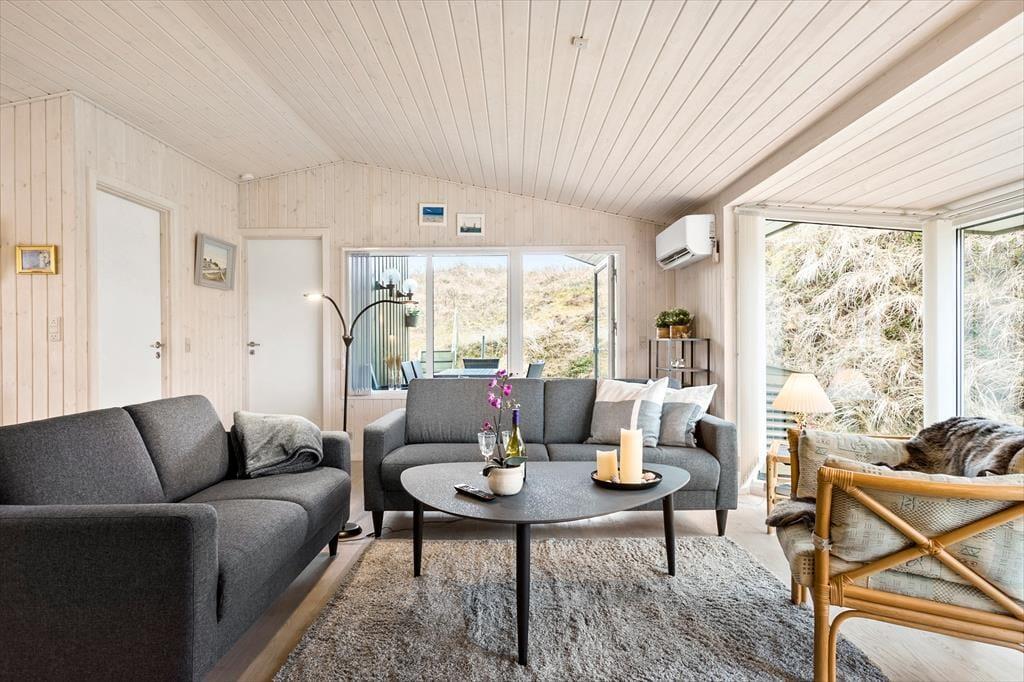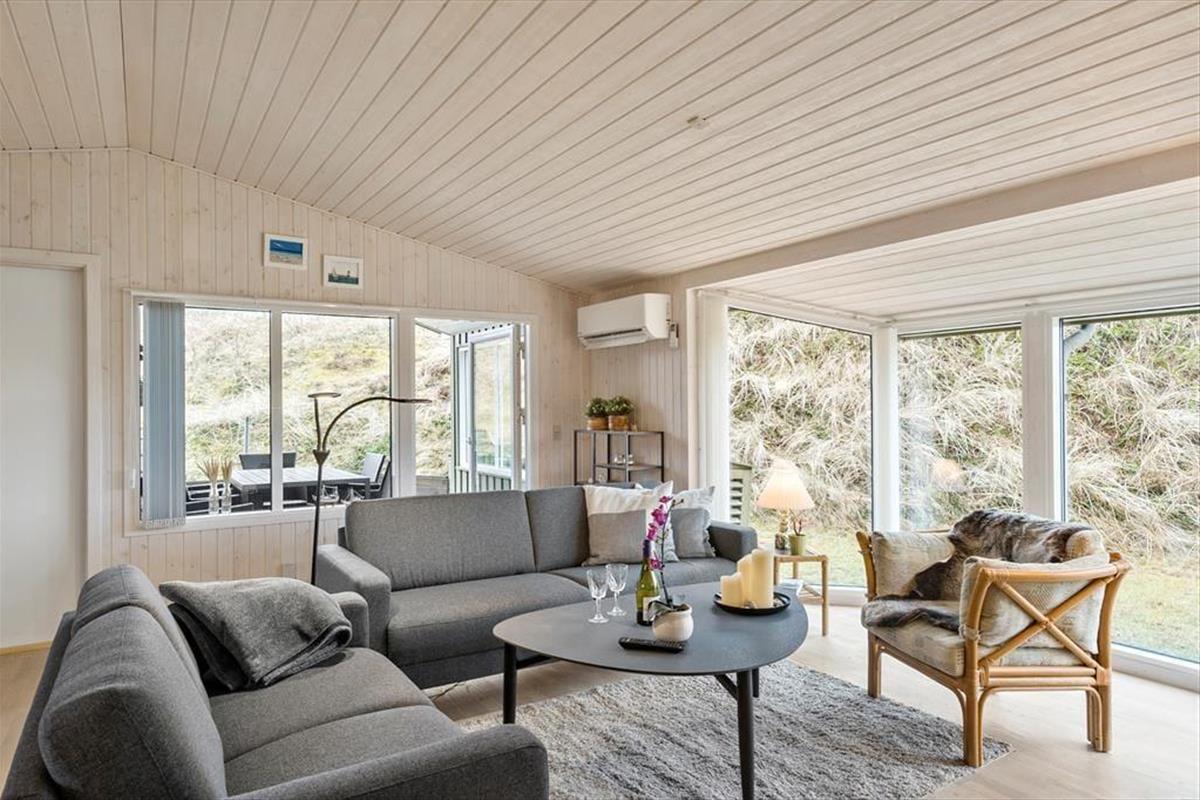Saltums wunderschöne Natur erstreckt sich nahezu bis in den Wohnraum dieses ausgesprochen geräumigen und gut eingerichteten Ferienhauses. Durch die Fenster an der westlichen Hausseite blicken Sie auf die Dünen. Wenn Sie sich auf die nächst gelegende Düne begeben, werden Sie mit einem Ausblick über die gesamte Jammerbucht verwöhnt. Hier lässt es sich aushalten!
