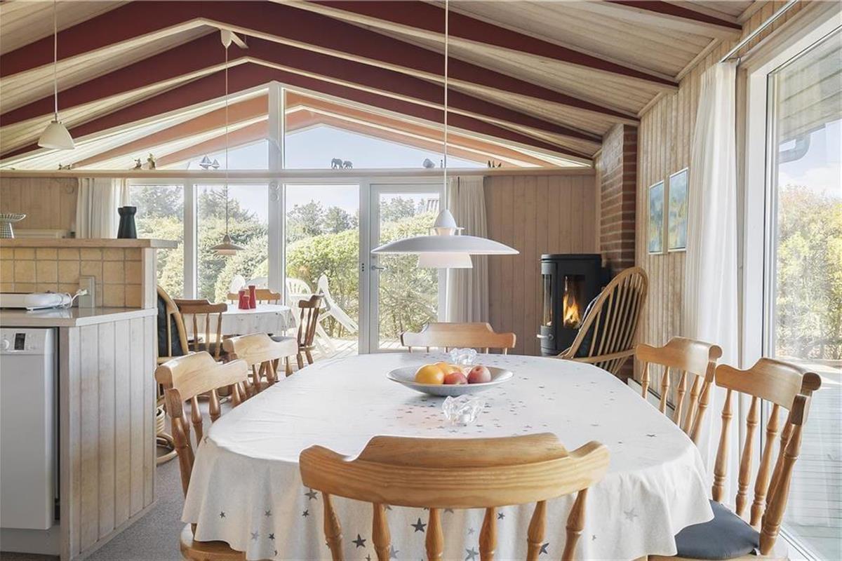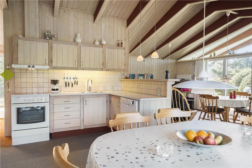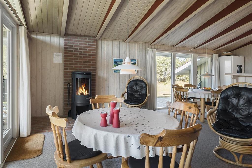 Das Haus ist traditionell eingerichtet mit einem gemütlichen Wohnzimmer, das offen mit der Küche verbunden ist. Es gibt zwei Essbereiche, sodass die Familie gemeinsam Zeit verbringen kann. Die Küche ist mit modernen Annehmlichkeiten wie Geschirrspüler und Mikrowelle ausgestattet, und es gibt kostenloses WLAN, sodass Sie gerne Laptop oder Tablet mitbringen können. Im Wohnzimmer befindet sich zudem ein schöner Kaminofen.