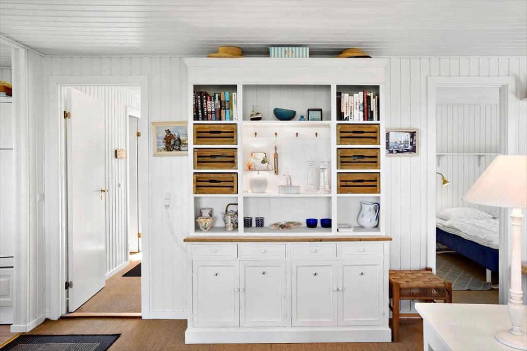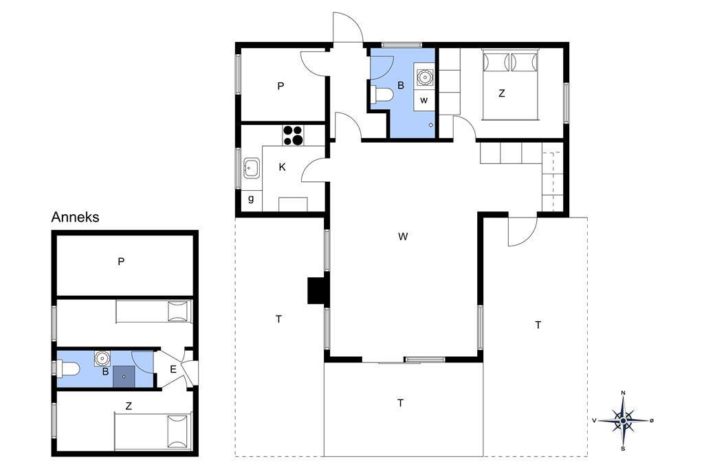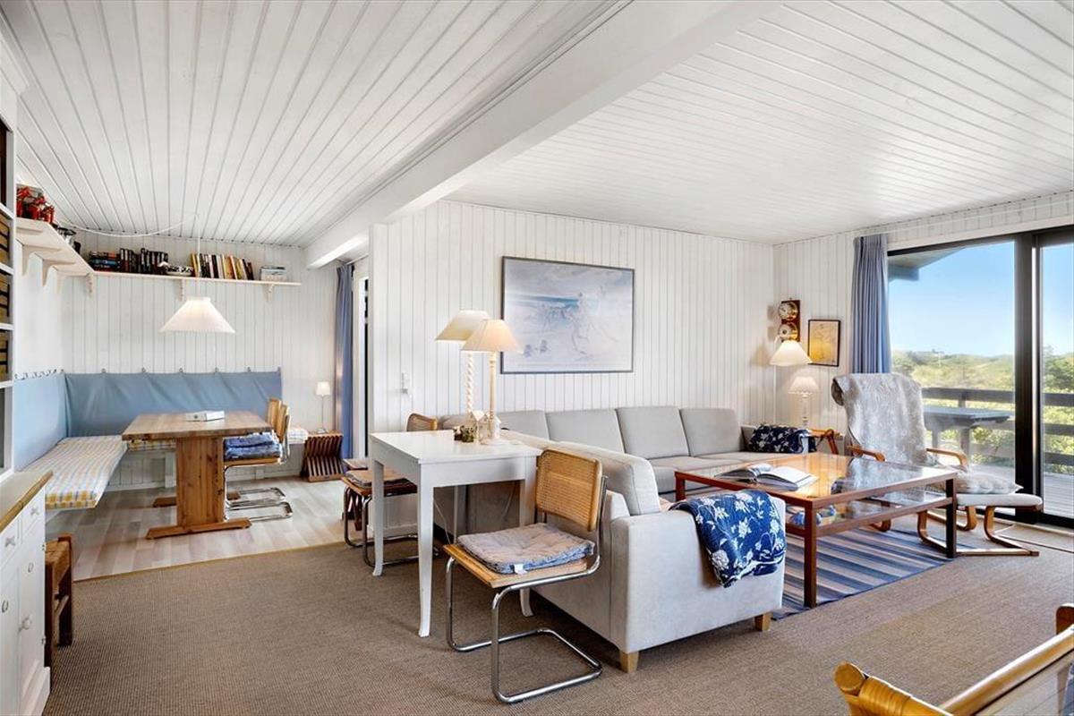 Dieses Urlaubsdomizil versprüht eine wunderbare Ferienhausstimmung und zwar für jeden Geldbeutel. Es setzt sich aus zwei separaten Häusern zusammen. Im Haupthaus befinden sich ein gemütlicher Wohnraum samt Essbereich, von wo aus Sie die herrliche Aussicht auf die Dünen genießen können. Das Haus liegt in einer der attraktivsten Gegenden Saltums. Die gemütliche Einrichtung besticht durch ihren hellen, reizenden Landhausstil. Vom Essbereich aus gelangen Sie auf die schöne Westterrasse, auf der Sie selbst bei frischerem Westwind, gut geschützt in die wunderbare Natur blicken. Die verhältnismäßig neue Küche fügt sich sehr gut in den ansprechenden Einrichtungsstil des restlichen Hauses ein. Wir sind uns sicher, dass Sie sich Charme dieses bezaubernden Hauses nur schwer entziehen können. Trotz des gemütlichen Ferienhausstils verfügt das Objekt selbstverständlich über die meisten modernen Hilfsmittel wie beispielsweise einen Geschirrspüler, eine Waschmaschine und eine Parabolanlage mit skandinavischen und deutschen Sendern. Damit Sie auch im Urlaub auf dem Laufenden bleiben, steht Ihnen ein freier Internetzugang zur Verfügung. Bitte bringen Sie Ihr eigenes Laptop oder Tablet von zuhause mit! Das ebenfalls sehr ansprechende Badezimmer ist mit einer Dusche und einer Toilette ausgestattet. Eine Waschmaschine sorgt im Bad zudem jederzeit für frische Handtücher und saubere Badebekleidung. Im Haupthaus ist ein Schlafraum mit einem Doppelbett untergebracht. In einem weiteren Raum befinden sich private Dinge des Hauseigentümers. Dieser Raum kann daher leider nicht von Ihnen genutzt werden. Vom Haupthaus führt eine Treppe hinab zur Garage, in deren Verlängerung sich das große Nebengebäude anschließt. Die Wohnfläche des Nebengebäudes unterteilt sich in zwei Schlafräume mit jeweils einem Einzelbett und ein, sich zwischen den Schlafräumen befindliches Badezimmer. Besonders beliebt ist dieses Nebengebäude bei Teenagern, die zwar noch gerne mit der Familie verreisen, aber dennoch Wert auf ein wenig Privatsphäre legen. Dieses Urlaubsdomizil eignet sich hervorragend für eine Familienurlaub mit viel Platz zum gemütlichen Beisammensein und ebenso viel Platz für das Privatleben jedes Einzelnen.