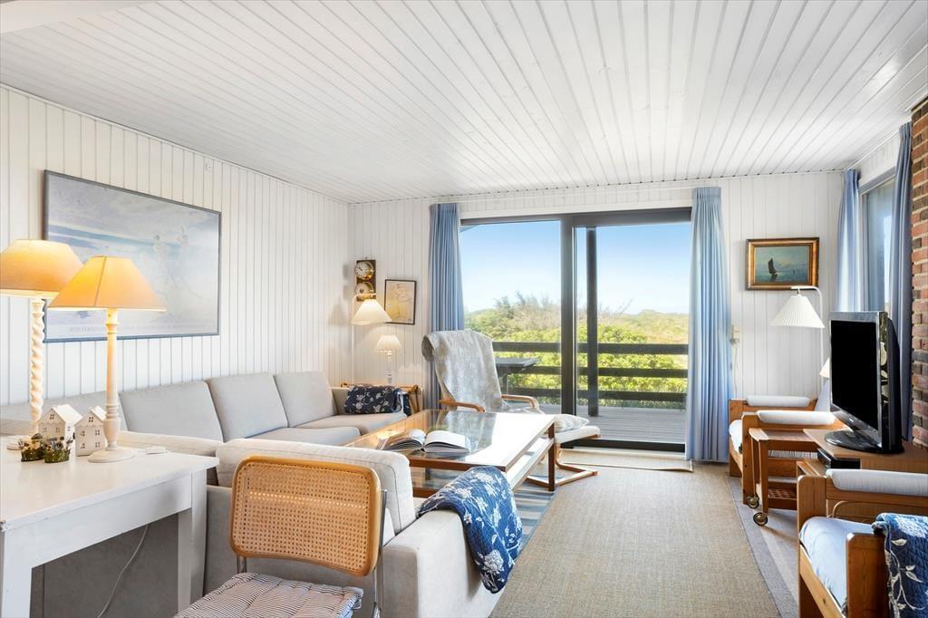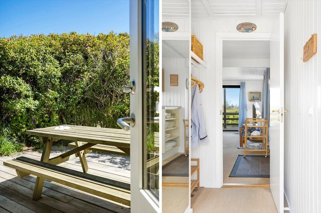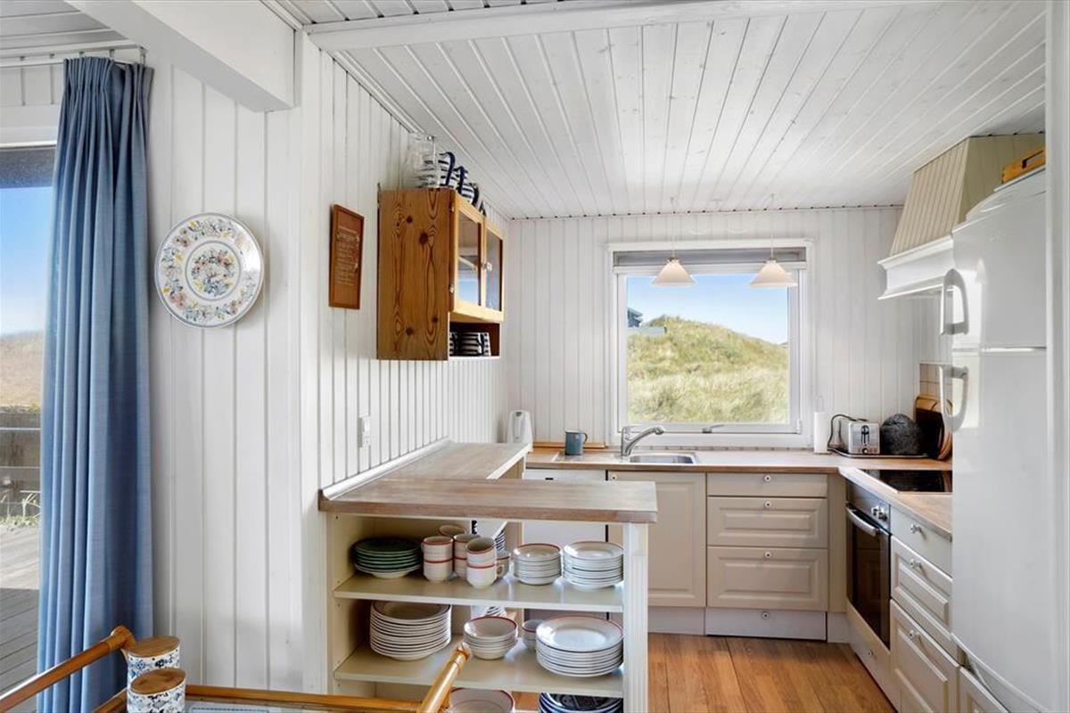 Das Ferienhaus liegt auf einem großen Naturgrundstück. Der prachtvolle Strand von Saltum ist mit einer Entfernung von lediglich 750 Metern schnell erreicht. Am Strand erwarten Sie erfrischende Bäder in den blauen Wellen, ausgedehnte Spaziergänge und selbstverständlich viel Spiel und Spaß für die kleinen und die jung gebliebenen Urlauber. Der Strand bei Saltum zählt zu den besten der Region. Da es hier im Vergleich zu den Strandabschnitten bei Blokhus und Løkken eher ruhig zugeht, erfreut sich der Strand von Saltum bei vielen Urlaubsgästen großer Beliebtheit. Nach einem Bad im kühlen Nass oder einem ausgedehnten Strandtag haben Sie bei diesem Ferienhaus die Möglichkeit, sich unter der Außendusche zu erfrischen und sich das Salz und den Sand von der Haut zu spülen, bevor Sie das Ferienhaus betreten. Das Haus empfängt Sie des weiteren mit zwei schönen Terrassen. Da eine der Terrassen überdacht ist, können Sie es sich jederzeit und völlig unabhängig vom Wetter, mit einem frischen Kaffee oder einem guten Glas Wein im Freien gemütlich machen und das herrliche Gefühl genießen, mitten in der Natur zu wohnen. Dank des wunderbaren Grundstücks, ist es zudem ein Leichtes, einen der Dünenwipfel zu erklimmen und von hier aus die Abendsonne und einen der legendären Sonnenuntergänge über der Jammerbucht zu erleben.