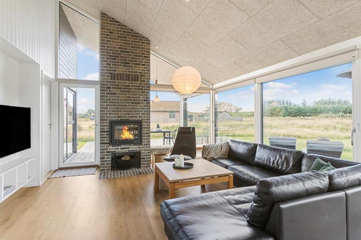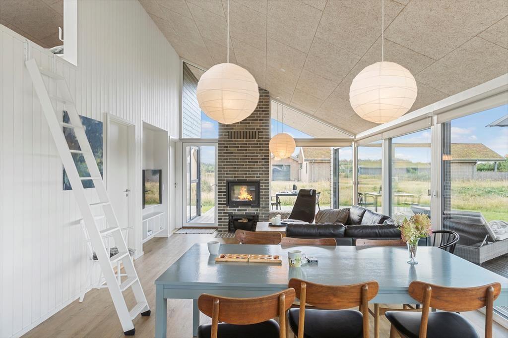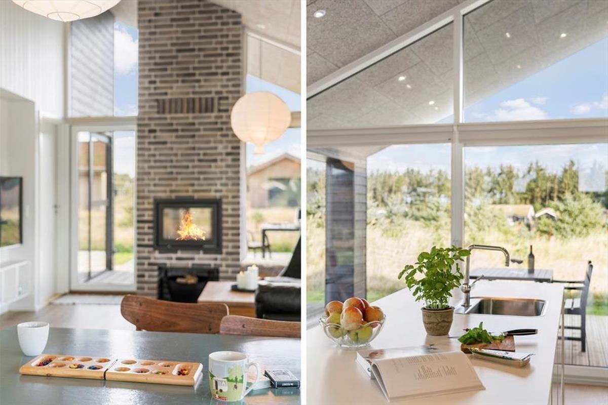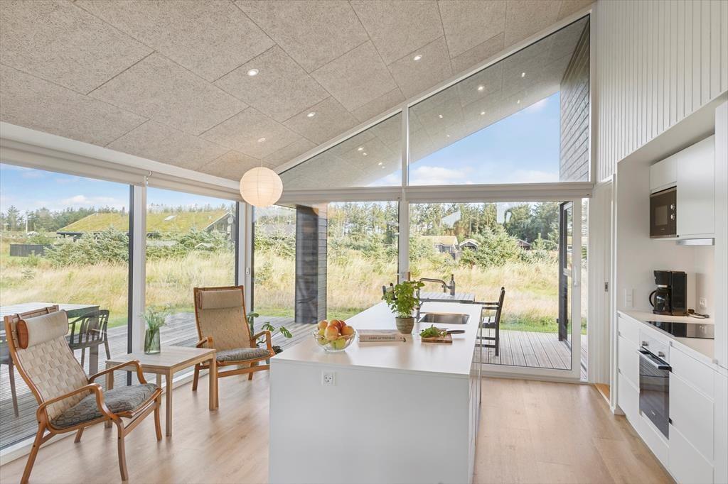 Im Inneren erwartet dich ein offener und heller Küchen-Wohnbereich, in dem große Fenster das Sonnenlicht hereinlassen. Der gemütliche Kaminofen schafft eine warme und einladende Atmosphäre, die zum Entspannen und Zusammensein einlädt. Die stilvolle Küche ist perfekt für das Kochen mit der Familie oder Freunden, und der offene Grundriss macht es einfach, zusammen zu sein, ob du am Herd stehst oder auf dem Sofa entspannst. Die gemütliche Hems bietet einen zusätzlichen, intimen Raum, in dem Kinder spielen oder Erwachsene mit einem guten Buch entspannen können. Das Haus bietet die perfekte Balance zwischen Funktionalität und Gemütlichkeit – eine wahre Oase, in der du deinen Urlaub in vollen Zügen genießen kannst.