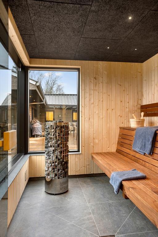 Das Terrassenareal ist groß und sonnig. Sie genießen die Wahl zwischen zahlreichen Aufenthaltsplätzen und geschützten Ecken. Unter anderem treffen Sie auf eine überdachte Terrasse mit Loungemöbeln, die sich hervorragend für die langen, hellen Sommerabende anbietet. Der Outdoor-Whirlpool und die zugehörige Sauna mit Panoramafenster versüßen Ihnen Ihre Stunden im Freien in schönster Weise. Auf dem Naturgrundstück können Sie in bester Pfadfindermanier in geselliger Runde an der Feuerstelle sitzen und sogar in der Schutzunterkunft übernachten. Parkmöglichkeiten für mehrere Pkws sind selbstverständlich vorhanden. Gleiches gilt für eine Lademöglichkeit für E-Autos.