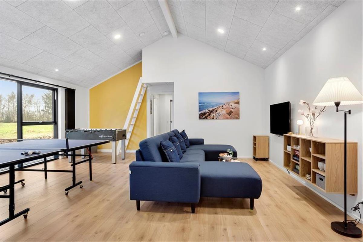 All Ihre Urlaubsträume werden in diesem Ferienhaus mit der Adresse Solmarken 1 in Erfüllung gehen. Das schöne, gut eingerichtete Ferienhaus, das inmitten der Natur Saltums liegt, verfügt unter anderem über einen unterhaltsamen Aktivitätsraum, einen Outdoor-Wellnessbereich und eine traumhaft schöne Küche, die offen in den Aufenthaltsbereich integriert ist. Dank der vielen Schlafplätze genießen Sie Ihren Urlaub in diesem Mietobjekt sicher gern mit all Ihren Familienmitgliedern oder mit guten Freunden.