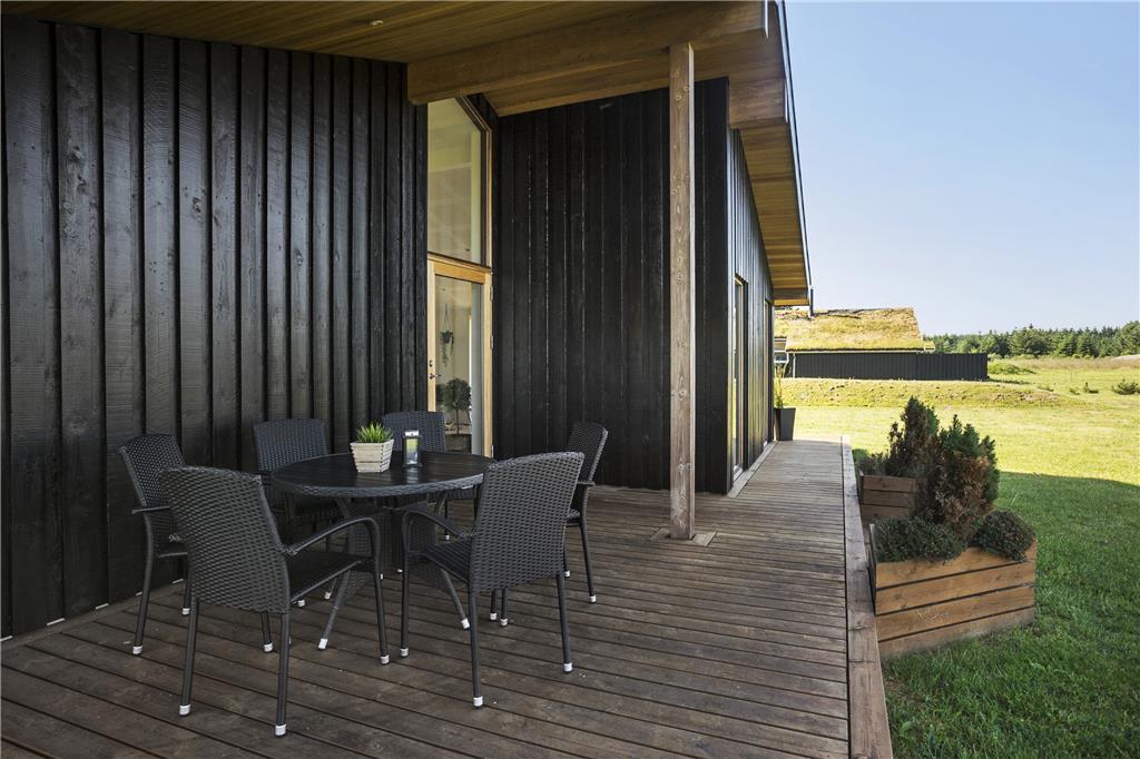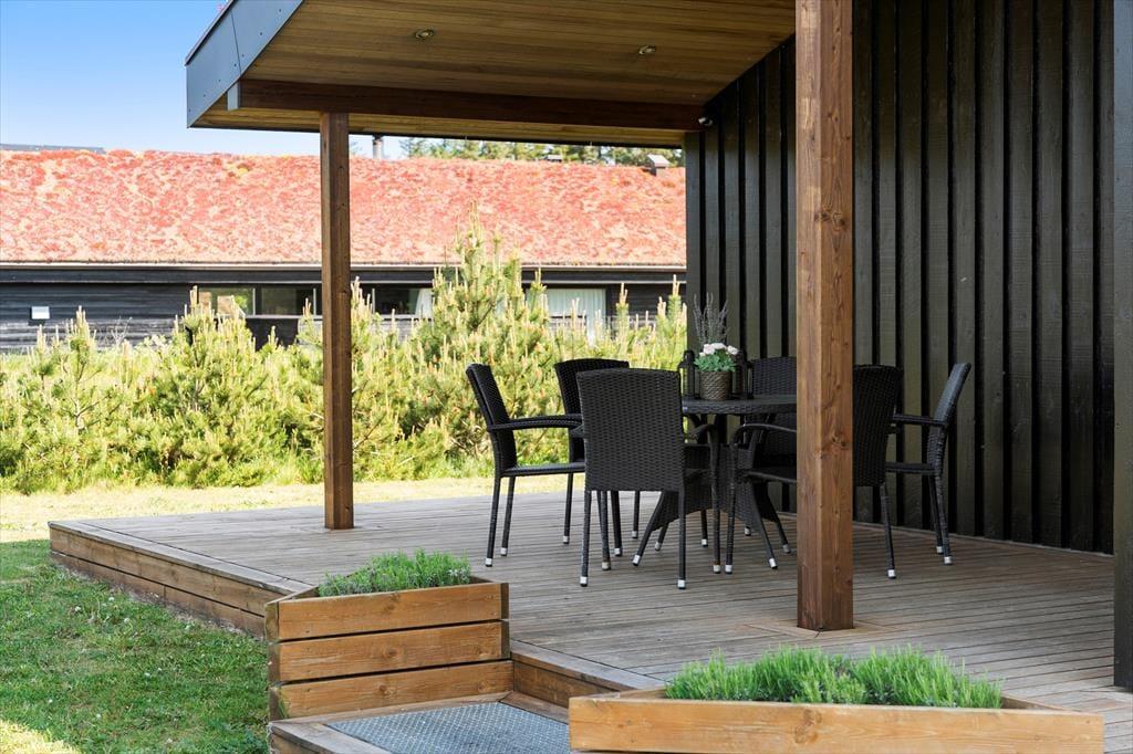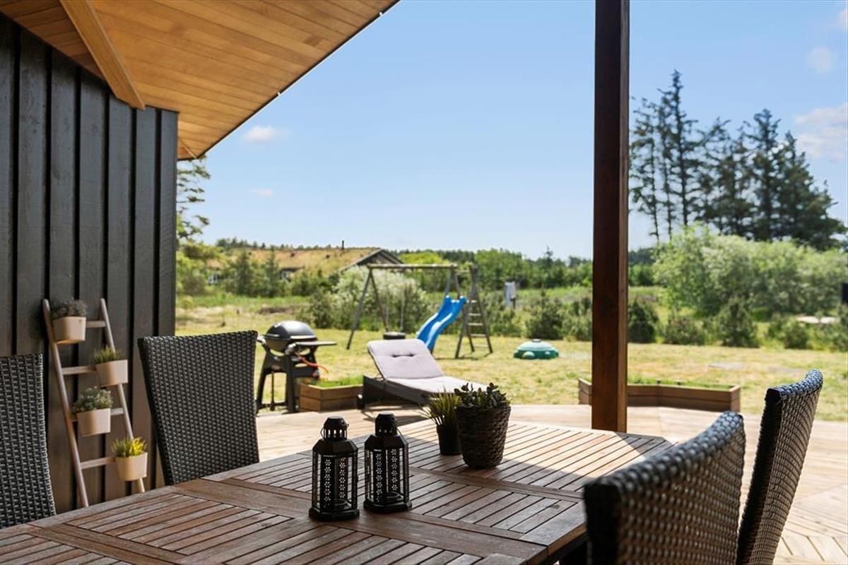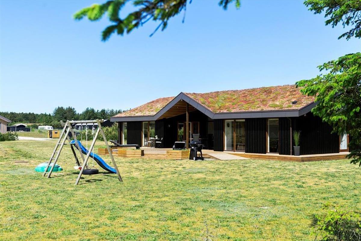 Das Ferienhaus liegt auf einem fantastischen Grundstück mit viel Platz zum Spielen und Toben auf der großen Grasfläche. Die Schaukel, die Sandkiste und der Kletterturm werden bei Ihren Kindern für Begeisterung sorgen. Während Ihre Kinder ausgelassen spielen, können Sie es sich in aller Ruhe auf der großen, vom Wohnbereich und Essplatz zugänglichen und teilweise überdachten Terrasse gemütlich machen. Hier können Sie bereits früh am Morgen Ihren ersten Becher Kaffee in der Morgensonne genießen. Dank der Liegestühle, des Grills und der Gartenmöbel versprechen gesellige Runden an den langen, hellen Abenden mit einem köstlichen Essen vom Grill und einem guten Glas Wein unvergessliche Urlaubsmomente. Auch an der anderen Hausseite steht Ihnen einen überdachte Terrasse zur Verfügung. Das Grundstück wird an einer Seite von hohen Bäumen begrenzt. Sie suchen ein erstklassiges Ferienhaus voller Gemütlichkeit, Geschmack und Charme? Dann sind Sie hier wunderbar aufgehoben.