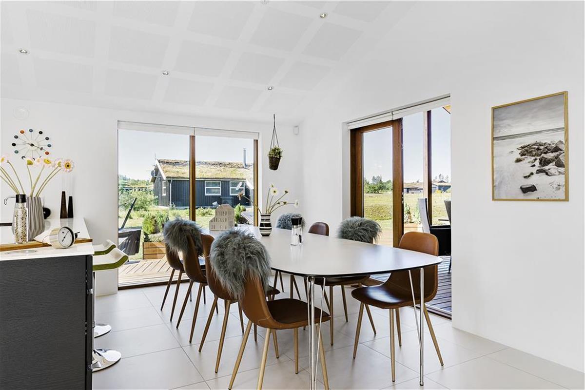 Das helle und freundliche Traumhaus empfängt sie mit einer wunderbar entspannten Wohnatmosphäre. Hier wird sich Ihre gesamte Familie wunderbar erholen, zur Ruhe kommen und neue Energien für den meist sehr stressigen Alltag sammeln. Ein langer Flur, von dem Sie sämtliche Räume des Hauses erreichen, durchzieht das Haus. Der Flur führt Sie direkt in den prachtvollen, mit der modernen Küche und dem schönen Essplatz kombinierten Wohnraum. Ihnen stehen drei gute Schlafräume, von denen zwei mit Doppelbetten eingerichtet sind, zur Verfügung. Im dritten Schlafraum erwarten Sie zwei Einzelbetten. Der große Wohnraum begeistert mit komfortablen Möbeln und einem herrlichen Ausblick über das Grundstück. Die moderne Küche verwöhnt Sie mit hochwertigen Küchengroßgeräten. Der geschmackvolle, moderne Stil des Hauses setzt sich auch in den beiden Bädern fort. Da beide Badezimmer mit einer Dusche ausgestattet sind, werden unangenehme Warteschlangen am Morgen vermieden. Dank der großen Fensterfronten durchströmt unglaublich viel nordisches Licht den Wohnbereich, in dem Sie es sich am Abend mit einem guten Buch gemütlich machen können. Die hauseigene Internetverbindung sorgt für Abwechslung, hält Sie auch im Urlaub stets auf dem Laufenden und sorgt gleichzeitig dafür, dass Sie schnell und einfach an Informationen über interessante Ausflugsziele, das Wetter und die Region an sich gelangen. Bitte bringen Sie Ihr eigenes Laptop oder Tablet von zuhause mit. Da in diesem Urlaubsdomizil auch Hunde herzlich willkommen sind, bildet es einen durchweg perfekten Rahmen für einen gelungen Urlaub in Nordjütland, in dem sich Groß und Klein und auch Ihr vierbeiniger Freund sehr wohl fühlen werden.