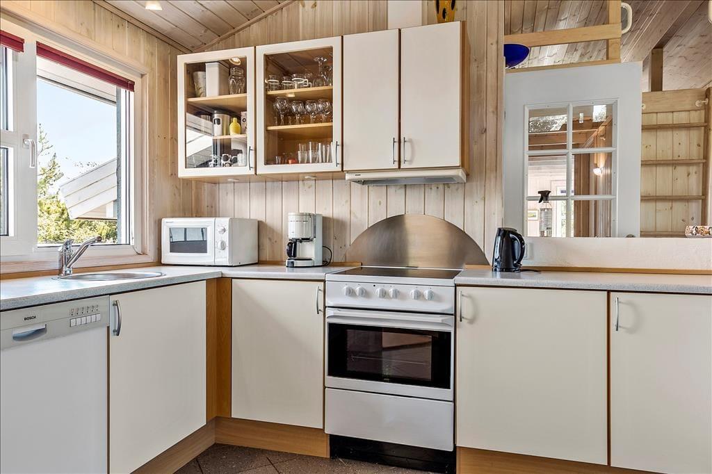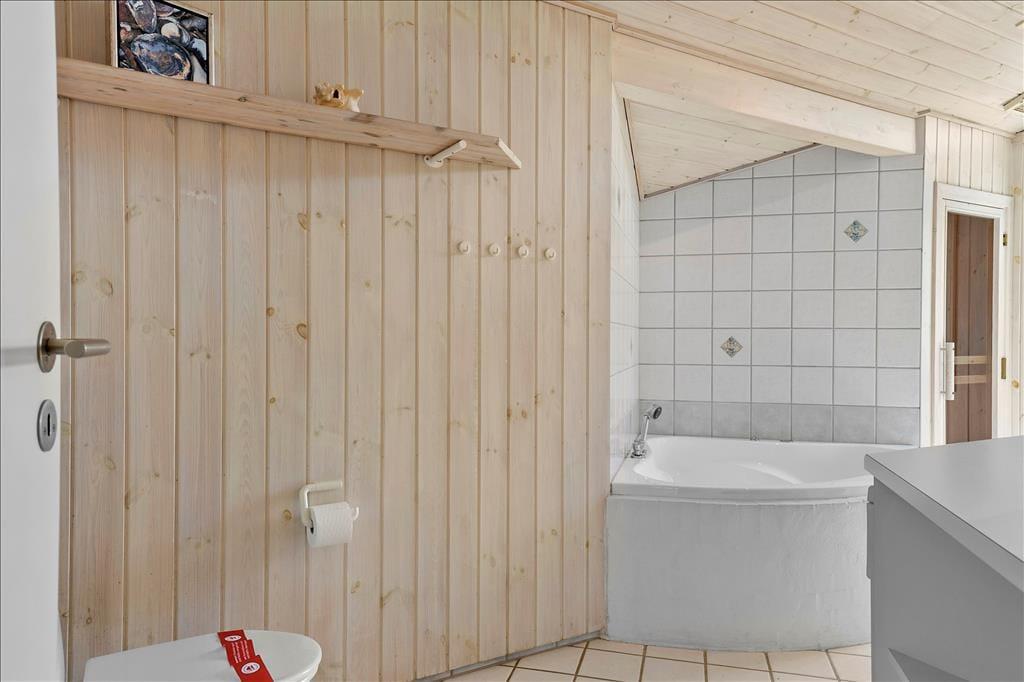 Willkommen in einem tollen präsentablen Ferienhaus mit einer geschmackvollen Einrichtung und Platz für eine große Familie oder zu zweit die eine super Urlaub verbringen möchten. Hier wurden alle Quadratmeter gut ausgenutzt, qualitativ hochwertige Möbel und alle möglichen technischen Hilfsmittel stehen zur Verfügung, um zu entspannen und die idyllische Umgebung zu genießen. Der Mittelpunkt des Hauses ist die offene Küche mit direktem Zugang zum Wohnzimmer. Hier kann man sich zum Essen und zu gemütlichen Stunden mit Spielen und vor dem Fernseher oder dem Kamin treffen. Falls sich das Wetter von seiner tristen Seite zeigt und nur Innenaktivitäten möglich sind, kann sich in das kostenlose WLAN eingeloggt werden. Außerdem bietet das Haus drei gute Schlafzimmer mit neue Matratzen, einen Dachboden mit zwei Matratzen und zwei Badezimmer, wovon eins mit Whirlpool, Sauna, Waschmaschine und Trockner ausgestattet ist. Sehr praktisch aufgrund der Nähe zur Nordsee. Alles in allem sehr gute Rahmenbedingungen für jeden Urlaub in Nordjütlands schönstem Feriengebiet.
