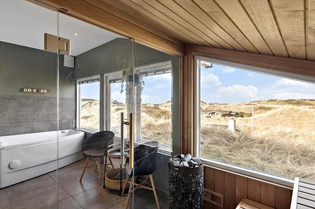 Eigentlich bedarf es nur eines Fotos der Wellnessabteilung, um zu verdeutlichen, wie schön und gut eingerichtet sich dieses Ferienhaus präsentiert. Der stilvolle Raum begeistert mit einem Whirlpool und einer Sauna. Von beiden Teilen aus genießen Sie darüber hinaus einen freien Blick über die wunderschöne Dünenlandschaft Saltums. Ein perfektes Plätzchen, um sich zu entspannen und das Urlaubsleben in vollen Zügen zu genießen!