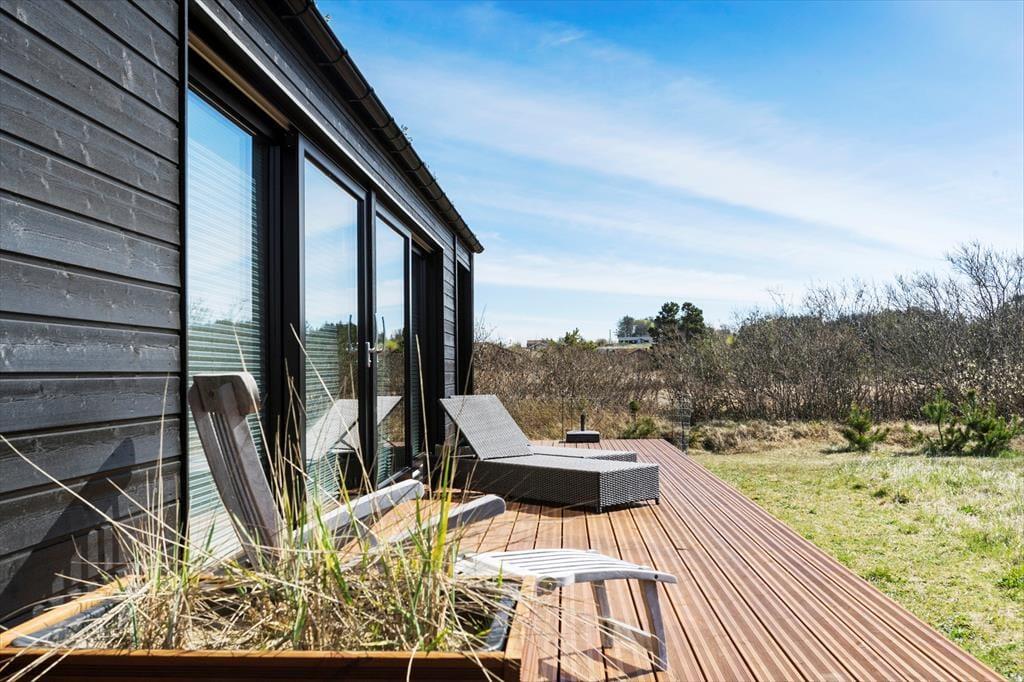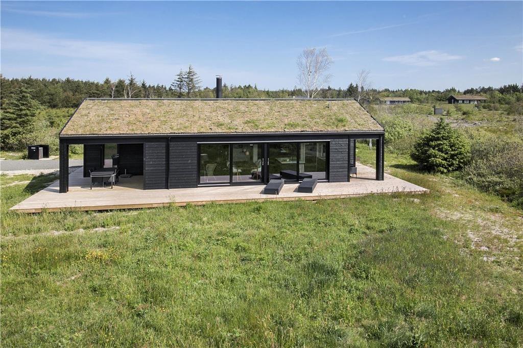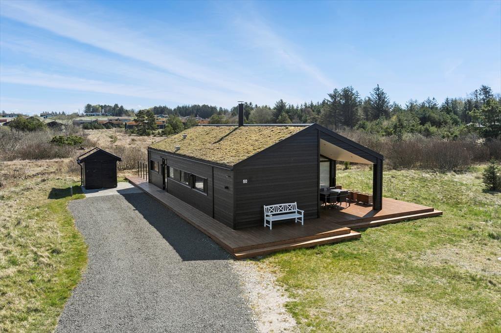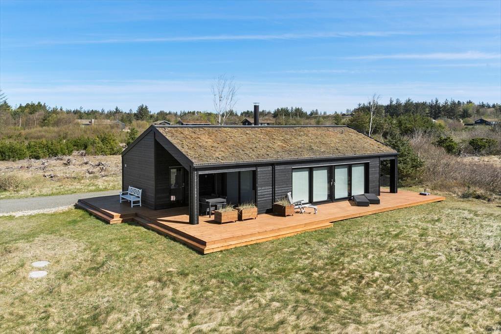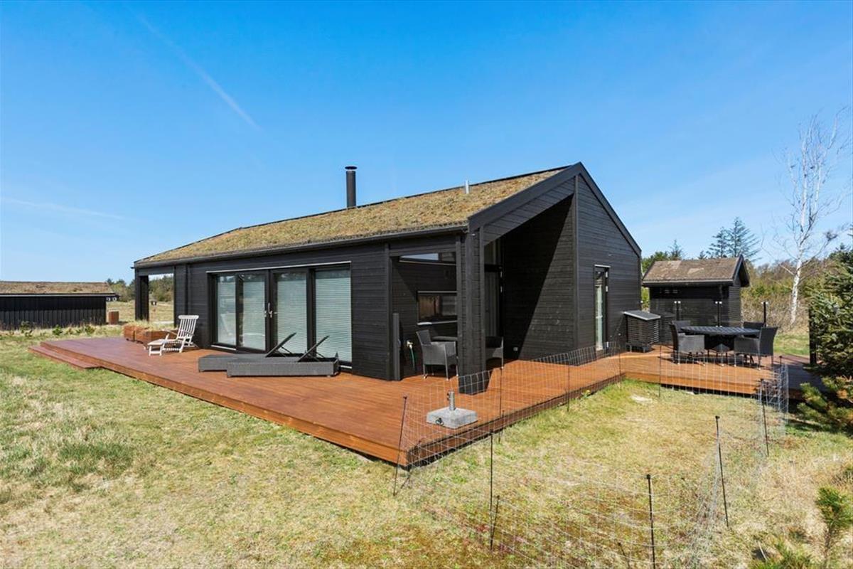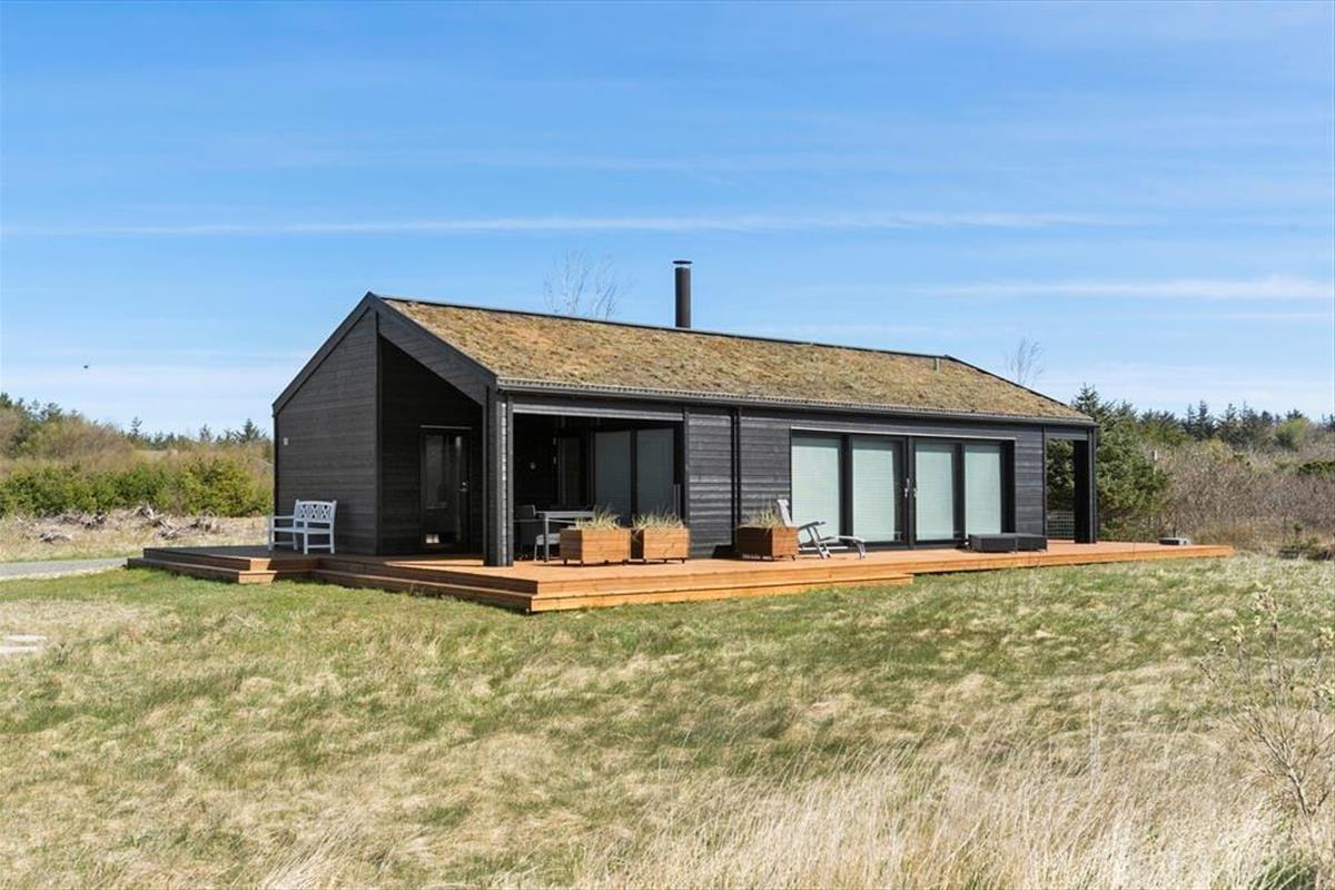 Mit seinem begrünten Dach und der rustikalen Holzverkleidung fügt sich dieses Urlaubsdomizil ganz fantastisch in die einzigartige Natur Nordjütlands ein. Große Fensterpartien durchbrechen die Fassade und sorgen dafür, dass Sie sowohl das Sonnenlicht als auch die schöne Aussicht genießen können, wenn Sie es sich vor dem Kamin im Inneren des Hauses gemütlich machen. Genauso wie die moderne Architektur, passt sich auch die Einrichtung mit ihrem neuen, nordischen Design und der ansprechenden Farbauswahl wunderbar in die Umgebung ein. Das Haus bietet Ihnen jedoch nicht nur Hochgenüsse für das Auge, sondern überzeugt auch durchweg mit einem hervorragenden Wohnkomfort. Zu erwähnen sind hierbei beispielsweise die Fußbodenheizung im Badezimmer und die in den Wohnraum integrierte Küchenabteilung, die selbst anspruchsvolle Hobbyköche zufrieden stellen dürfte. Die drei vorhandenen Schlafräume sind allesamt mit einem komfortablen Doppelbett ausgestattet. Zwei zusätzliche Schlafplätze befinden sich auf dem eingezogenen Schlafboden. Für Unterhaltung und Abwechslung in Form einer guten Filmauswahl samt sehr guter Klangqualität sorgen der Netflix-Anschluss und die Sonos-Box.