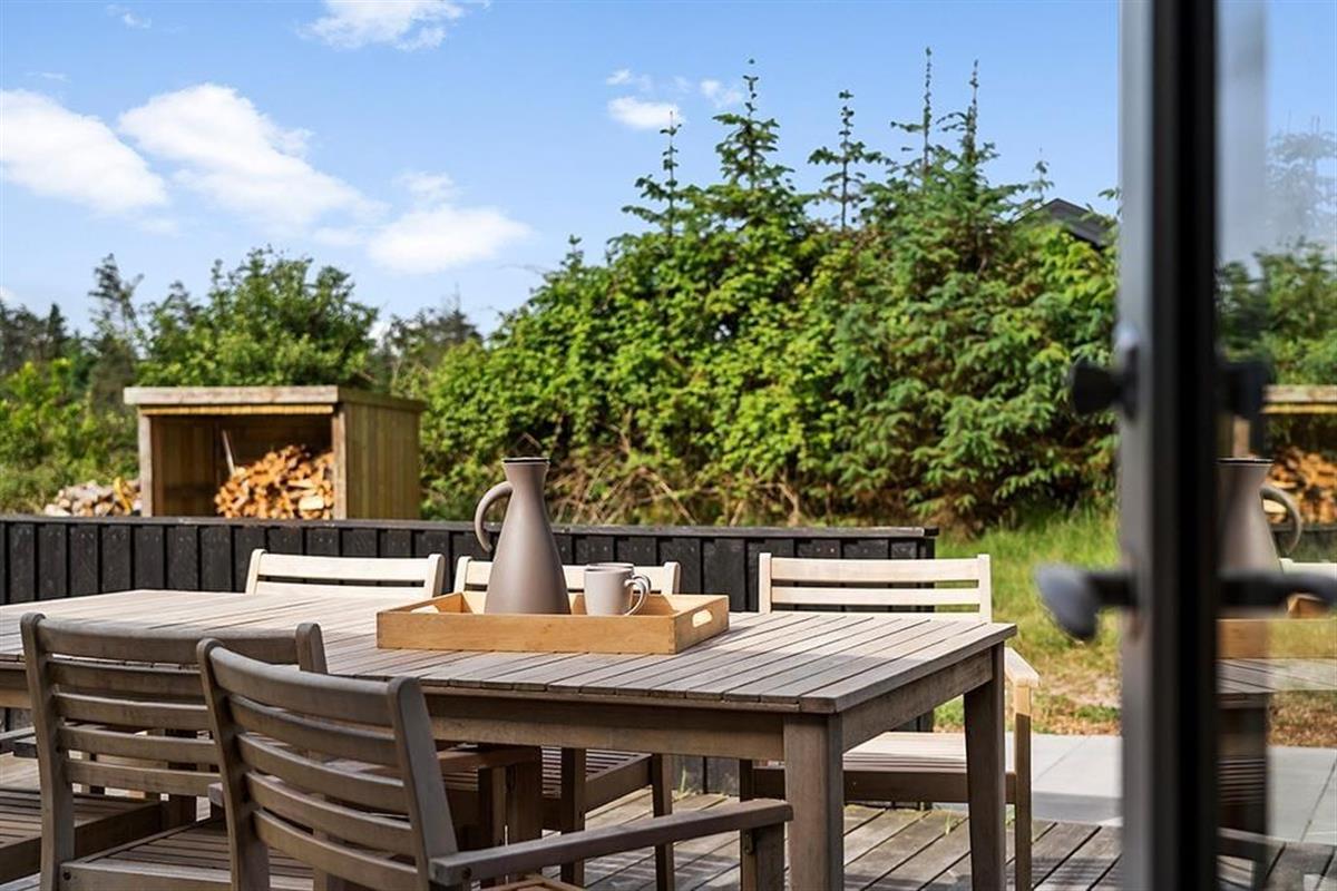 Dank des 2.586 m² großen Waldgrundstücks brauchen Sie auch unter freiem Himmel keinerlei Platzprobleme zu befürchten. Hier können Sie sich nach Herzenslust entspannen, während Ihre Kinder vergnügt das Grundstück erkunden, umhertollen und ausgelassen spielen. Zudem wohnen Sie hier zu 100 Prozent ungestört inmitten herrlicher Natur. Die nach Süden ausgerichtete Holzterrasse liegt sehr schön vor Wind geschützt zwischen dem Ferienhaus und dem Nebengebäude und lädt zu entspannten Stunden in der Sonne und zu geselligen Runden während der langen, hellen Sommerabende ein. Darüber hinaus haben Sie freien Zugang zum Tenniskurse im Gemeinschaftsbereich des Grundbesitzerverbandes.