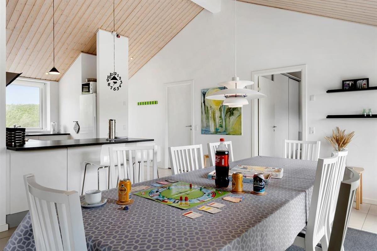 Hvide Klit ist eine kleine, geschlossene Straße, die entlang der äußeren Dünenkette am Saltum Strand entlang verläuft. Vom Haus aus sind es nicht mehr als 170 Meter bis zum Strand und auf dem kurzen Weg können Sie zur Spitze der Düne klettern, von der Sie einen fantastischen Panoramablick auf die Nordsee, den breiten Strand und die herrliche Küstenlandschaft haben. Wenn die Sommersonne scheint, können Sie sich ein Handtuch über die Schultern werfen, um zu baden und am Strand zu spielen. In anderen Jahreszeiten können Sie die Sauna so vorbereiten, dass Sie sich nach einem frischen Bad aufwärmen können. Wenn Sie den gesamten Urlaub nicht am Strand verbringen möchten, sind es nur wenige Kilometer zum großen Freizeitpark Fårup Sommerland und zum Jambo Feriepark, dem größten Minigolfplatz Europas.