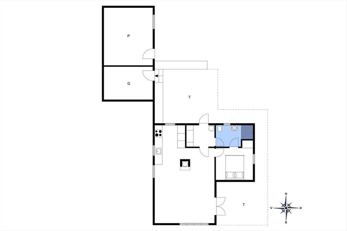 Auf dem am Ende einer Sackgasse gelegenen Grundstück erwarten Sie nichts als Frieden und Idylle. Mit anderen Worten ist diese Lage perfekt für Urlauber geeignet, die den Stress und die Hektik des Alltags abschütteln wollen und in direkten Kontakt mit der Natur kommen möchten. Dies gilt unabhängig davon, ob Sie sich direkt am Haus aufhalten oder ob Sie in die einmalig schöne Natur ringsum aufbrechen. Lille Norge ist ein unter Schutz stehendes Schmelzwassertal, entstanden im Zuge der Eiszeiten, das mit guten Wanderwegen durchzogen ist, die Sie in Richtung der faszinierenden Nordsee führen. Saltum Strand ist ein wunderbar breiter Sandstrand mit schönem Badewasser. Bereits nach 900 Metern, also einem rund zehn minütigen Spaziergang, spüren Sie den feinen Sand des Strandes unter Ihren Füßen. Ihre täglichen Einkäufe können Sie in Saltum erledigen. Hier gibt es auch einige kleine Galerien und das alljährlich veranstaltete Festival, bei dem sich alles um Wolle und Kunsthandwerk dreht.