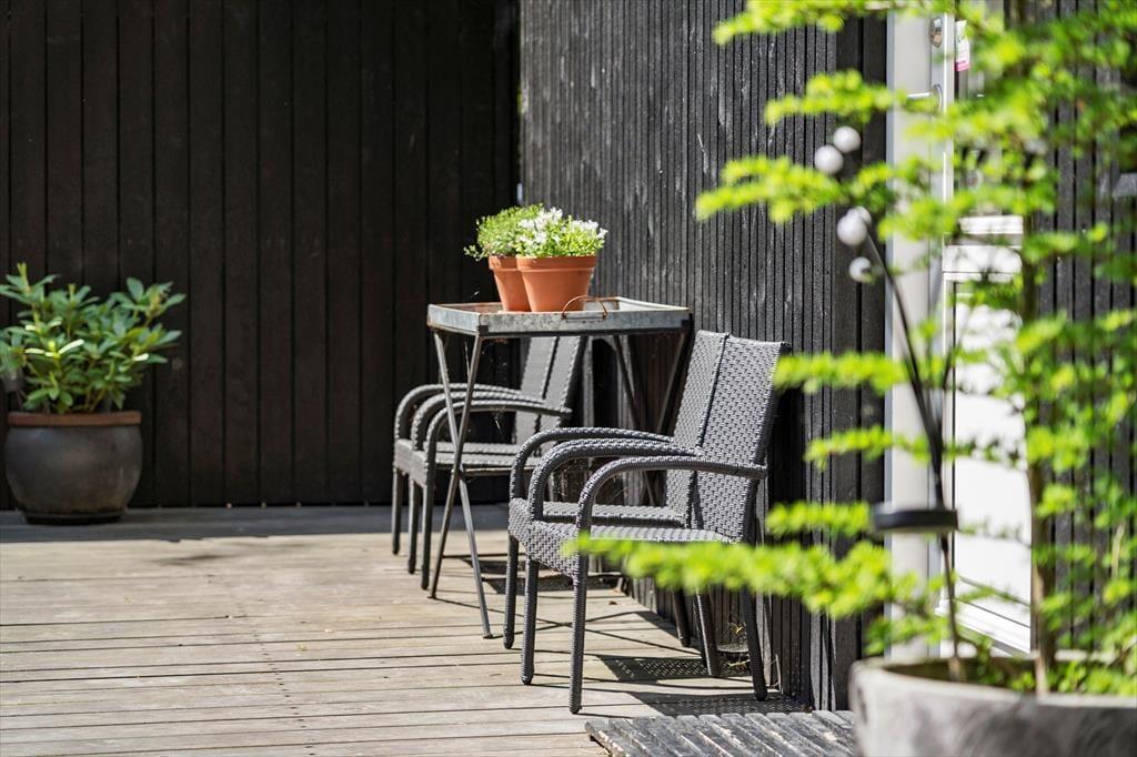Dieses Urlaubsdomizil ist mit seiner schwarz gestrichenen Fassade und den weißen Fensterrahmen der Inbegriff von klassischem Ferienhauscharme. Aufgrund der klassischen Farbgebung bildet das Haus einen ausgesprochen schönen Kontrast zum Grün des Grundstücks. Im Hausinneren werden Sie von einer hellen und freundlichen Wohnatmosphäre in Empfang genommen. Das Herzstück dieses Hauses bildet eindeutig der große Aufenthaltsraum. Dieser wird durch hohe Decken, eine offene Balkenlage und große Fensterpartien geprägt, die dem Raum einen wunderschönen Tageslichteinfall verleihen. In der Sofagruppe können Sie es sich nach Herzenslust gemütlich machen. An kühlen Abenden sorgt der romantisch knisternde Kaminofen nicht nur für heimelige Wärme, sondern auch für ein Maximum an echter Ferienhausstimmung. Am großen Esstisch können Sie in vergnügter Runde spielen, puzzeln und gemeinsam die Mahlzeiten genießen. Das Haus umfasst zwei Schlafräume - einen großen Schlafraum mit einem Doppelbett und Etagenbetten und einen weiteren Schlafraum, der ebenfalls mit einem Doppelbett eingerichtet ist. Ein Badezimmer steht selbstverständlich auch zu Ihrer Verfügung. Deswegen empfehlen wir max. 4 Erwachsene und 2 Kindern im Haus.