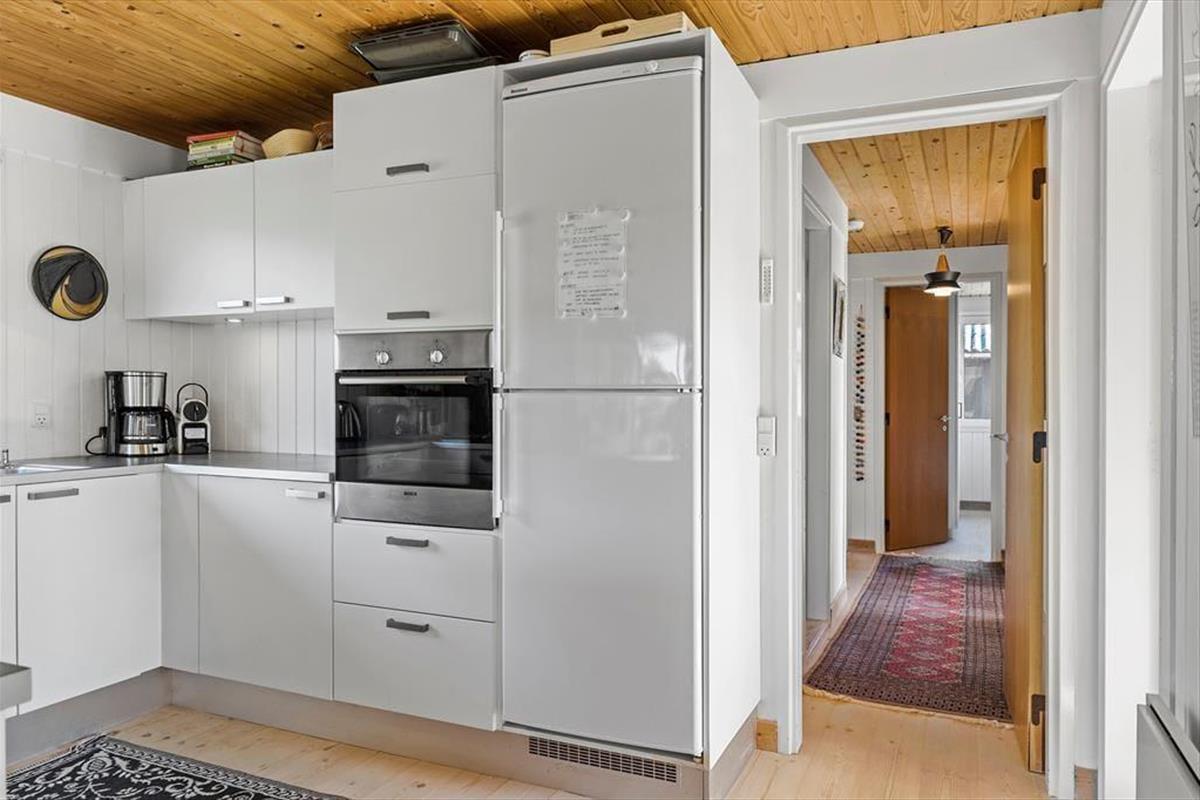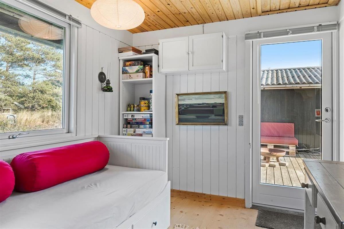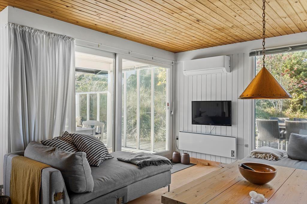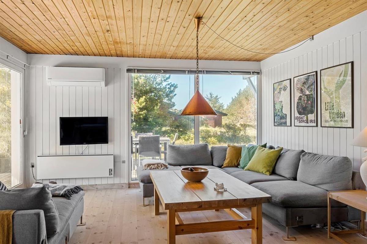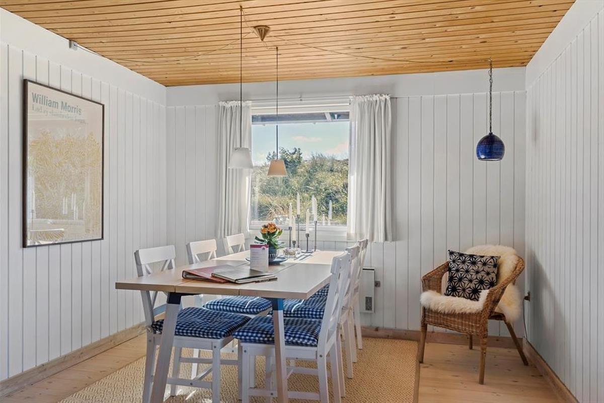 In diesem attraktiven Urlaubsdomizil hat es der Eigentümer geschafft, eine feine Balance zwischen Retro-Stil und Moderne zu finden, so dass die Innenbereiche sowohl gemütlich als auch funktional wirken. Die gewählten Farbtöne sind angenehm hell und die zahlreichen, ganz bezaubernden Einrichtungsdetails vermitteln Ihnen die ganz typisch dänische Ferienhausstimmung, die Sie dazu verleitet, Ihren Gedanken freien Lauf zu lassen und die Urlaubstage gemütlich dahinplätschern und jegliche festen Planungen vergessen zu lassen. Wenn Sie sich gerne im Hausinneren aufhalten, können Sie sich im Kreise Ihrer Liebsten im großen Aufenthaltsraum versammeln, der den Wohnraum und die Küche offen und harmonisch in sich vereint. An kühlen Tagen und Abenden verleiht der romantisch knisternde und behaglich wärmende Kaminofen dem Raum eine traumhaft gemütliche Stimmung. An warmen Sommertagen stellen Sie hingegen einfach die Terrassentüren weit auf, sodass die Terrasse als natürliche Erweiterung der Wohnfläche fungiert. Unabhängig von der Jahreszeit ist es herrlich, sich in den vier Schlafräumen zur Ruhe zu begeben und sich nach einem langen, interessanten und erlebnisreichen Urlaubstag so richtig schön auszuschlafen. Vorher können Sie sich selbstverständlich im hauseigenen Badezimmer noch eine Dusche gönnen und Ihre Zähne putzen.