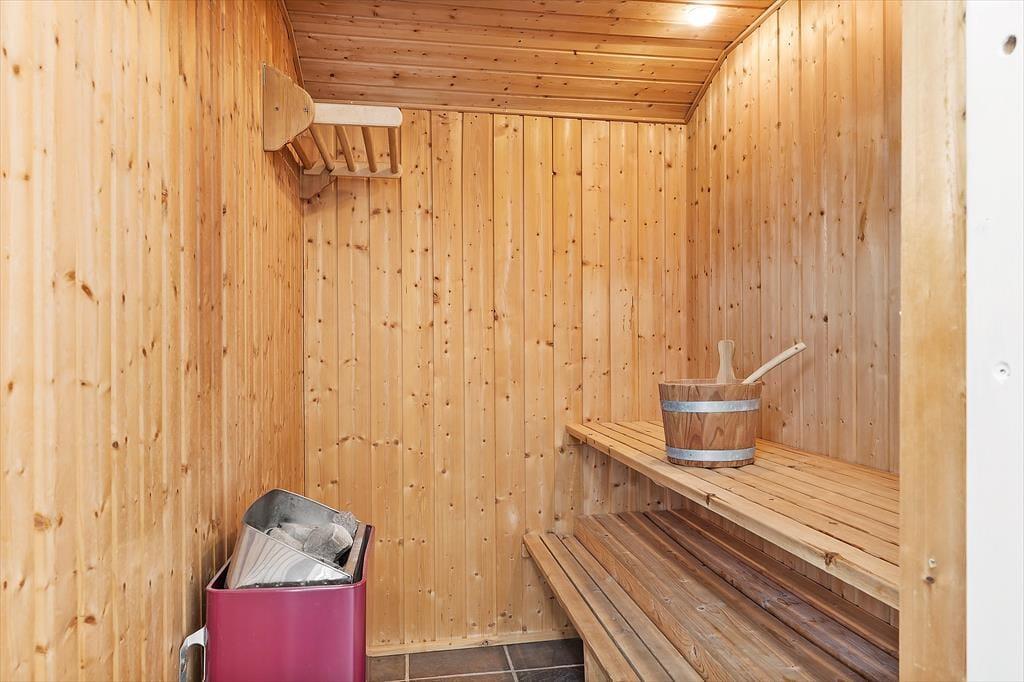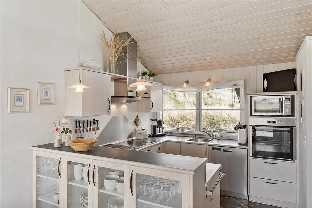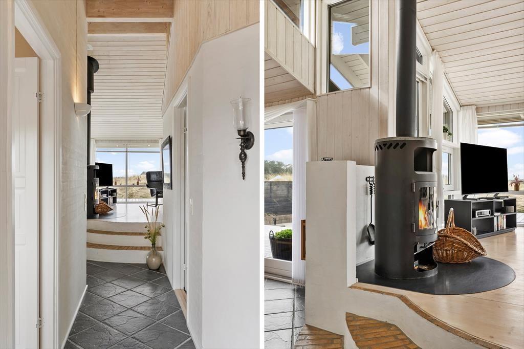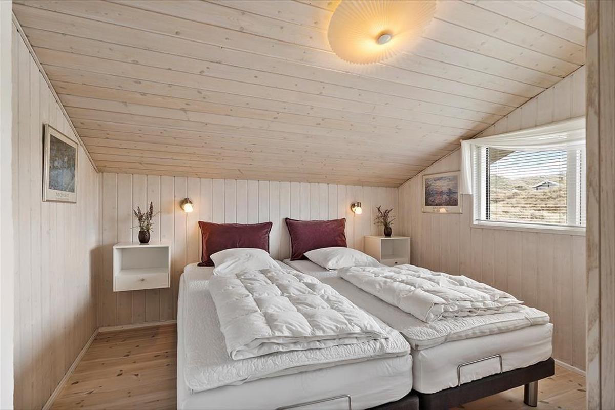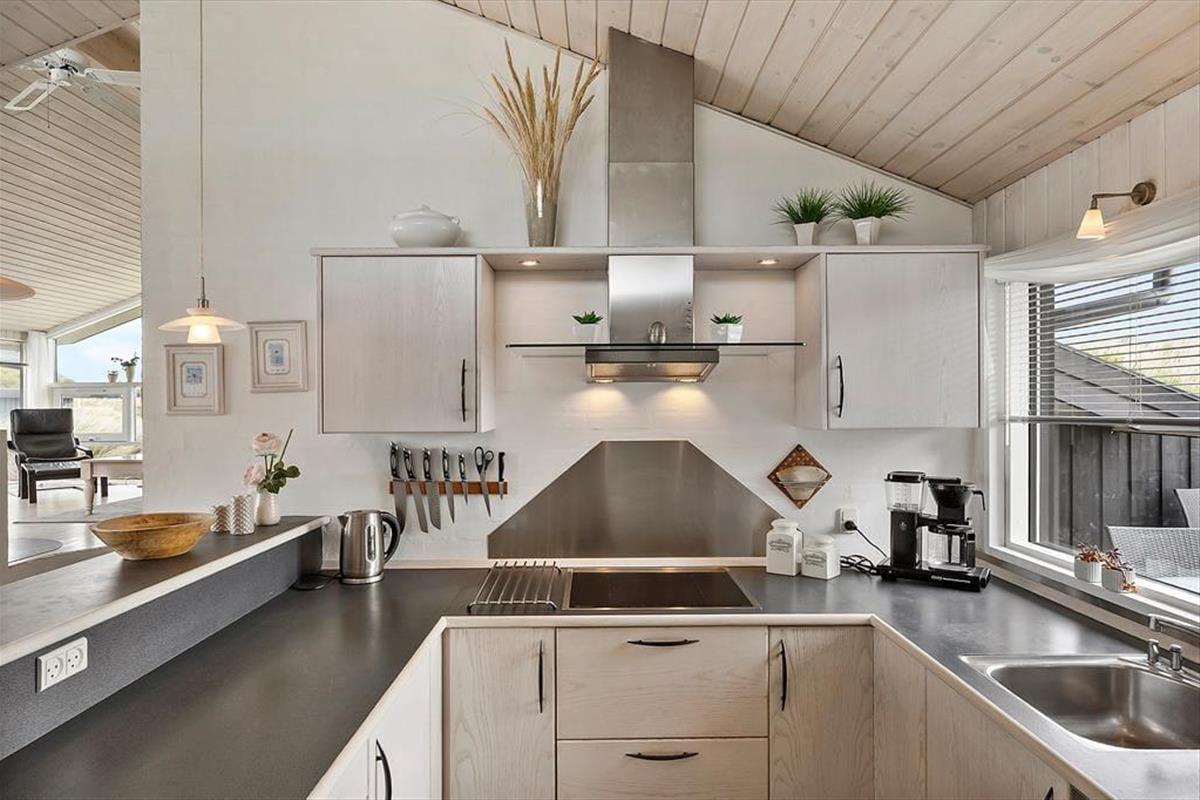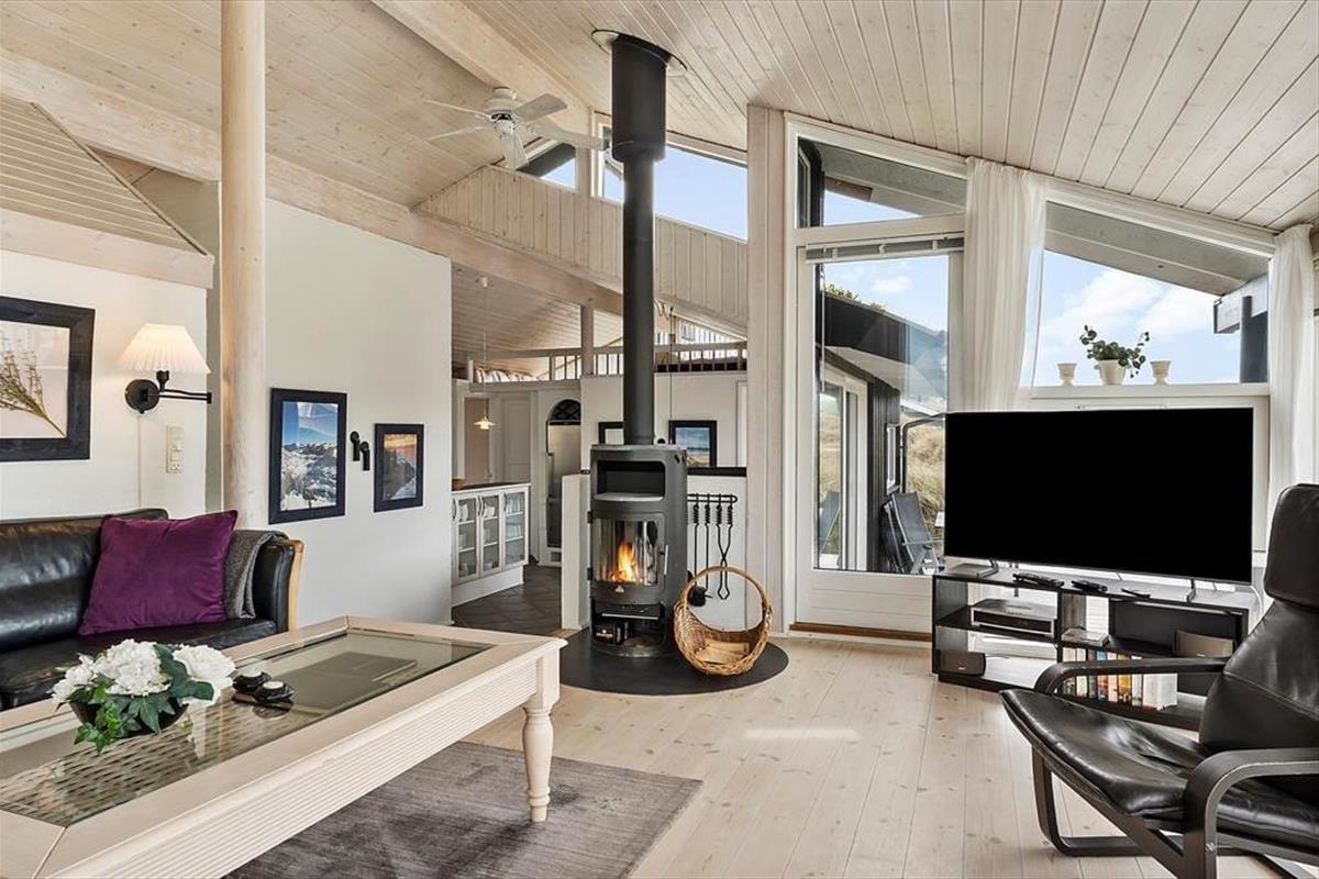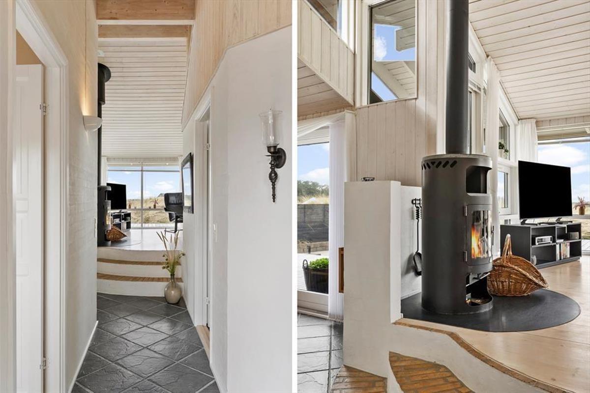 Das Ferienhaus ist eines der gehobeneren. Reichlich Licht, toller Boden, bequeme Möbel und viele, kleine Details. Außerdem gibt es einen Whirlpool, eine Sauna, Waschmaschine, einen Wäschetrockner, Sat-TV mit großem Zusatzpaket und kostenloses WLAN, um immer auf dem Laufenden bleiben zu können. Auch eine Wärmepumpe ist installiert, damit die Verbrauchskosten niedrig gehalten werden können. Mit einem Feuer im Kamin wird es außerdem warm, ohne viel Strom zu verbrauchen. Es gibt drei Schlafräume mit sechs Schlafplätzen, so dass auch eine größere Familie ausreichend Platz findet. Die Küche und der Essbereich sind kombiniert, das Wohnzimmer ist etwas erhöht und bietet eine angenehme Aussicht auf die Dünen. Ein Ferienhaus, auf das alle stolz sein können!