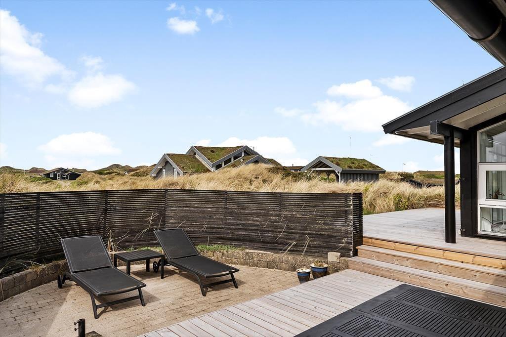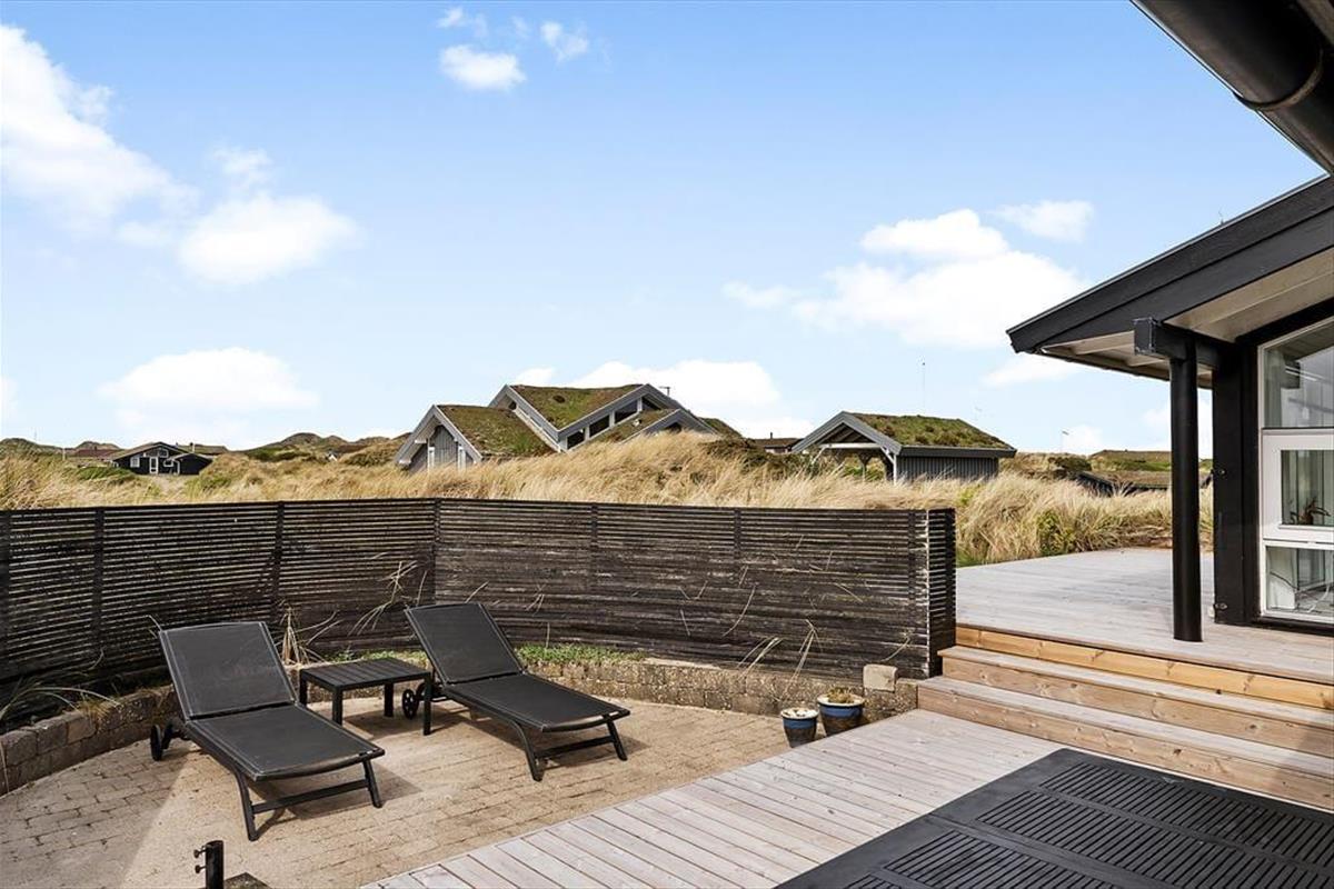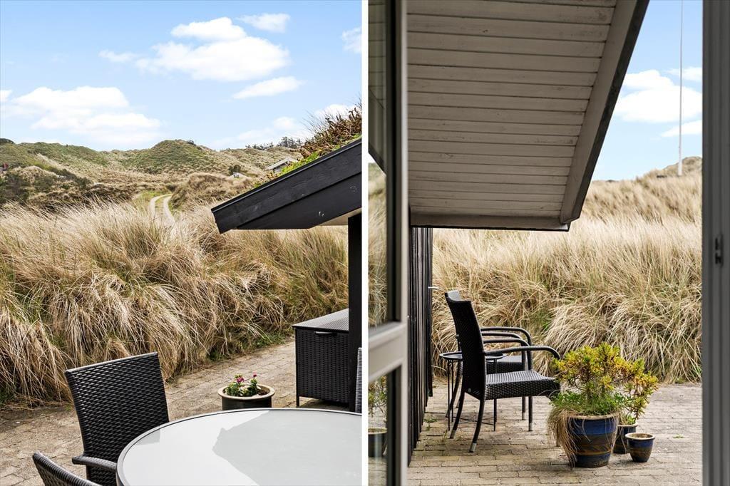 Dieses weite Dünengrundstück mit Gräsern und Sand liegt erhöht, wodurch eine Aussicht über Landschaft und Nordsee von den hohen Dünen gegeben ist. Terrassen befinden sich an beiden Seiten des Ferienhauses, damit Sie tagsüber jede Minute Sonne ungestört und geschützt nutzen können.