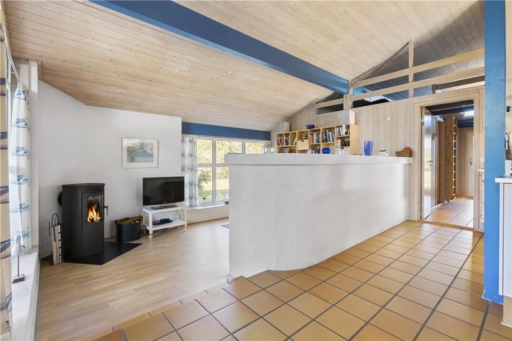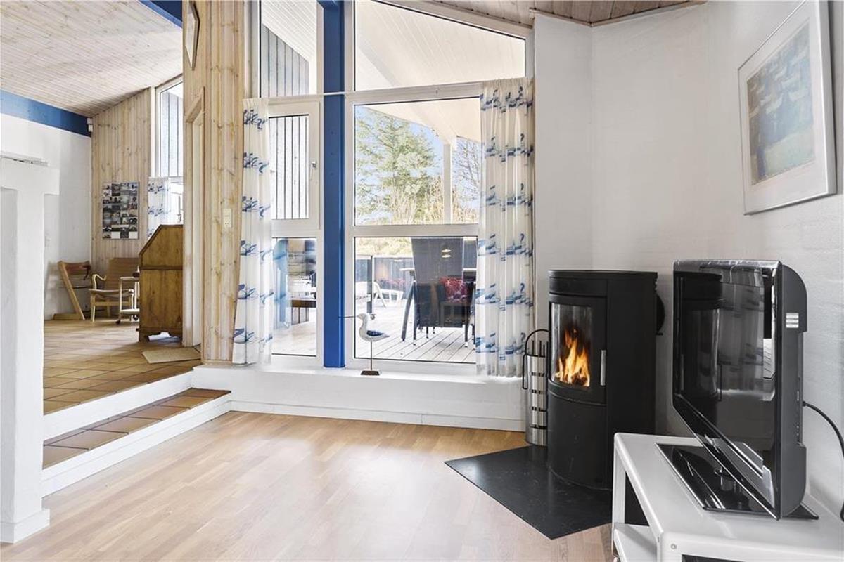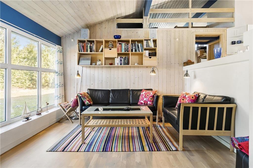 Das Ferienhaus ist sowohl funktionell als auch gemütlich eingerichtet. Es hat 114 m² und ist für acht Personen hervorragend eingerichtet. Das Haus verfügt über vier Schlafzimmer und praktischerweise über zwei Badezimmer. Wenn Sie tagsüber drinnen bleiben, werden Sie die Zeit vermutlich im Wohnraum genießen in dem eine offene Küche und ein tiefer gelegtes Wohnzimmer verbunden sind. Auch im Rest des Hauses ist die Atmosphäre hell und einladend. Es gibt hohe Decken, einen Kamin und einen Schlafboden im typischen Ferienhausstil.