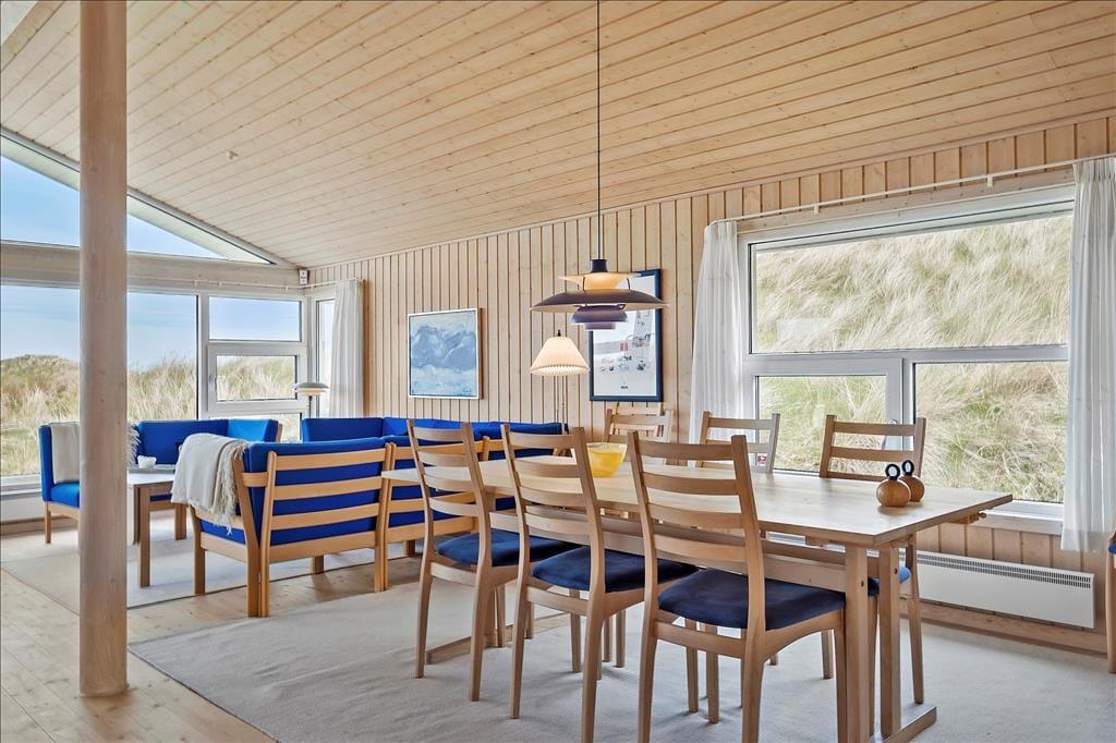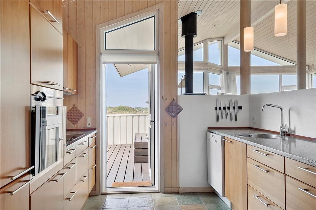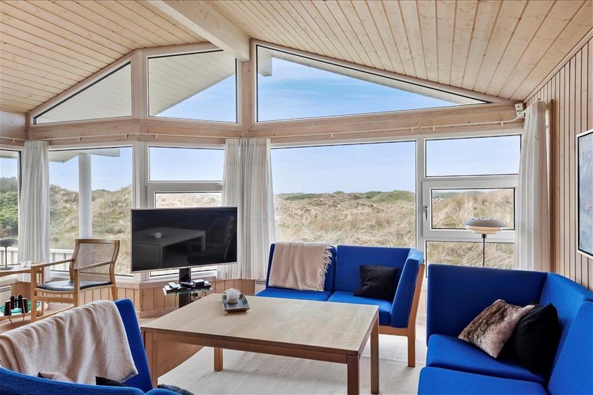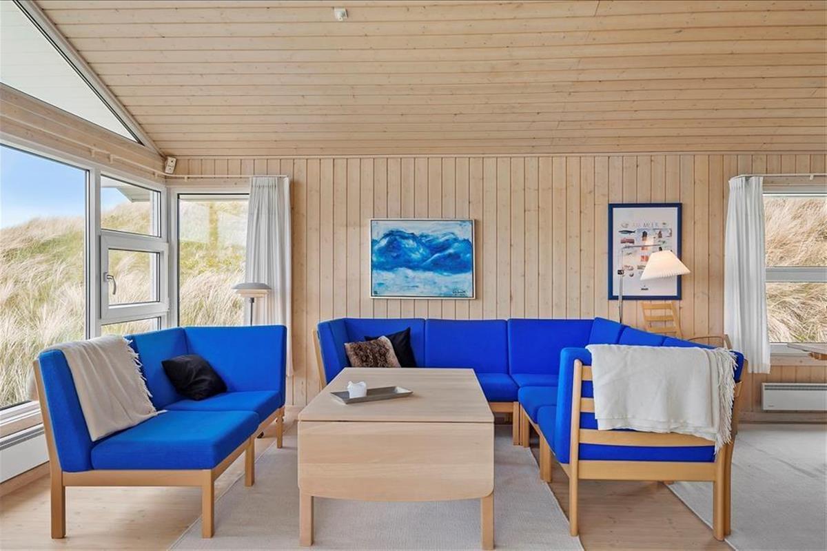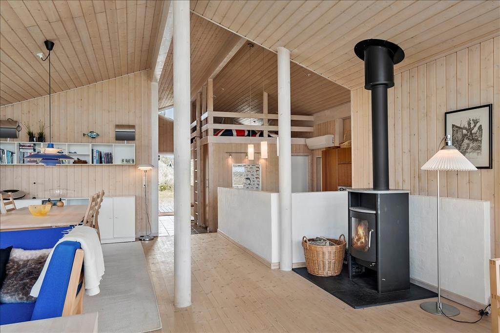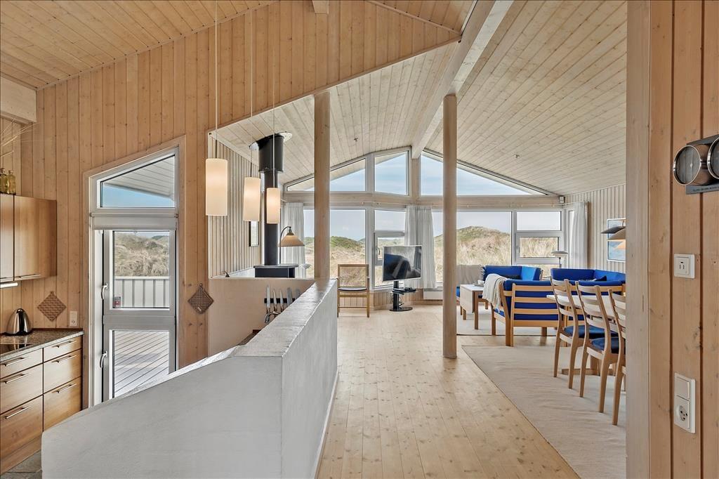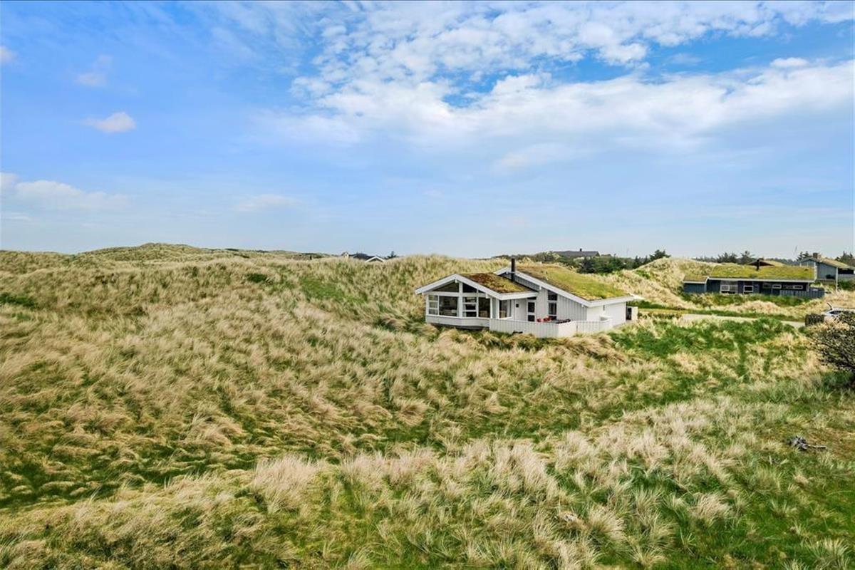 Sie bekommen einen schönen und geräumigen Rahmen für das Faulenzerleben, denn das Ferienhaus ist ein heller und einladender Qualitätsbau von ganzen 105 m2. Besonders die Architektur des Aufenthaltsraumes imponiert durch Niveauunterschied zwischen der Küche und dem Wohnraum, offene Verbindung zu einem Schlafboden und offenes Dachgeschoss – und so können Sie obendrein den herrlichen Lichteinfall genießen und die fantastische Dünenlandschaft durch die großen Fenster des Raumes bewundern. In dem Wohnzimmer finden Sie übrigens Kaminofen, Wärmepumpe mit Kühlung, Flachbildschirm mit DVD und Apple TV und vielen anderen herrlichen Details, so dass Sie hier einen schönen Aufenthalt haben können. Alternativ können Sie in dem größten der zwei Badezimmer des Ferienhauses entspannen, welches mit Whirlpool und Sauna ausgestattet ist, und wenn sich der Ferientag seinem Ende nähert, können Sie sich in den vier guten Schlafzimmern, welche Platz für insgesamt 8 Personen bieten, zur Ruhe begeben.