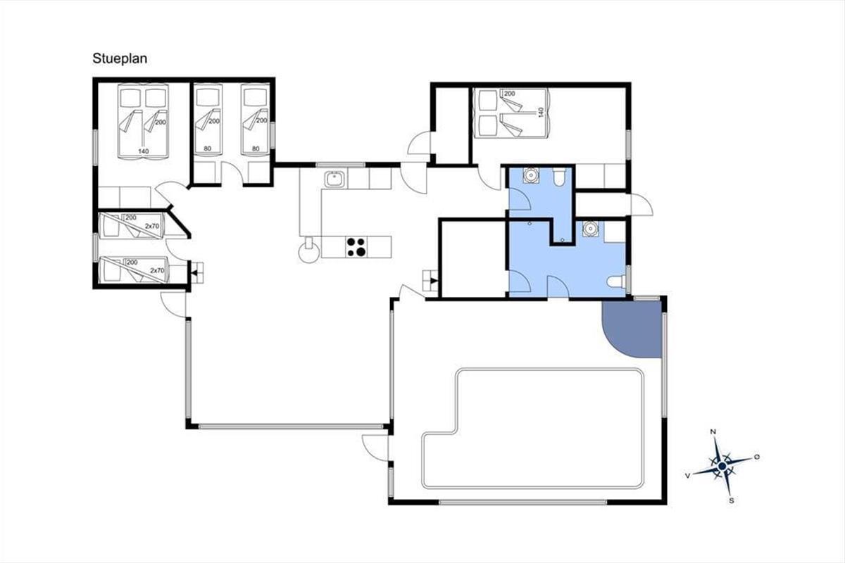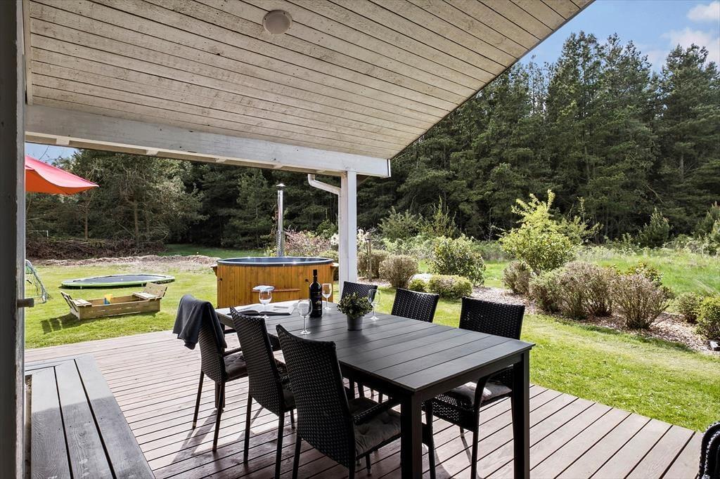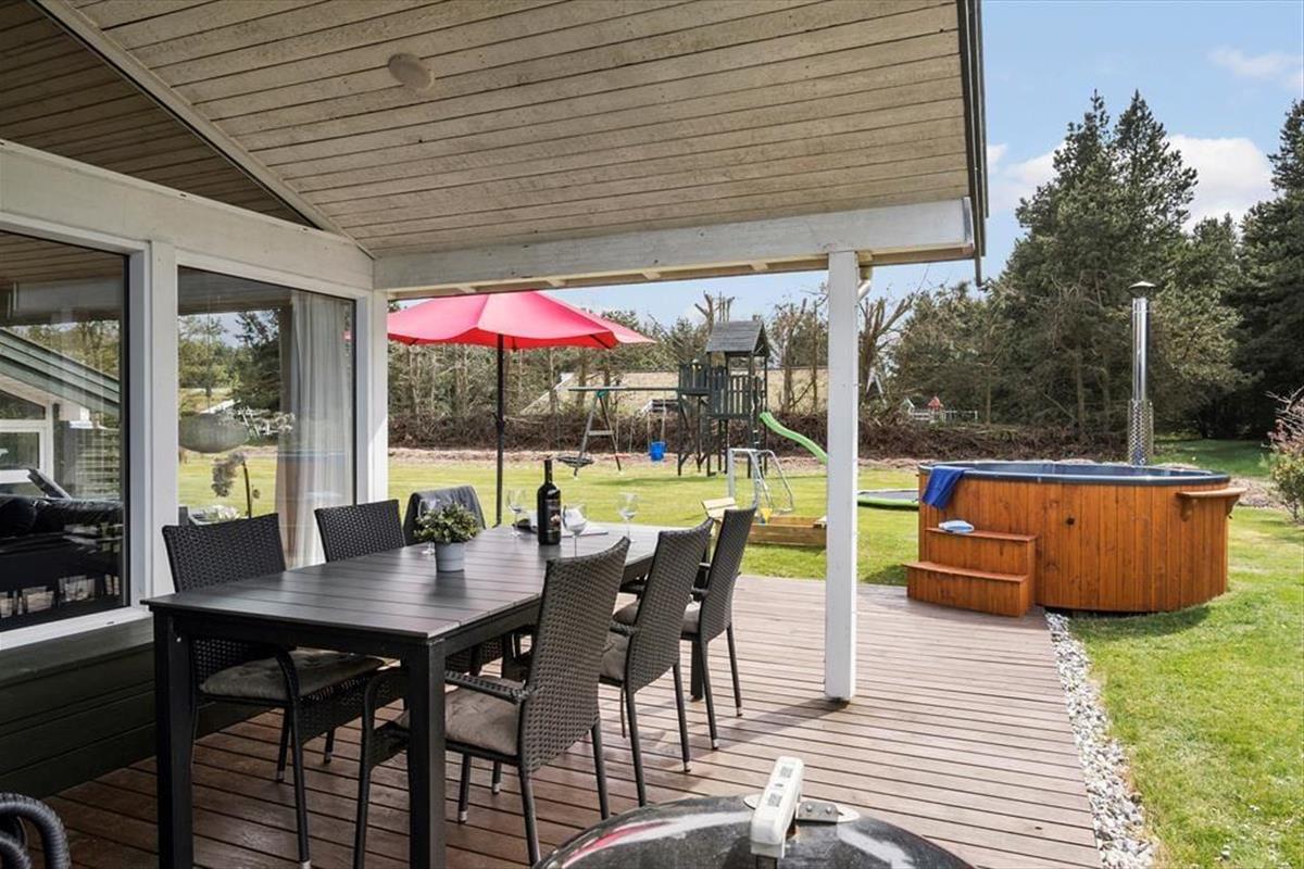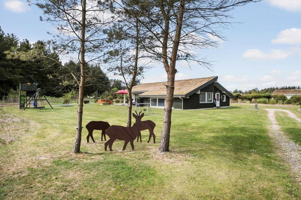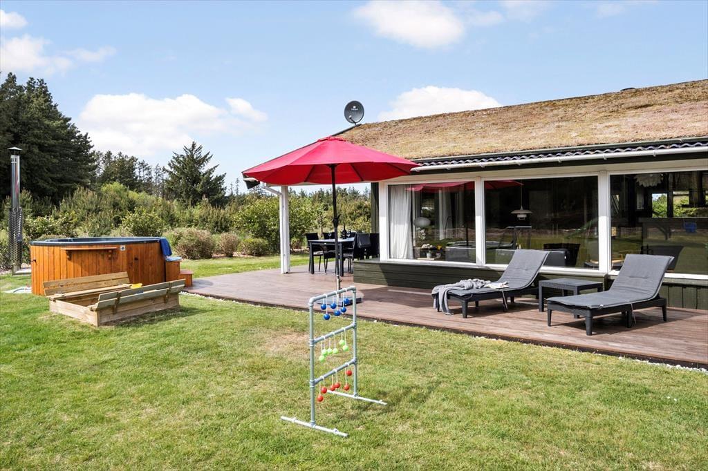 In Saltum, einem schönen Urlaubsgebiet, geht es friedvoll und ruhig zu. Sie wohnen inmitten attraktiver Natur, in kurzer Entfernung zur Nordsee, zu Einkaufsmöglichkeiten im Ort Saltum und zum beliebten, kinderfreundlichen Vergnügungspark Fårup Sommerland. Von dem kleinen Seitenweg aus, an dessen Ende Sie wohnen, gelangen Sie über Pfade und kleine Wege durch die attraktive Küstenlandschaft bis hinunter an den prachtvollen Strand. Saltum Strand ist ein schöner Badestrand mit weißem Sand, soweit das Auge reicht. Ein weiterer, wunderschöner Ausblick über die Umgebung eröffnet sich Ihnen vom höchsten Hügel der Gegend, der Guldagerhøj. Von hier aus genießen Sie den Ausblick über das unter Naturschutz stehende Naturgebiet Lille Norge.