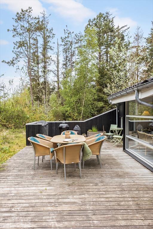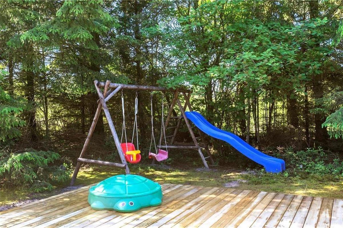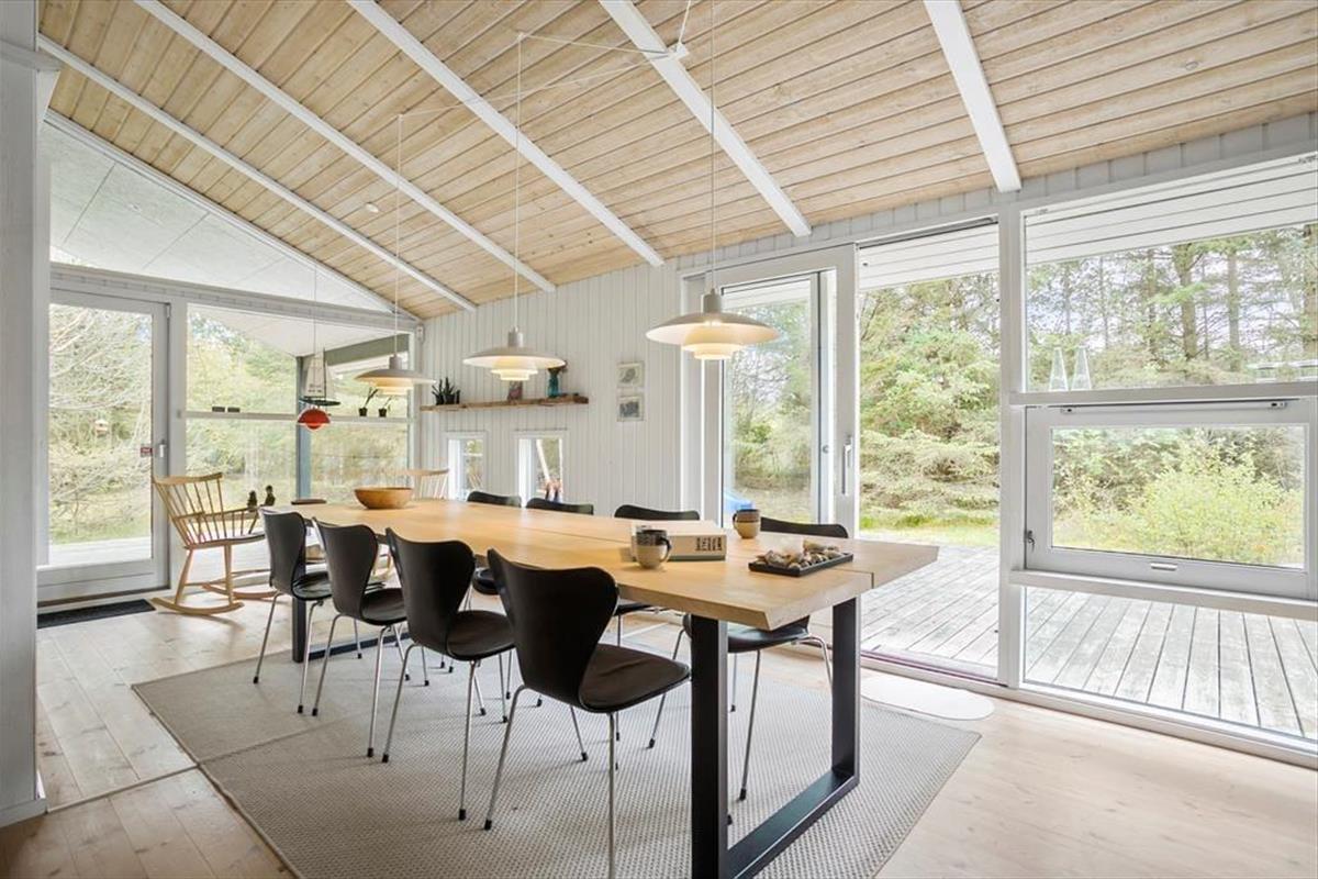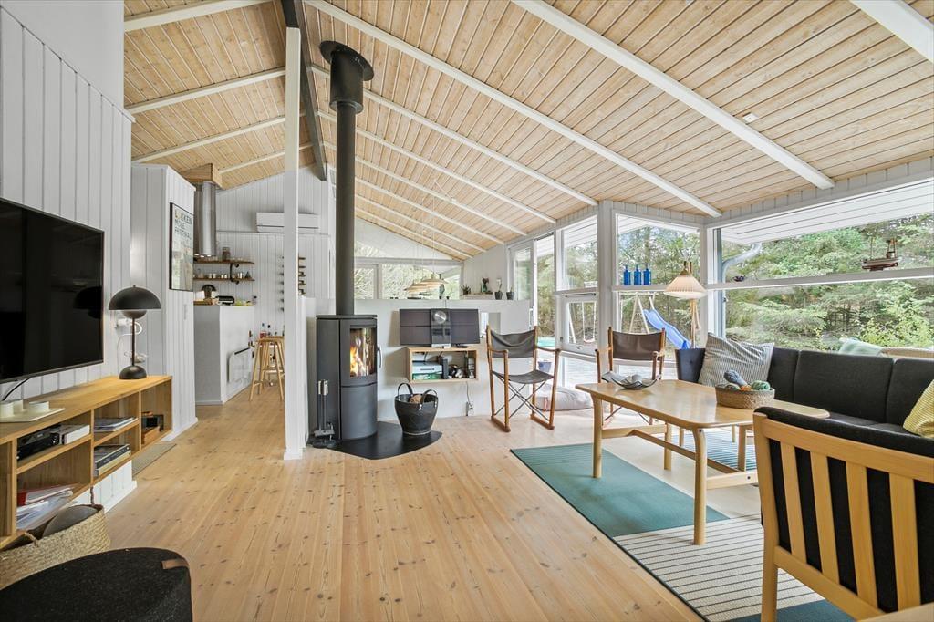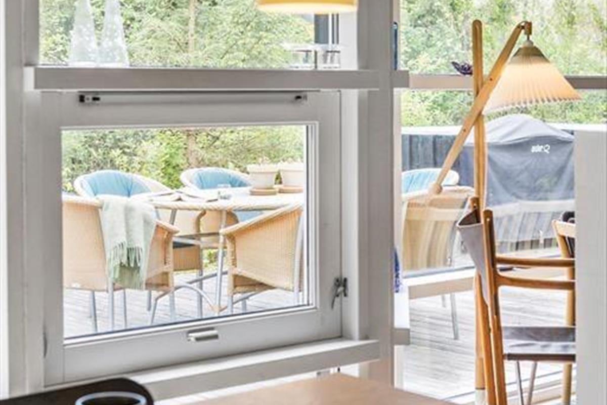 Das große Naturgrundstück befindet sich ungestört und teilweise von Bäumen umzäunt, damit Sie sich in aller Ruhe im Freien aufhalten können. Die tolle Holzterrasse verläuft auf drei Seiten und hat einen kleinen, überdachten Teil, damit Sie den dänischen Sommer bestens auskosten können.