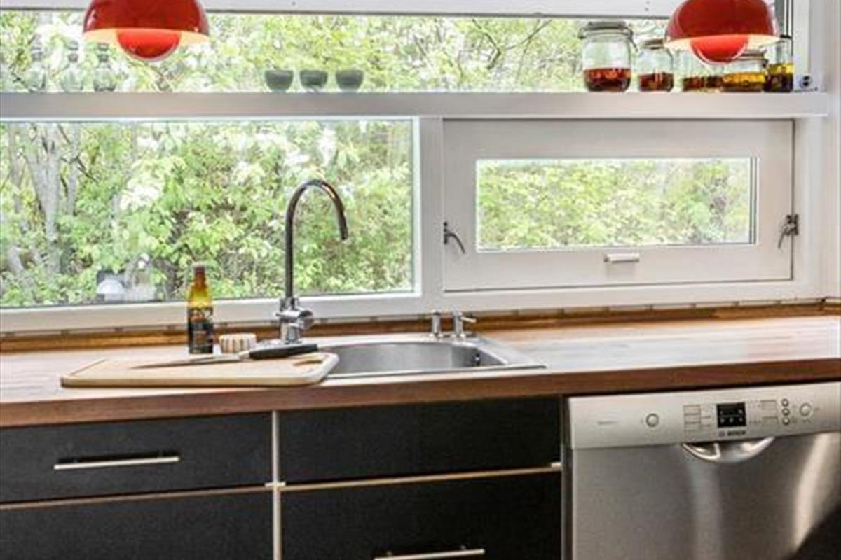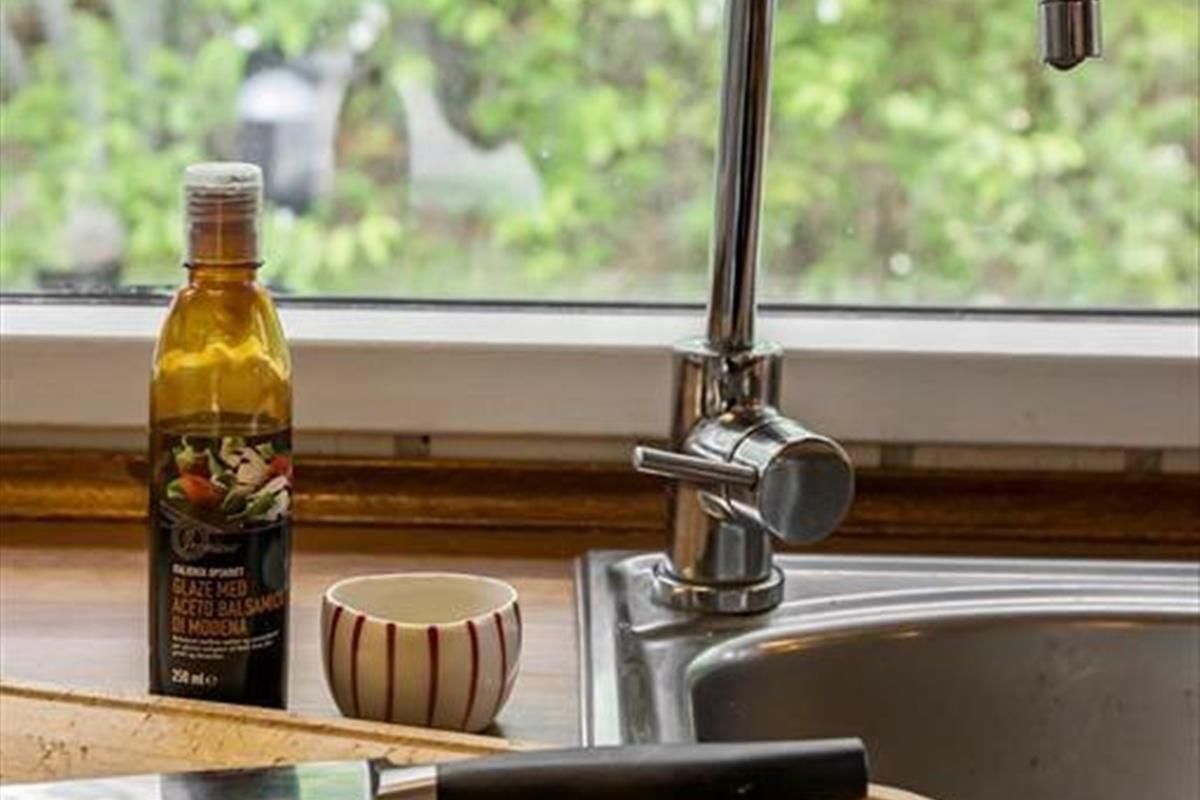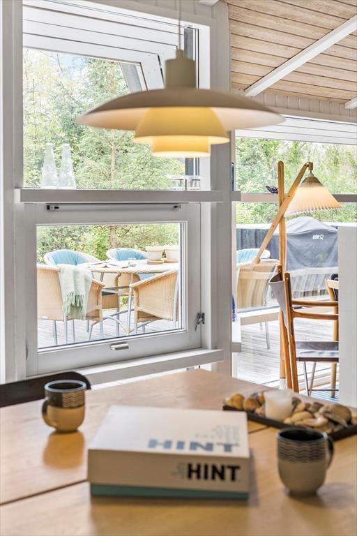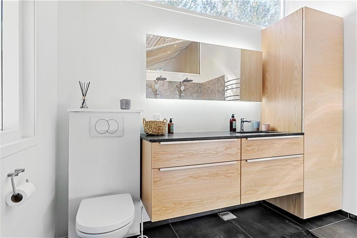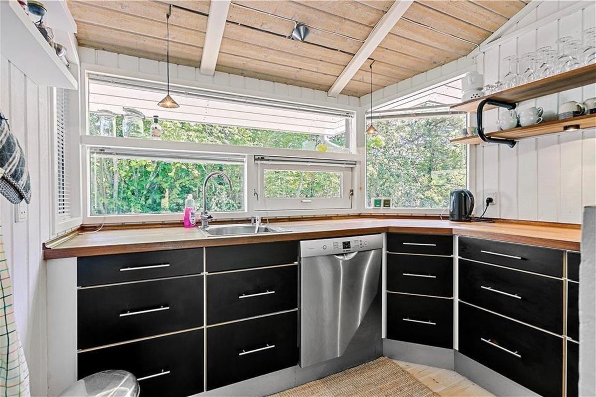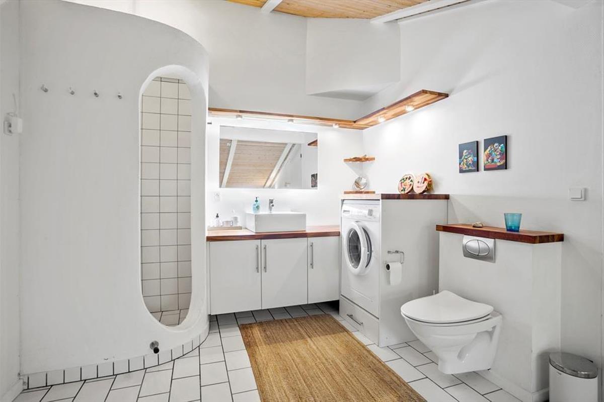 Das große Naturgrundstück befindet sich ungestört und teilweise von Bäumen umzäunt, damit Sie sich in aller Ruhe im Freien aufhalten können. Die tolle Holzterrasse verläuft auf drei Seiten und hat einen kleinen, überdachten Teil, damit Sie den dänischen Sommer bestens auskosten können.