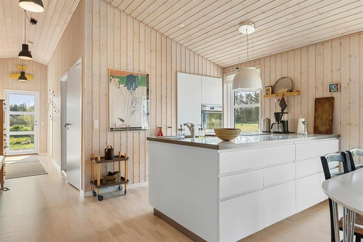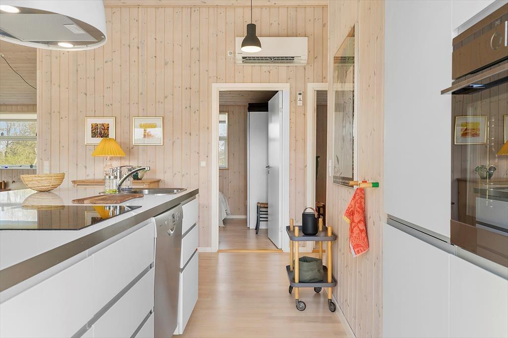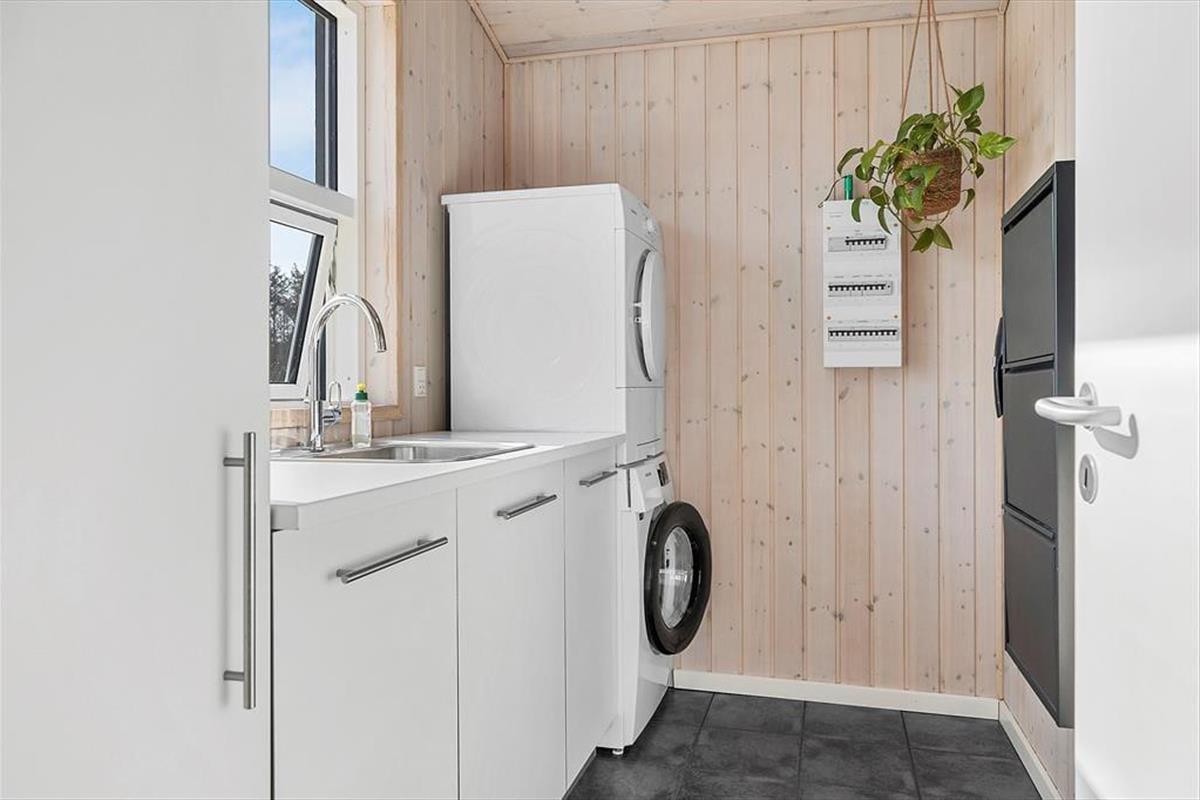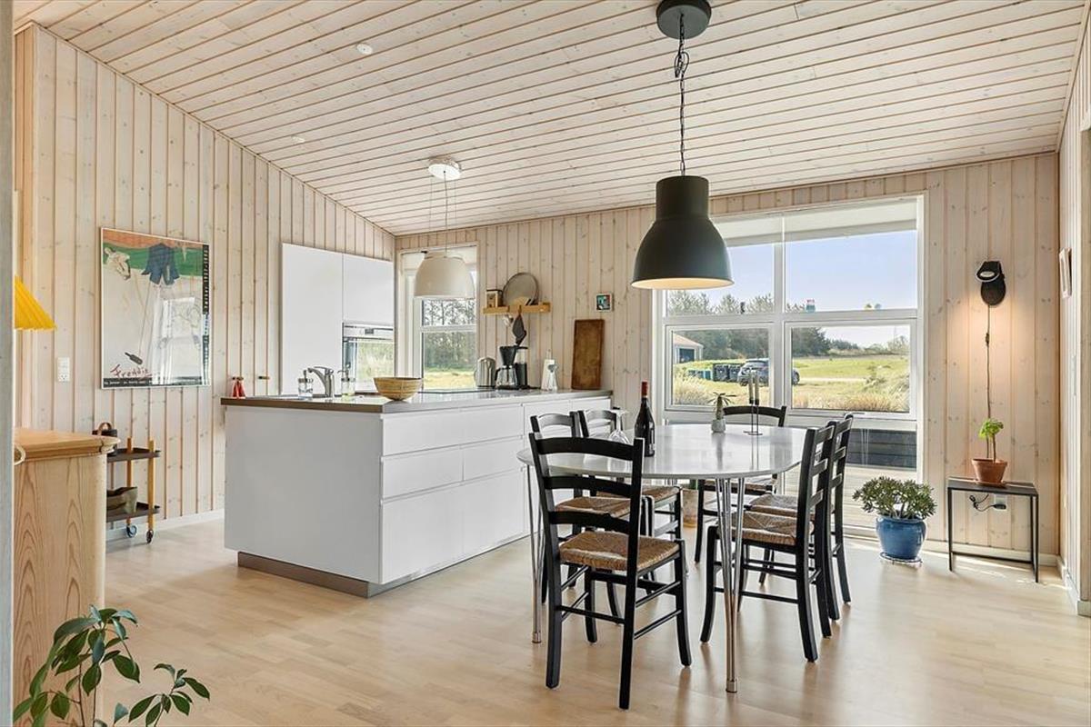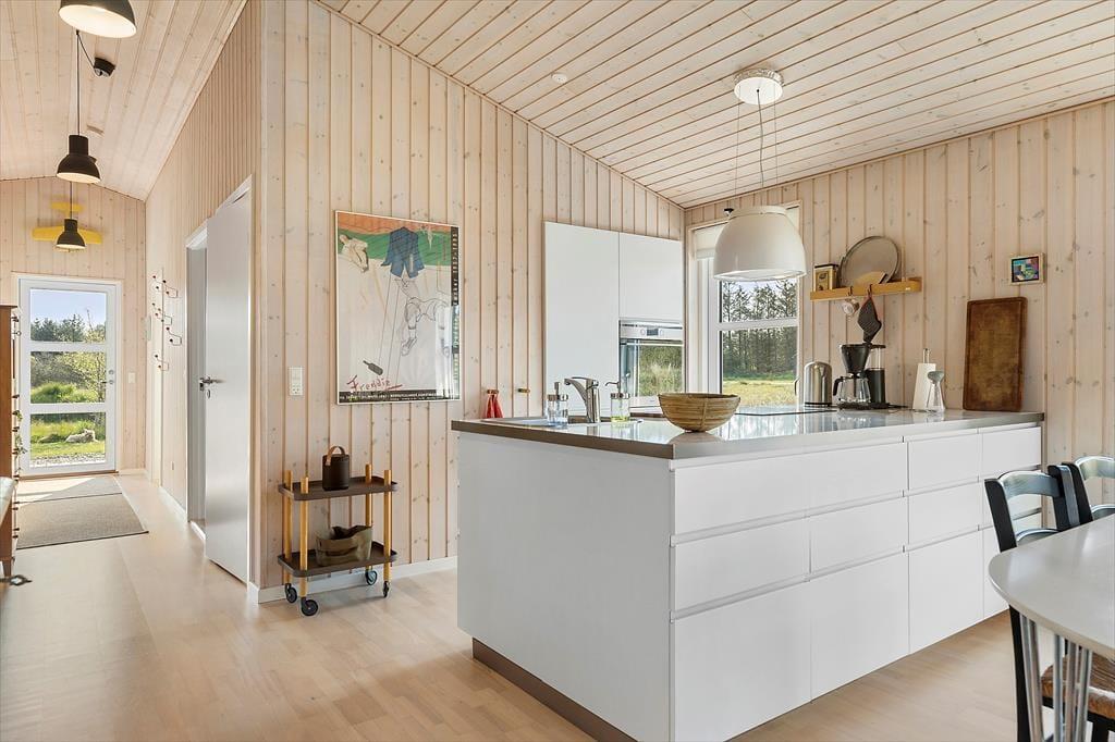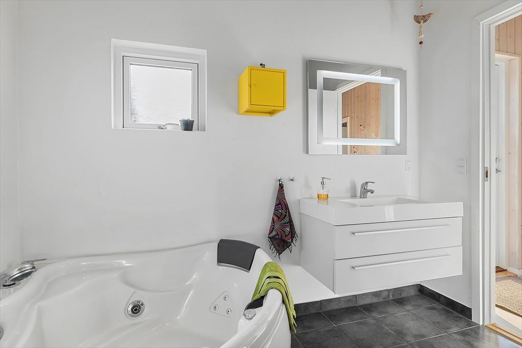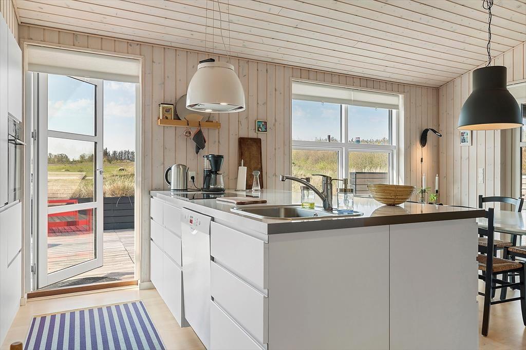Im Inneren erwartet dich ein offener und einladender Wohnbereich mit schönem Lichteinfall durch große Fenster. Die Küche ist schön und modern, und das offene Wohn-Esszimmer ist perfekt, um mit der Familie zusammenzukommen. Der Kaminofen sorgt für eine gemütliche Atmosphäre, und hier kannst du dich wirklich entspannen und die Wärme des Feuers genießen. Das Ferienhaus bietet auch ein schönes Badezimmer mit Whirlpool, in dem du dich nach einem aktiven Tag mit einem entspannenden Bad verwöhnen kannst. Das Haus ist geräumig und du wirst dich schnell wie zu Hause fühlen, egal ob du deinen Urlaub im Haus oder draußen in der Natur verbringst.