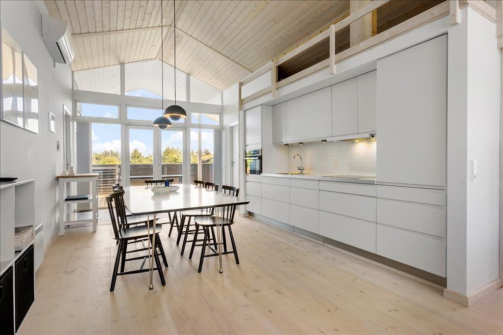 Dieses charmante Ferienhaus ist die perfekte Wahl für kleine und große Familien, die einen Urlaub in ruhiger, naturschöner Umgebung suchen. Das Haus hat eine helle und offene Einrichtung, hohe Decken und einen schönen Kamin, der für die richtige Gemütlichkeit sorgt. In diesem Haus wirst du dich schnell zu Hause fühlen und sowohl Komfort als auch die wunderschöne Umgebung genießen können. Vom Ferienhaus aus bist du nur wenige Minuten mit dem Auto von Blokhus und dem herrlichen Strand des Vesterhavet entfernt, was es zu einer idealen Wahl für Entspannung und Erlebnisse macht.