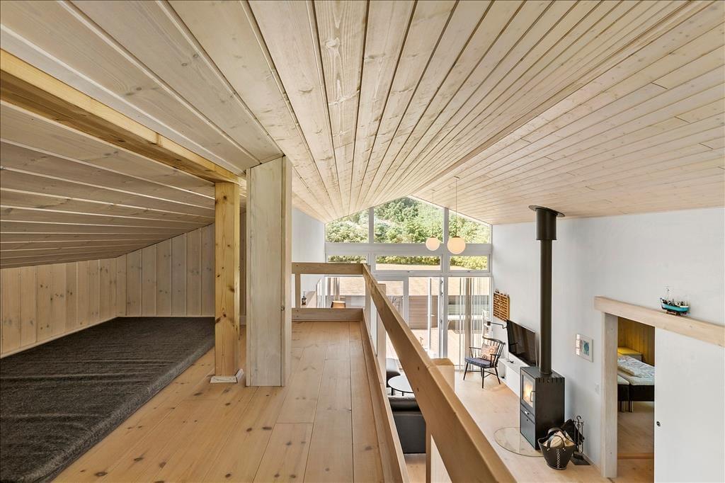 Im Inneren wirst du von einem offenen Wohn- und Essbereich begrüßt, in dem du viele gemütliche Stunden mit deinen Liebsten verbringen kannst. Mit einem geräumigen und einladenden Wohnzimmer sowie hohen Decken hast du das Gefühl von Licht und Luft, und die Sonne kann durch die großen Fenster hereinströmen. Es ist der perfekte Ort, um gemeinsam zu essen, Brettspiele zu spielen oder einfach vor dem Kamin zu entspannen, der an kühlen Tagen für eine zusätzliche Gemütlichkeit sorgt. Ein schönes Badezimmer mit sowohl Whirlpool als auch Sauna lädt zu Wellness und Entspannung ein, und für die jüngeren Familienmitglieder ist der Schlafboden der ideale Spielplatz.