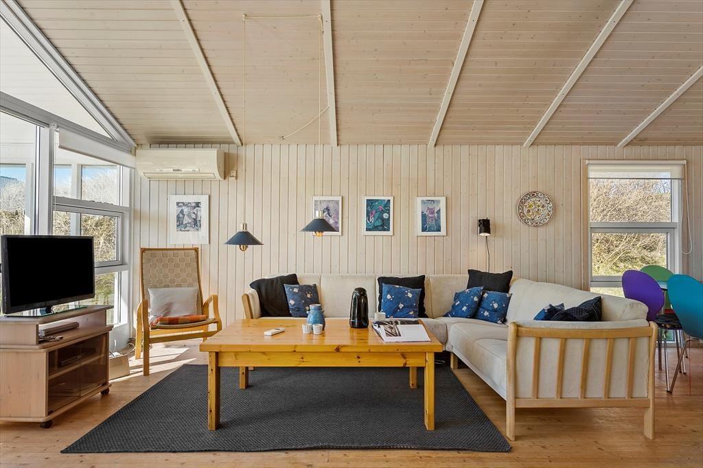 Dieses charmante Ferienhaus an der Haresvinget 7 bietet die perfekte Kulisse für einen erholsamen Urlaub, in dem du und deine Familie sowohl die Natur als auch die gemeinsame Zeit genießen könnt. Das Haus liegt auf einem schönen Naturgrundstück und bietet eine gemütliche Atmosphäre mit viel Platz für Familienzeit. Das einladende Wohnzimmer mit Kamin sorgt für Wärme und Stimmung, und die große Terrasse mit Außendusche bietet die Möglichkeit, die langen Sommerabende zu genießen. Während deines Aufenthalts wirst du das perfekte Gleichgewicht zwischen Komfort im Haus und Freiheit im Freien erleben, und die Ruhe der Natur wird deinen Geist und Körper erfüllen.