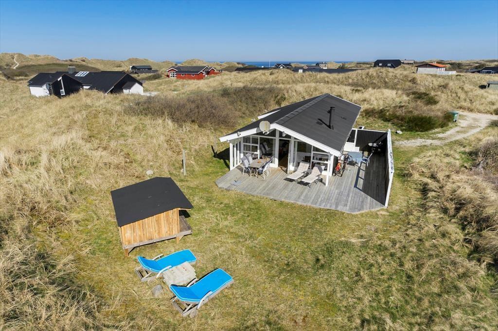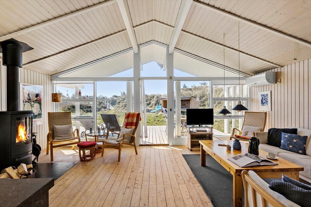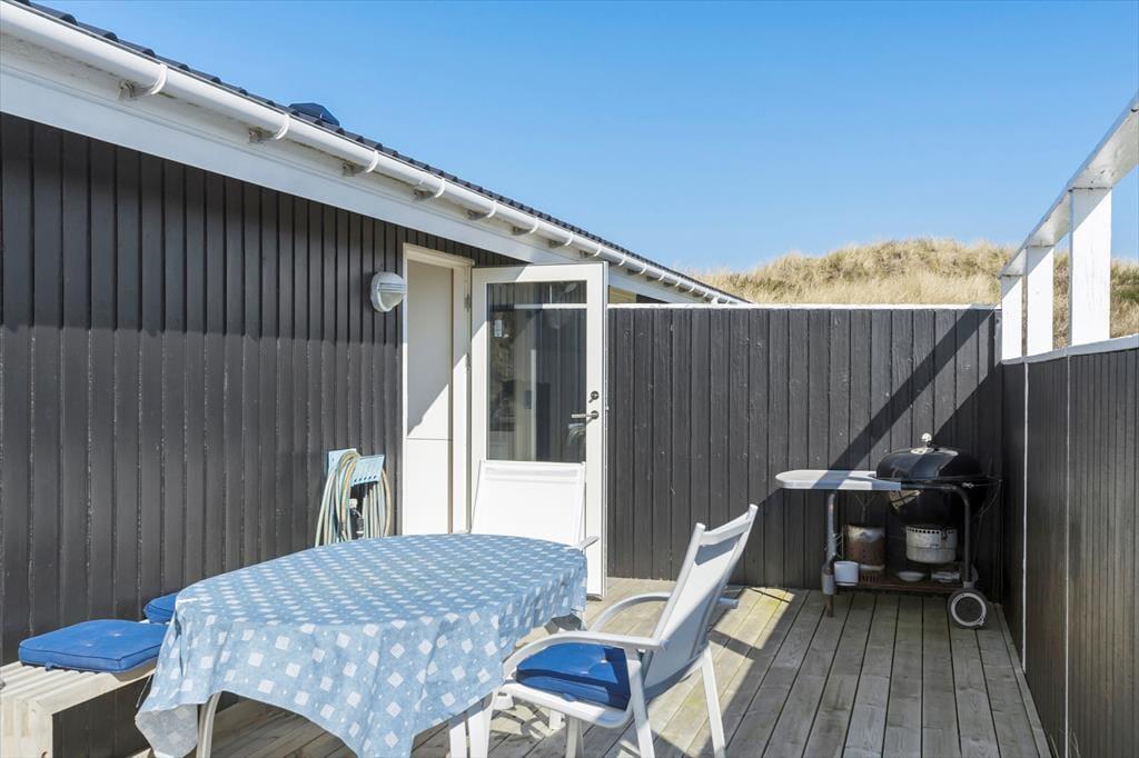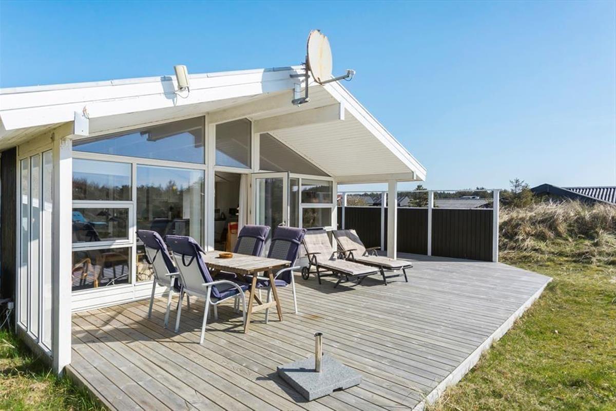 Wenn das Wetter schön ist, ist die große Terrasse der perfekte Ort zum Entspannen, mit viel Platz für sowohl Erholung als auch Spiel. Die Terrasse lädt zum Sonnenbaden in der Sommerwärme ein, und mit einer Außendusche kannst du schnell den Sand nach einem Strandbesuch abspülen. Das wunderschöne Naturgrundstück rund um das Ferienhaus schafft die perfekte Kulisse für Aktivitäten im Freien. Wenn du Glück hast, kannst du die gemütliche Atmosphäre um ein Lagerfeuer im angrenzenden Shelterbereich genießen, wo du einen unvergesslichen Abend unter den Sternen verbringen kannst.
