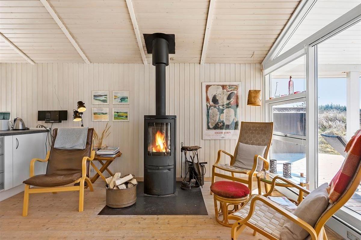 Wenn du das Ferienhaus betrittst, wirst du von einer gemütlichen und entspannten Atmosphäre begrüßt, die dich sofort wie zu Hause fühlen lässt. Das Wohnzimmer mit Kamin lädt dazu ein, lange Abende in guter Gesellschaft zu verbringen – hier kannst du ein gutes Buch lesen, mit der Familie spielen oder einfach die Wärme der Flammen genießen. Die Einrichtung des Hauses ist schlicht und stilvoll, und es gibt viel Platz für gemeinsame Aktivitäten, die den Urlaub besonders machen. In der Küche kannst du mit Freude köstliche Mahlzeiten zubereiten, die du dann im einladenden Essbereich gemeinsam genießen kannst. Für zusätzlichen Komfort bietet das Haus auch ein schönes Schlafzimmer, in dem du erholsam schlafen und dich für einen neuen Tag in der Natur erholen kannst.