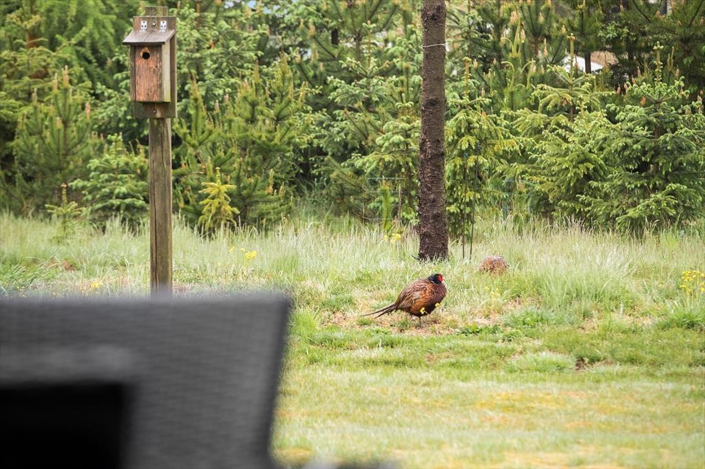 Das Wohnzimmer bietet einen Zugang auf die Terrasse, hinaus zum Garten. Die Terrasse umringt das gesamte Haus. Nach Südwest ist ein kleiner Teil überdacht, während der Rest der Terrasse offen ist, sodass Sie die Sonne morgens, mittags und abends genießen können. Ansonsten steht Ihnen eine Hängematte zur Verfügung, in der Sie entspannen können, während die Kinder schaukeln und im Sandkasten spielen, falls nicht alle an einem gemeinschaftlichen Gartenspiel auf der Rasenfläche teilnehmen möchten. Freier Zugang zum Tennisplatz. Das Haus hat auch eine eingebaute Ladestation am Haus.