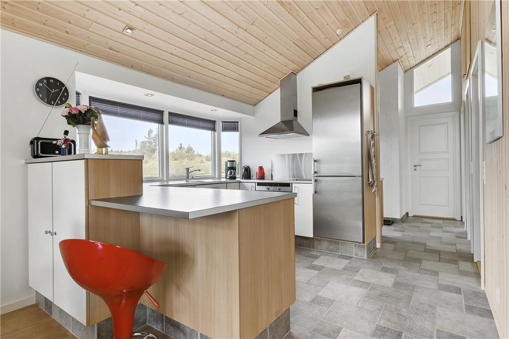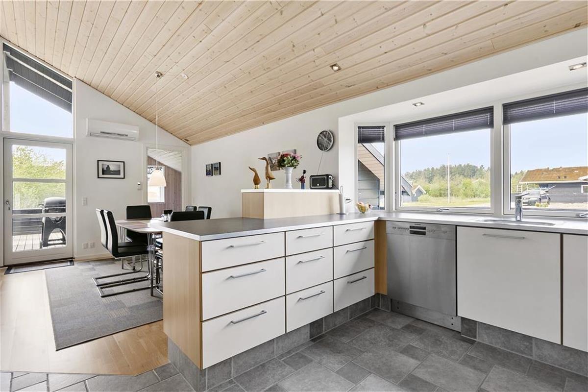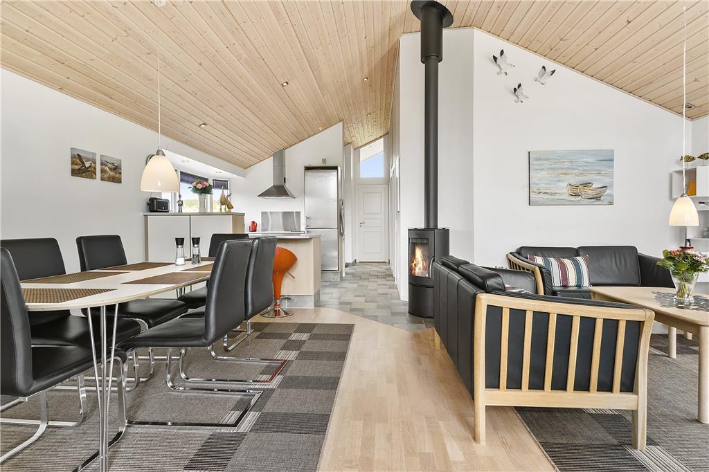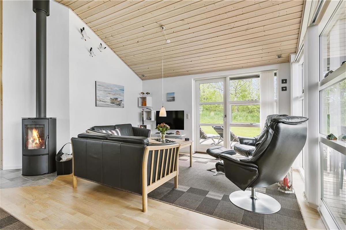Wenn du das Ferienhaus betrittst, wirst du von einer warmen und einladenden Atmosphäre empfangen, die es dir leicht macht, dich wie zu Hause zu fühlen. Das gemütliche Wohnzimmer mit Kaminofen lädt zu langen, entspannten Abenden mit einem guten Buch oder einem Film vor den Flammen ein. Das Wohnzimmer ist sowohl geräumig als auch komfortabel, und hier kann die ganze Familie zu gemütlichen Stunden zusammenkommen. Die Küche ist funktional und bietet Platz für alles, von kleinen Snacks bis hin zu festlichen Mahlzeiten. Es gibt viel Platz, damit alle zusammen sein können, ohne sich eingeengt zu fühlen, und die warme Atmosphäre im Haus bietet den perfekten Ausgangspunkt für einen schönen Urlaub.